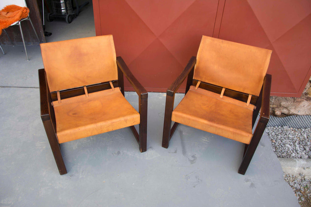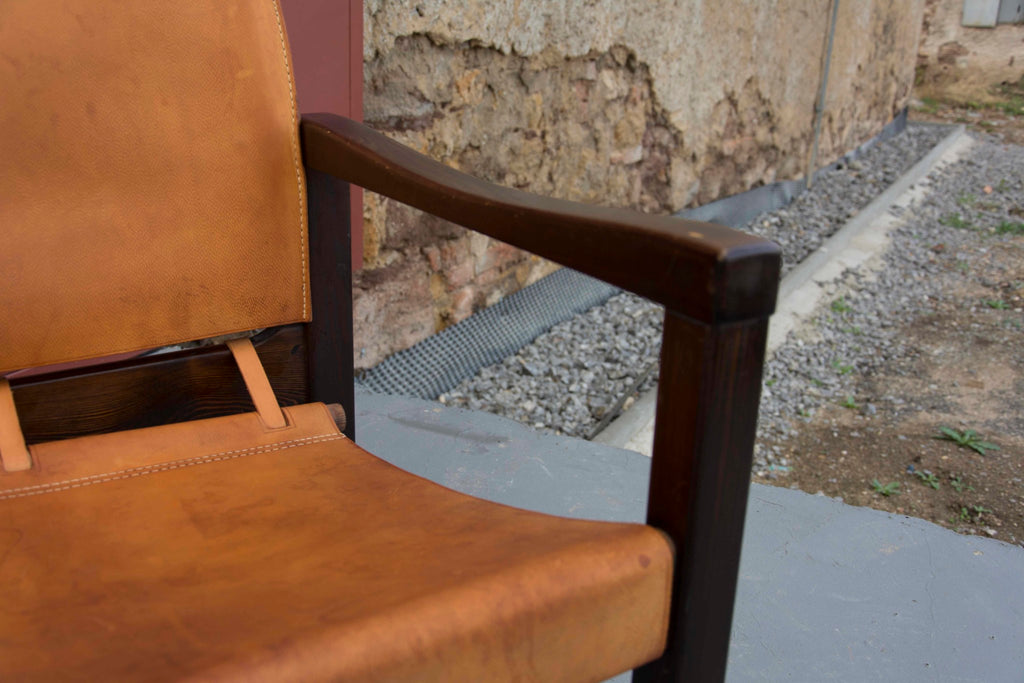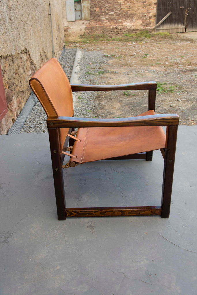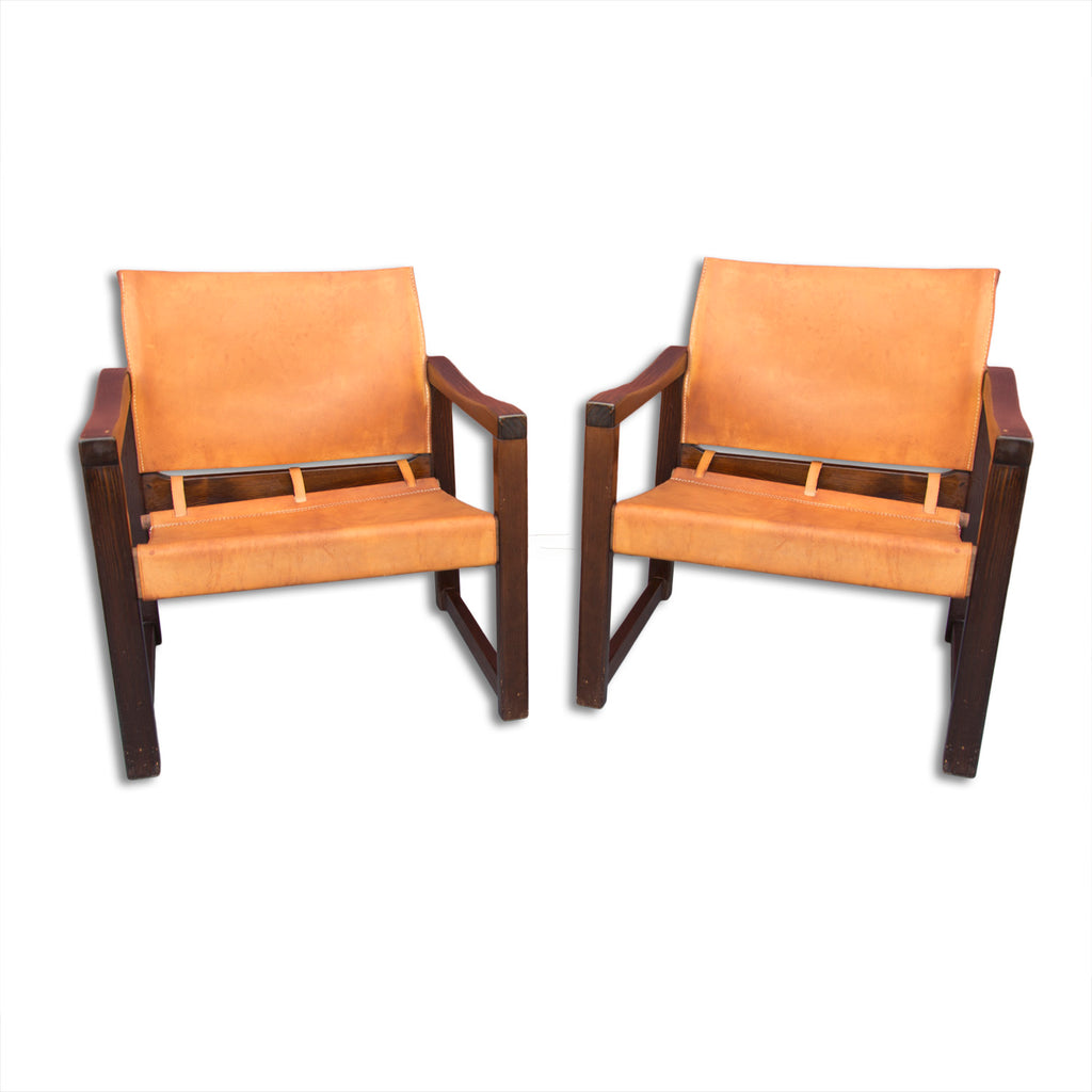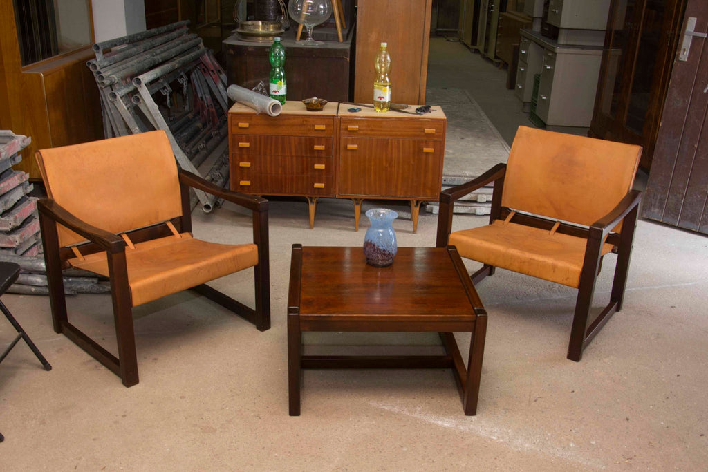 Cognac Leather Safari Chairs & Table by Karin Mobring, 1970s