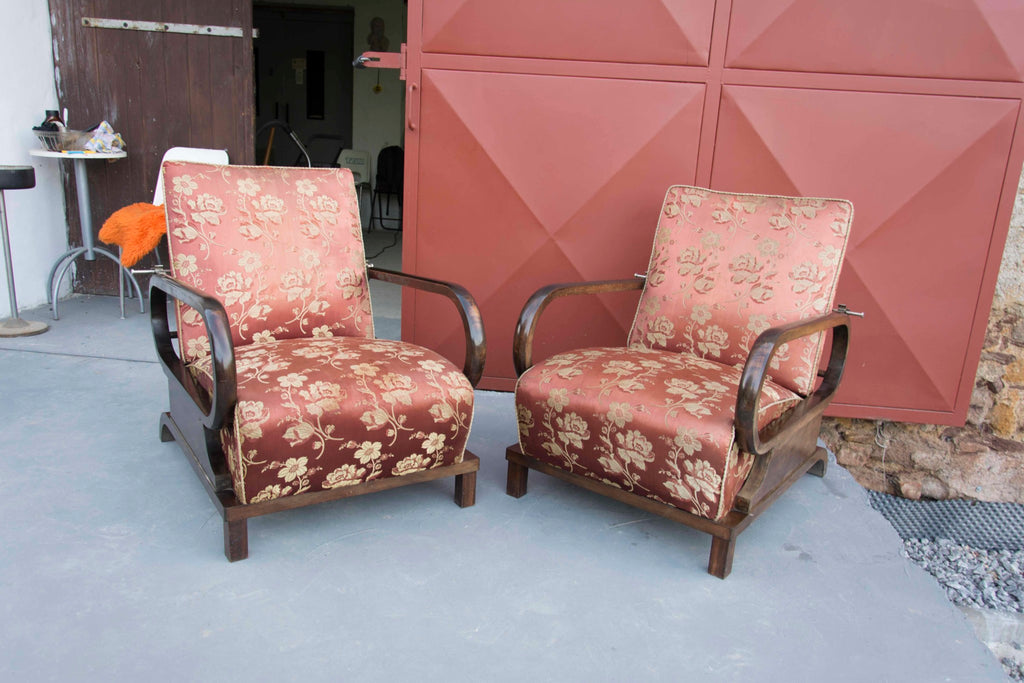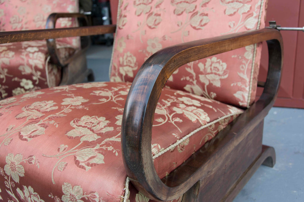 Pair of Adjustable Beech and Walnut Armchairs ART DECO, 1930s