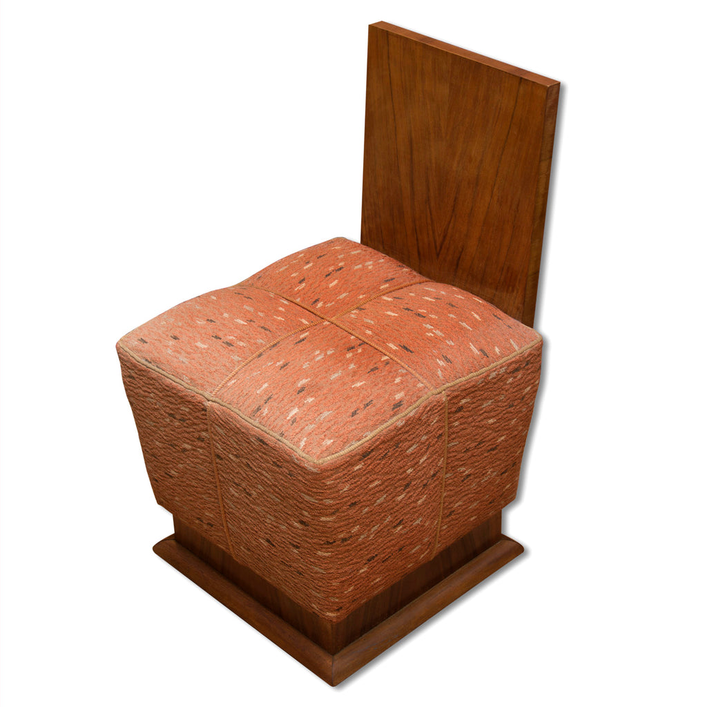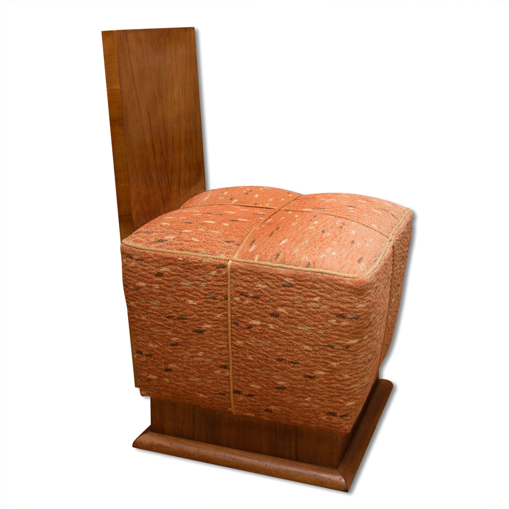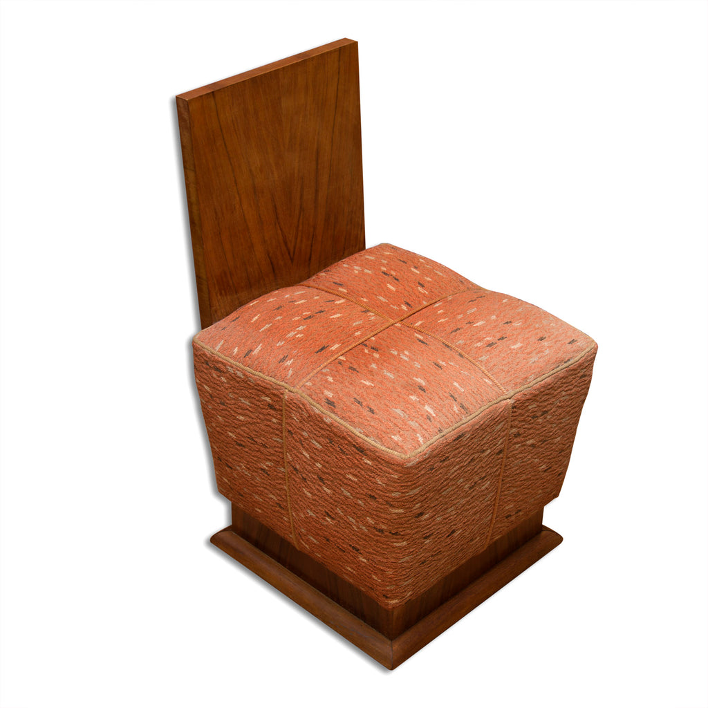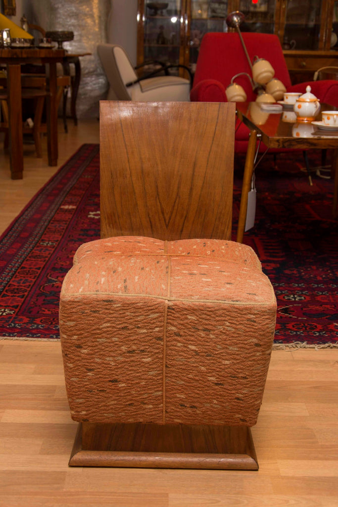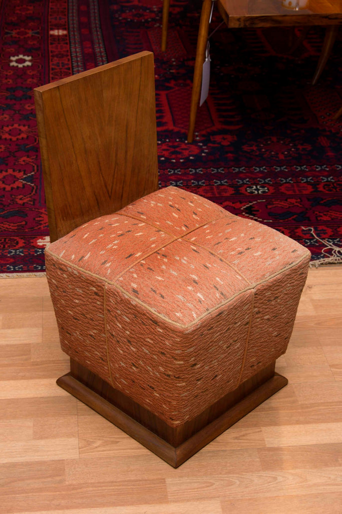 ART DECO pouffe - footstool with wooden base, 1930s, Bohemia