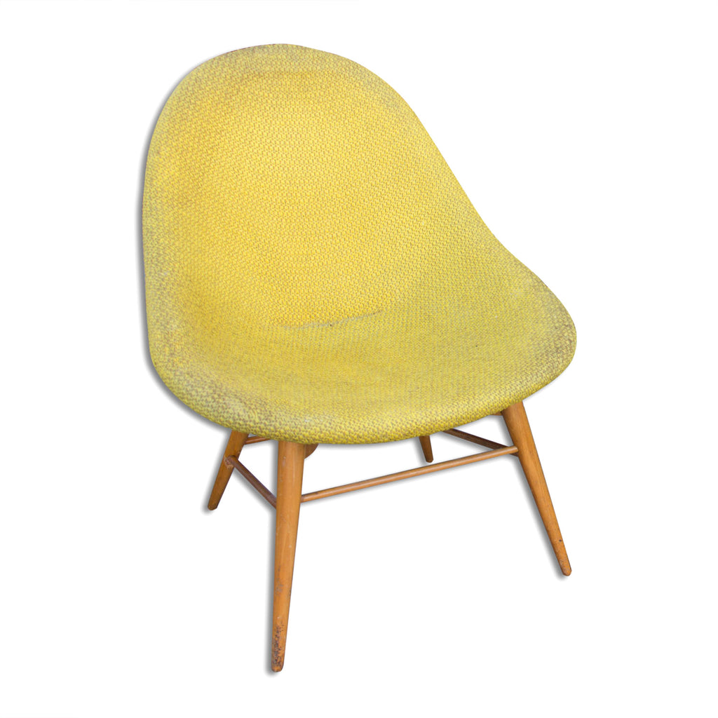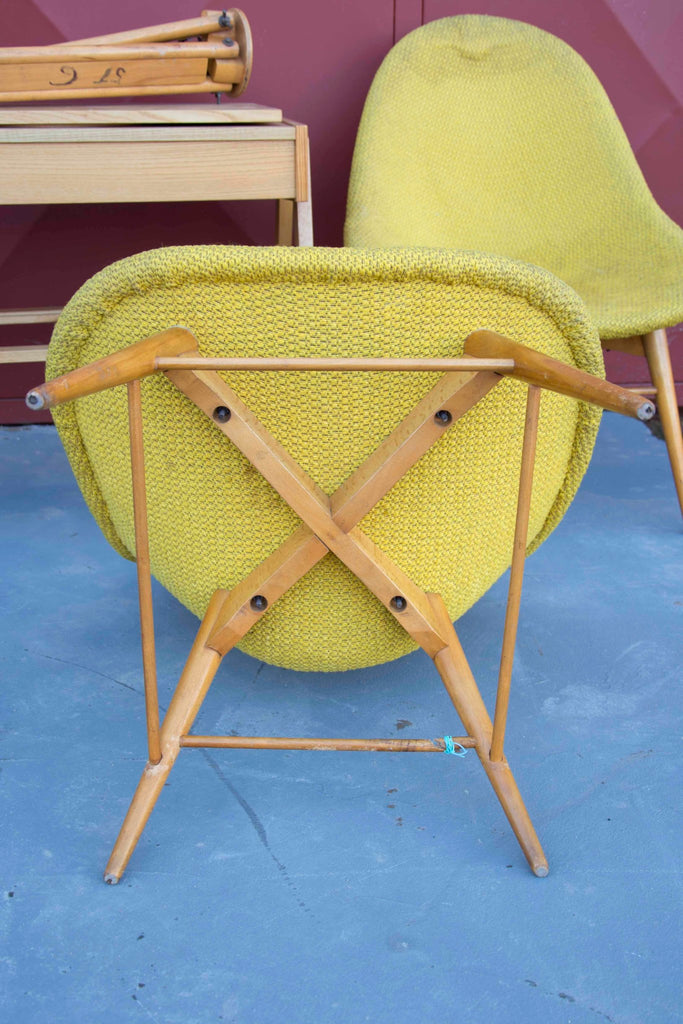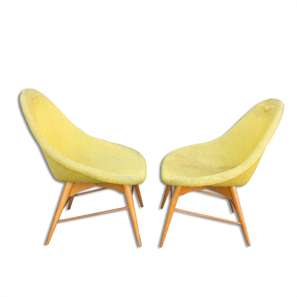 These shell lounge chairs are an interesting example of Czechoslovak mid-century furniture design. They were designed by Miroslav Navratil. Associated with the "Brussels period" and world-renowned EXPO 58.