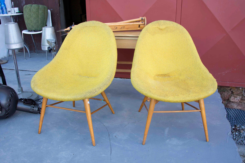 Pair of mid century shell fiberglass lounge chairs, designed by Miroslav Navratil, Czechoslovakia