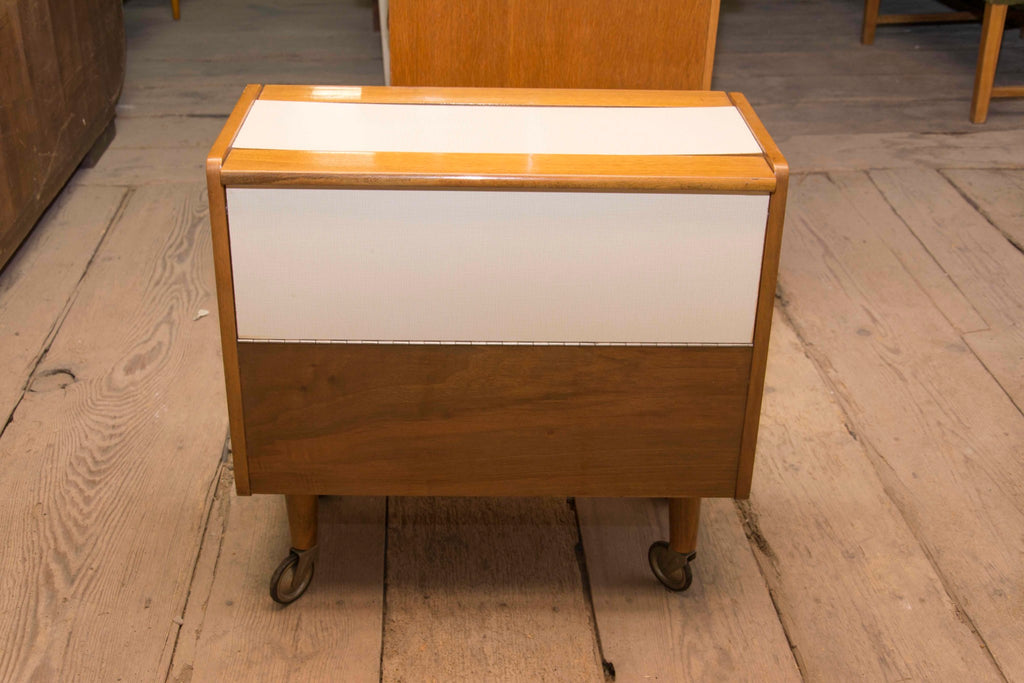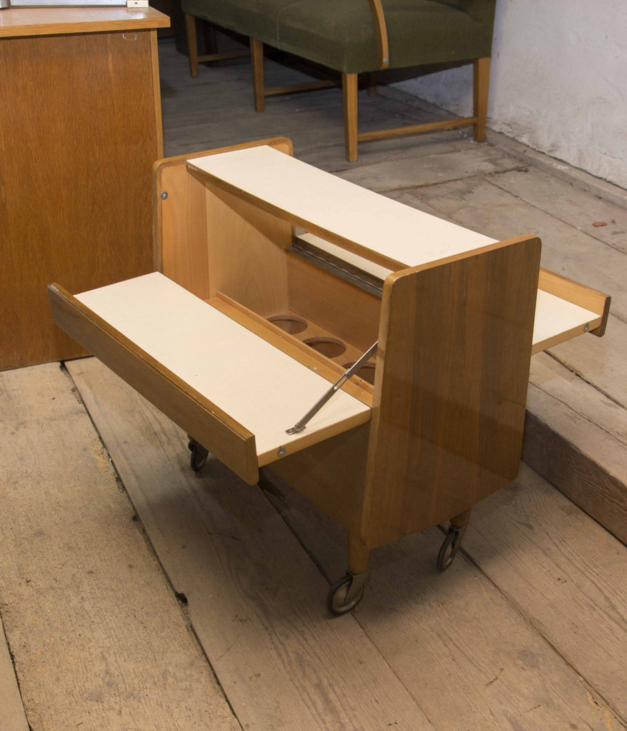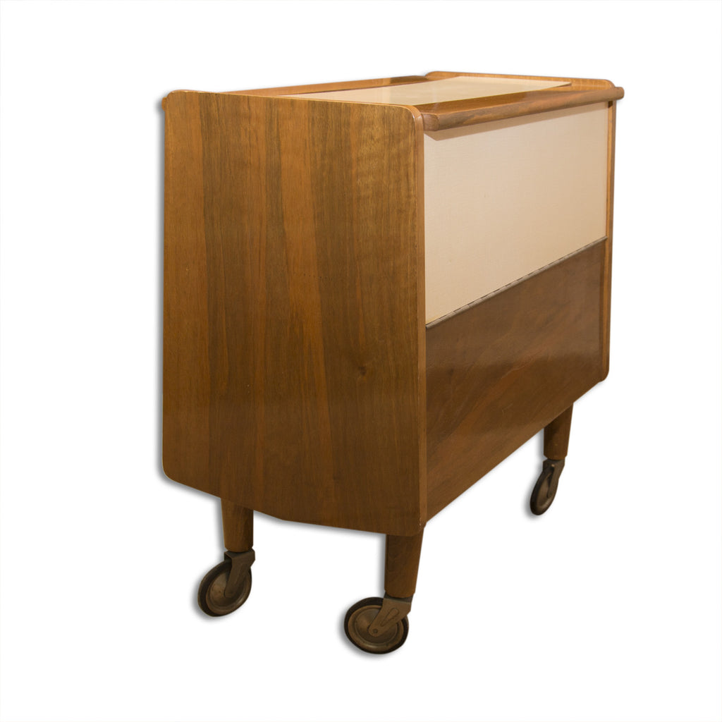 Mid century wheeled Serving table, trolley in walnut ? Czechoslovakia, 1970s