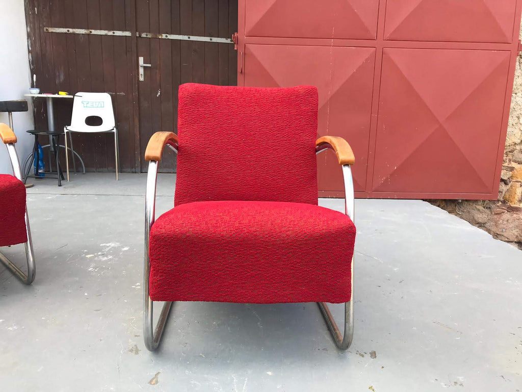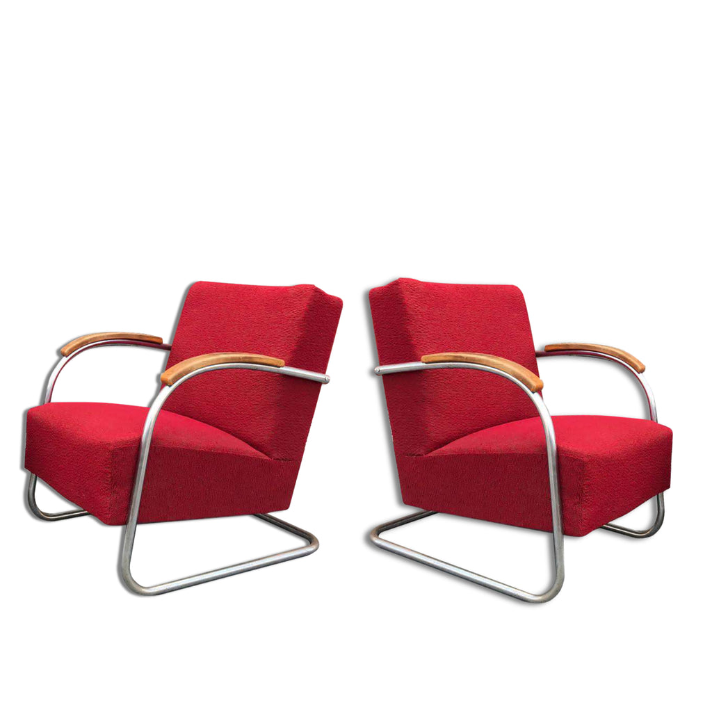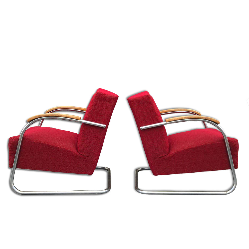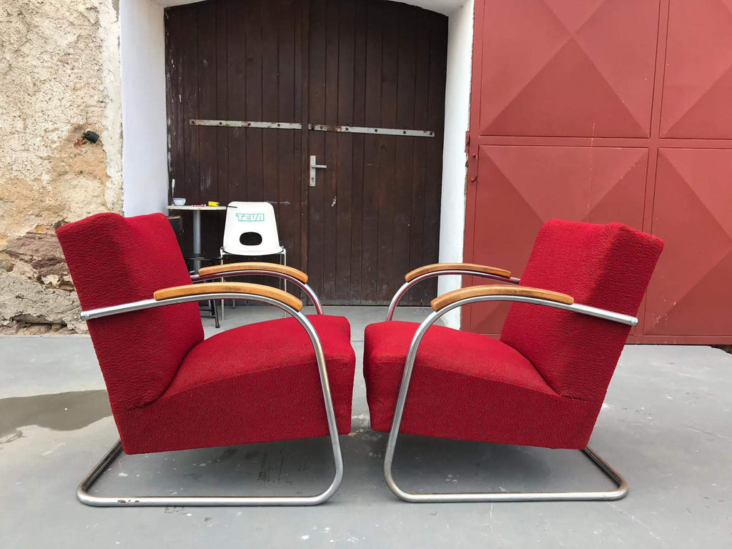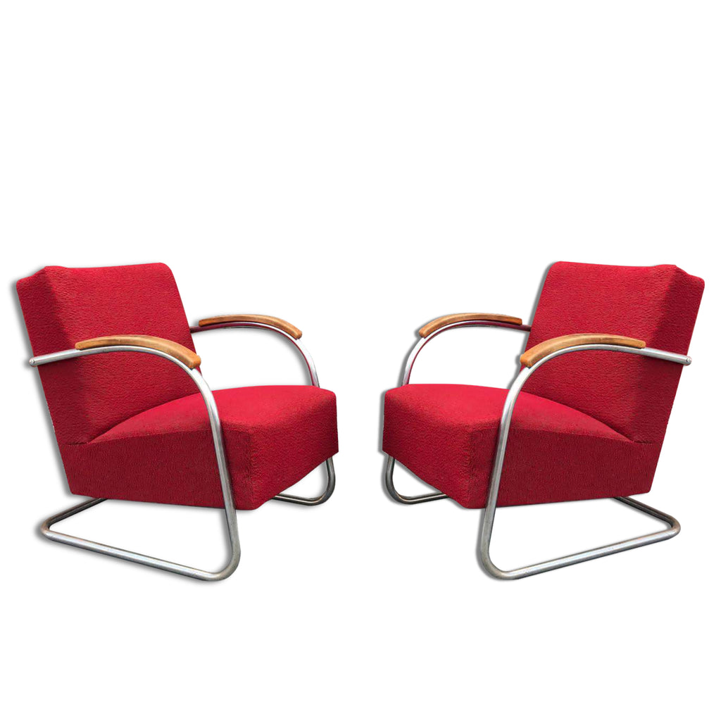 Pair of Bauhaus tubular steel armchairs by Mucke Melder - 1930s