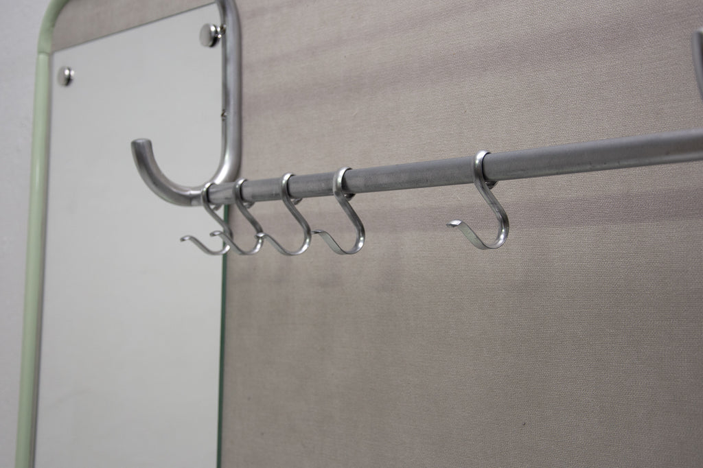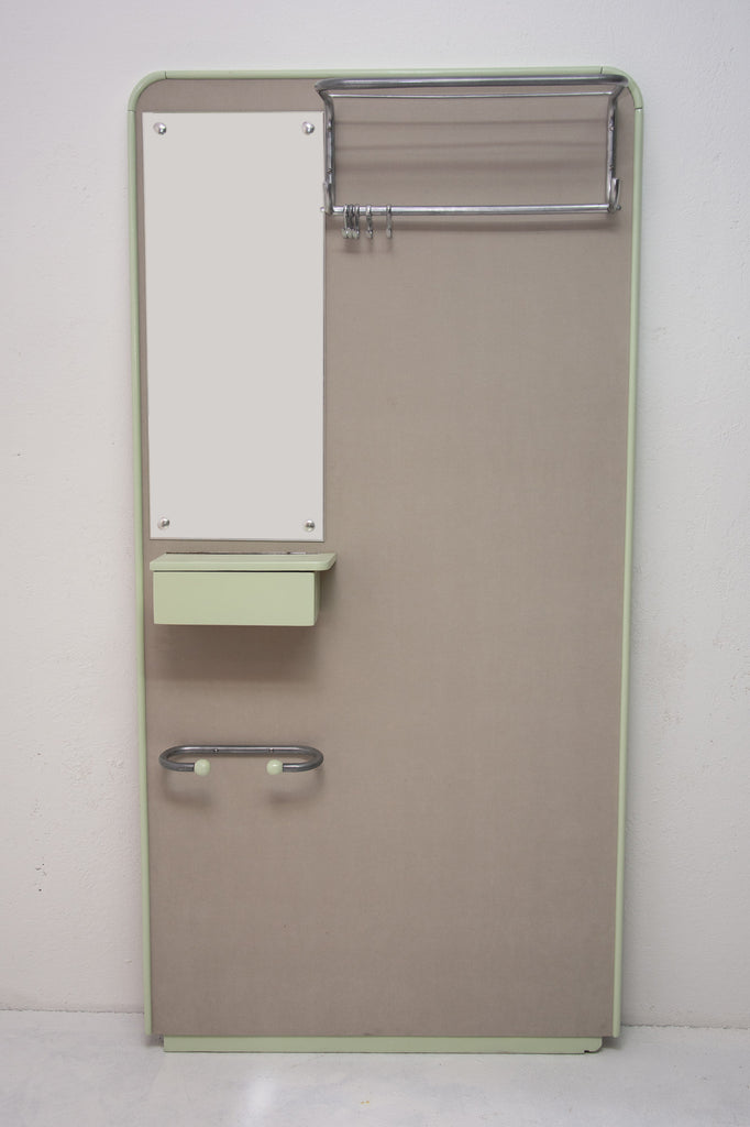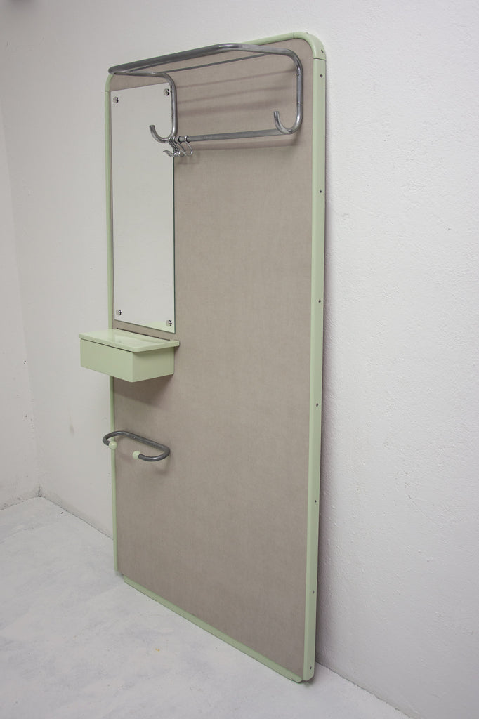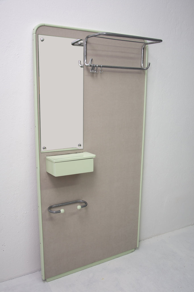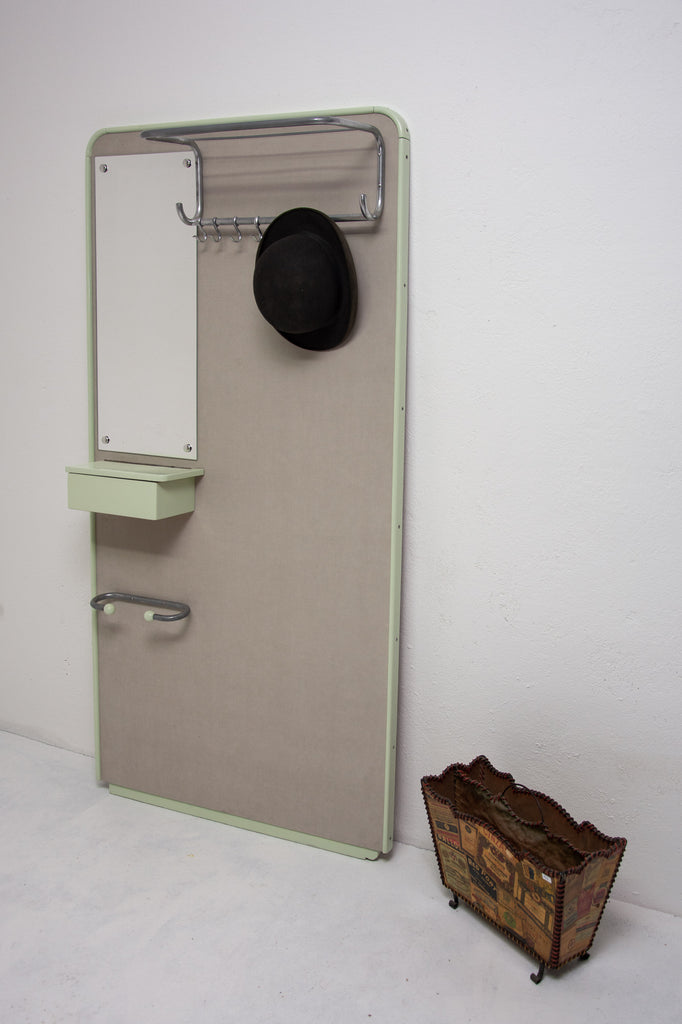 For all Bauhaus lovers! A beautiful example of Bohemian pre-war functionalism represents this model of entrance Clothes stand with mirror. It was made in the 1930´s by Mücke-Melder company. The rack features a chromed holder for hats, a new mirror and an umbrella holder.