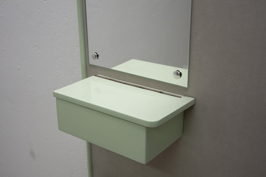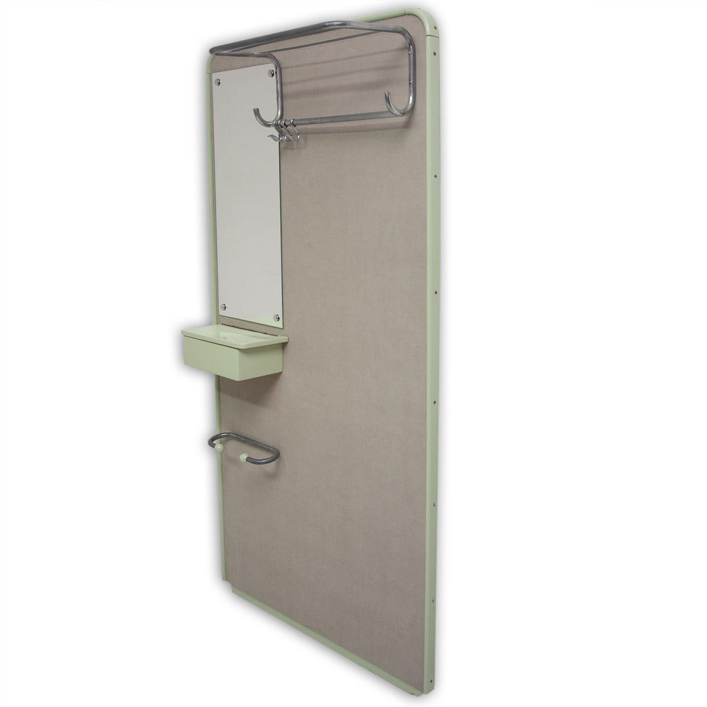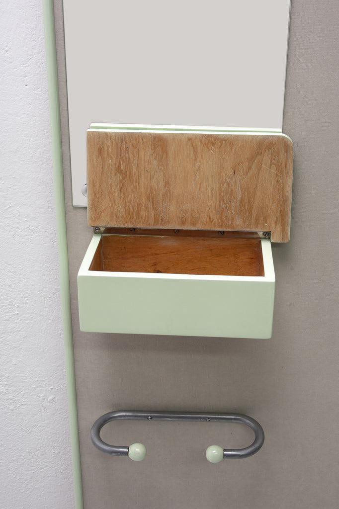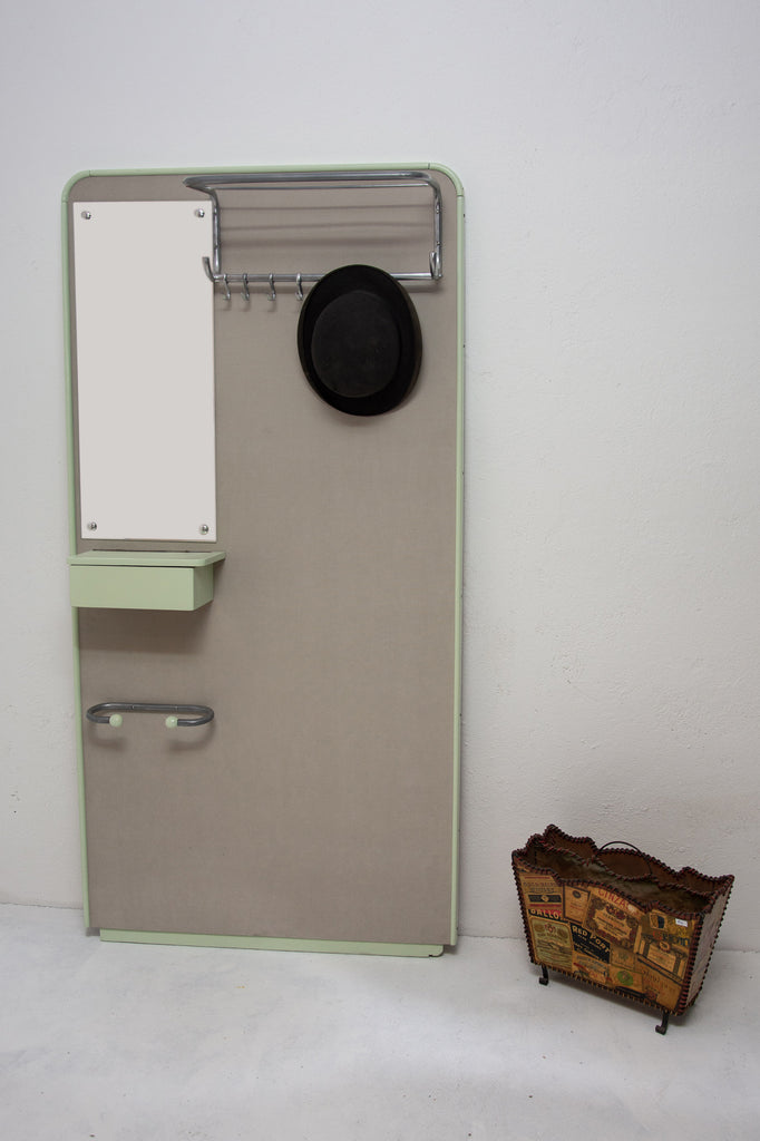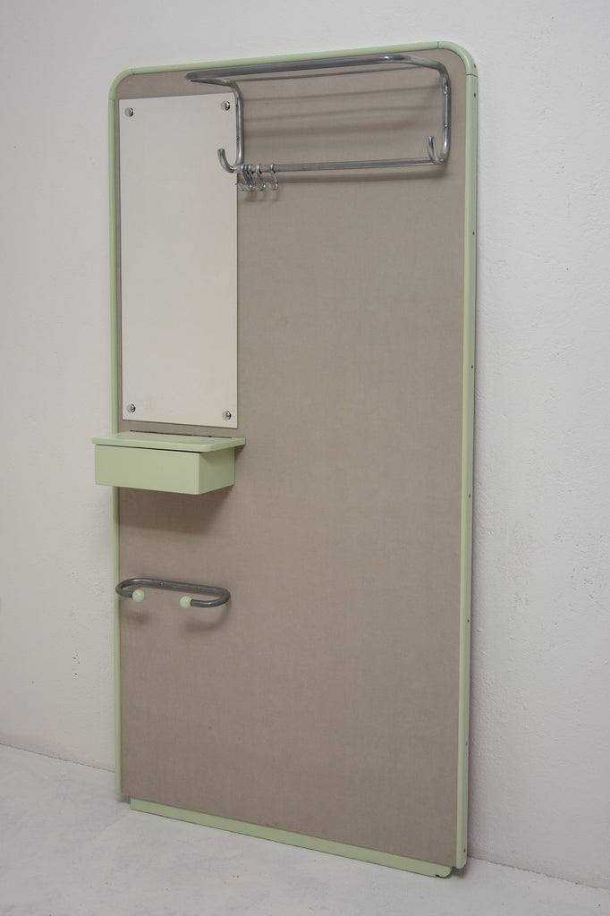 For all Bauhaus lovers! A beautiful example of Bohemian pre-war functionalism represents this model of entrance Clothes stand with mirror. It was made in the 1930´s by Mücke-Melder company. The rack features a chromed holder for hats, a new mirror and an umbrella holder.