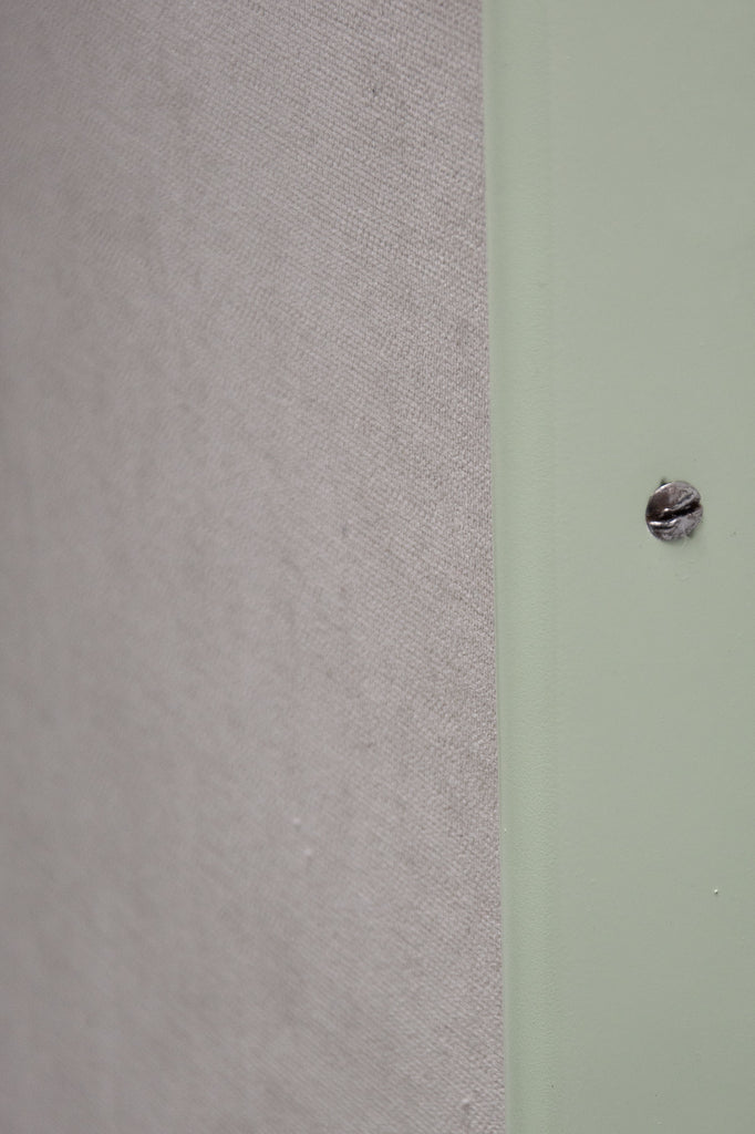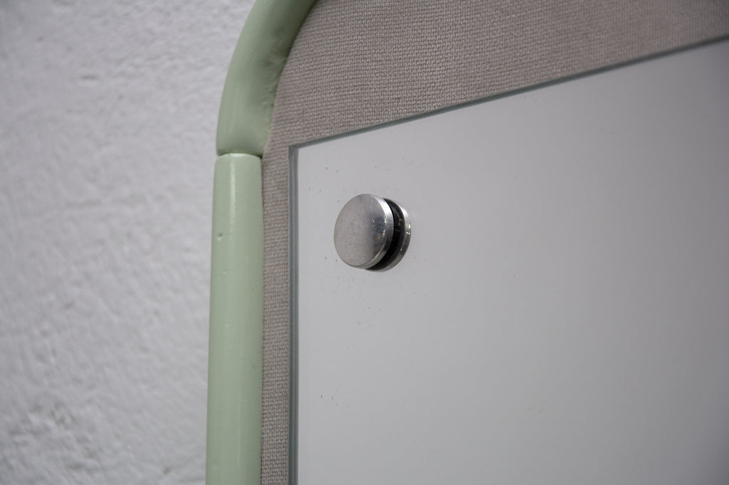 The stand is in excellent condition, fully restored. The hanger is newly lacqured in the original style in the form of a greenish color. The surface is newly coated with a gray suede fabric.