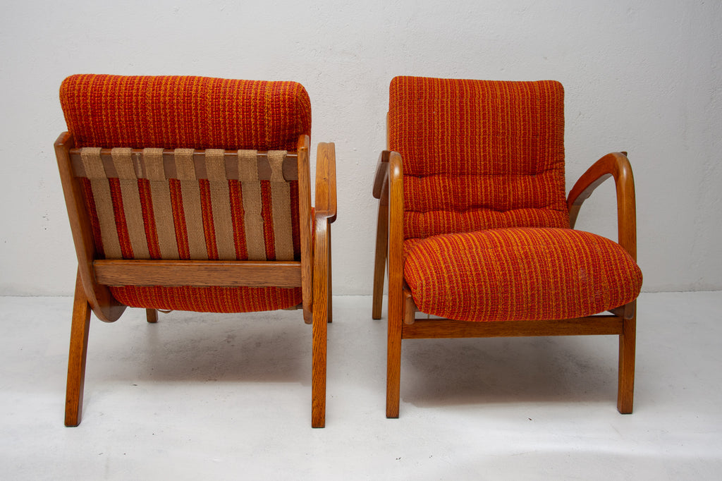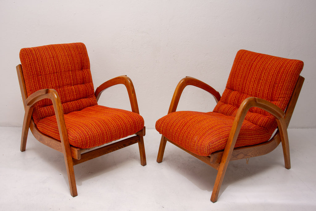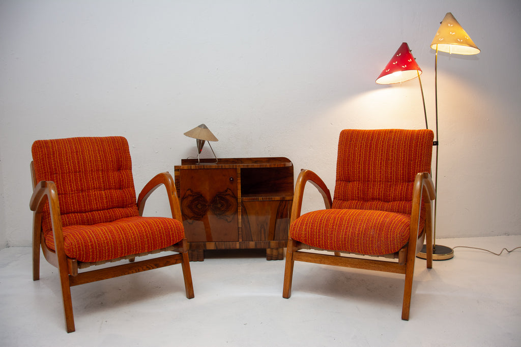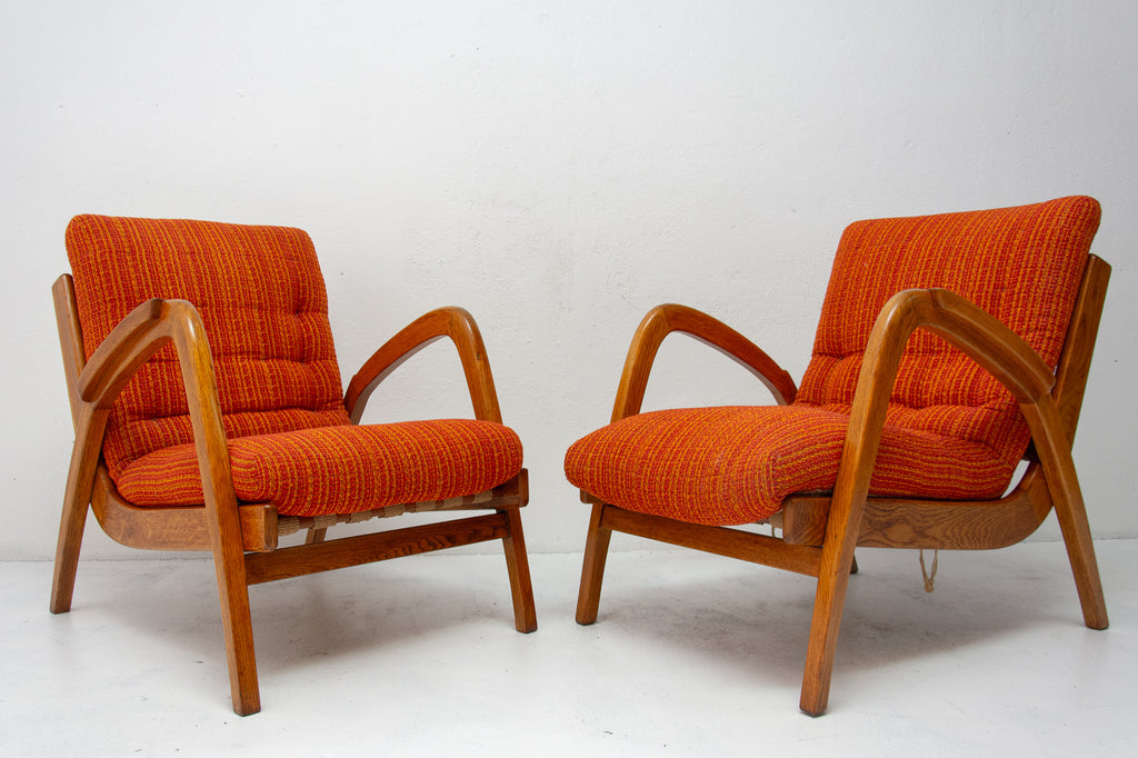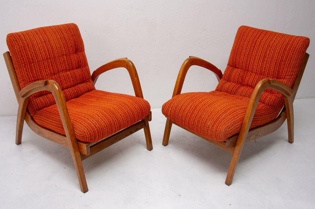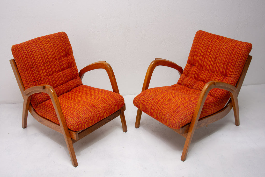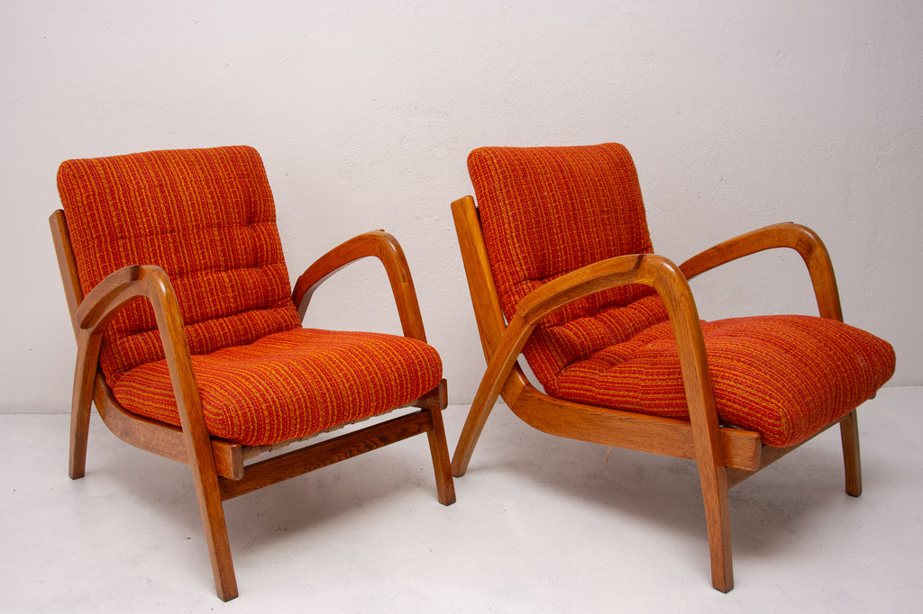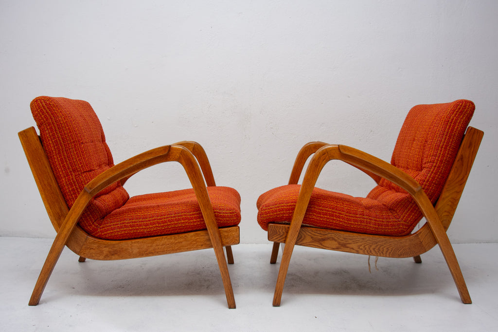 Jan VanŘk, Pair of beechwood armchairs with removable cushions, for UP Zavody, 1940s