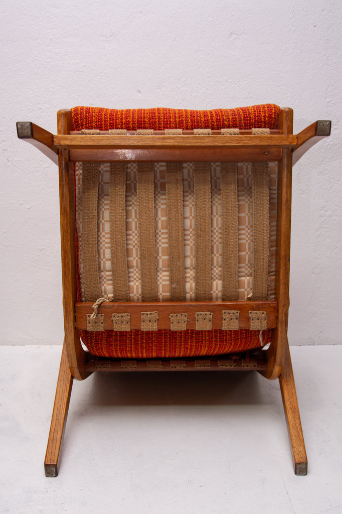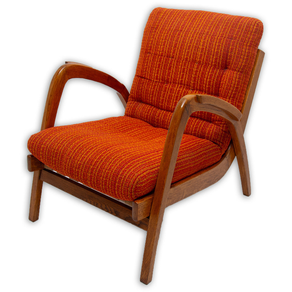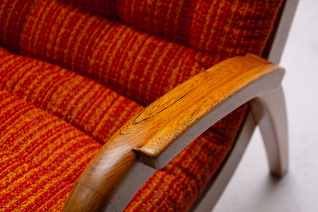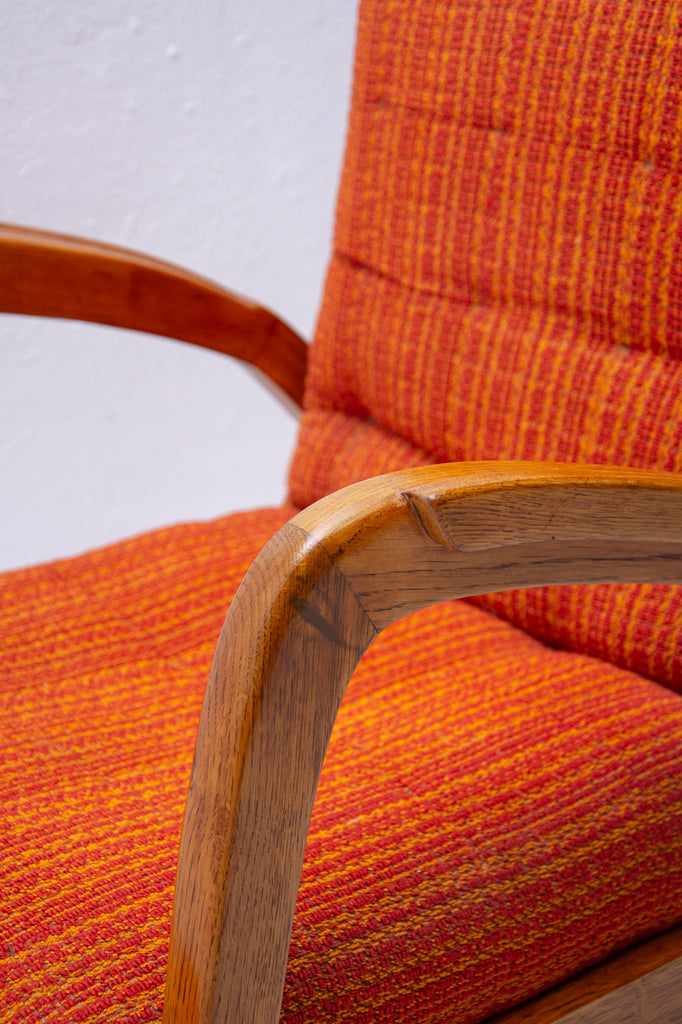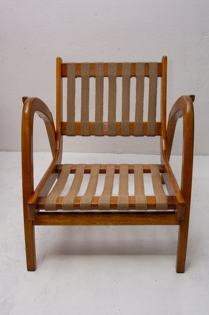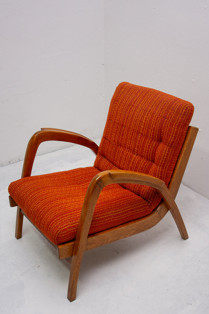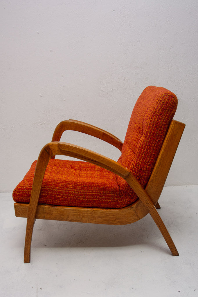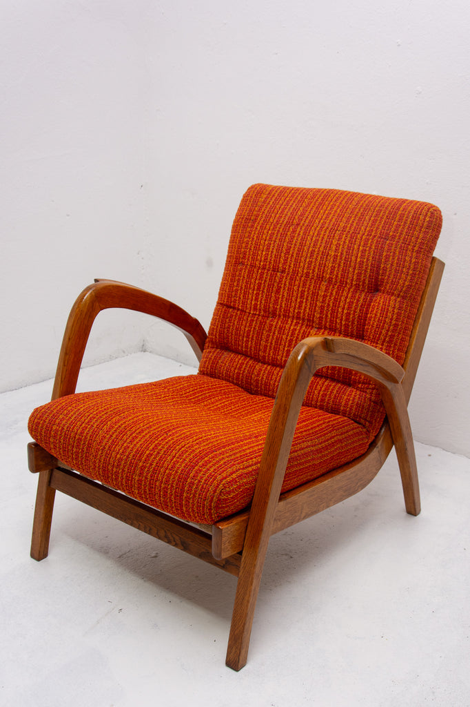Jan VanŘk, Pair of beechwood armchairs with removable cushions, for UP Zavody, 1940s