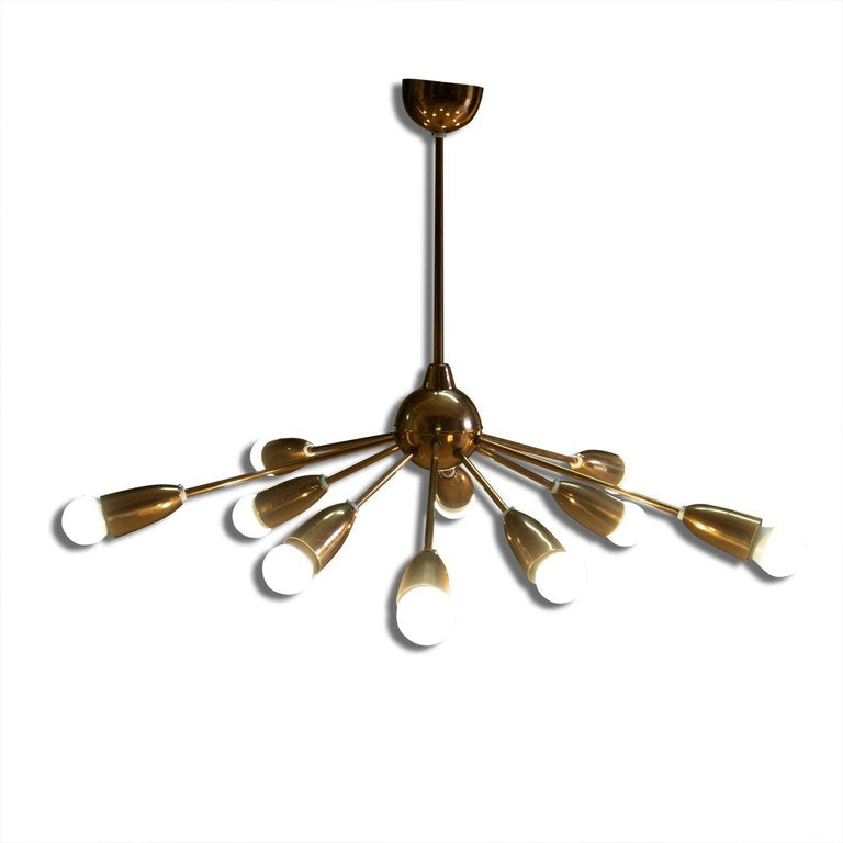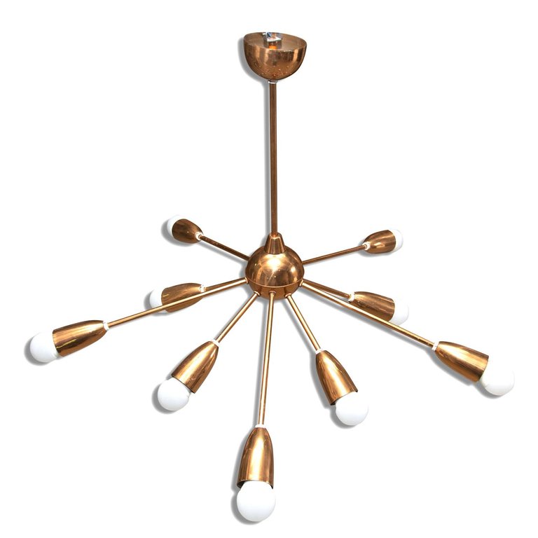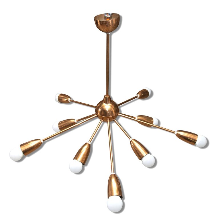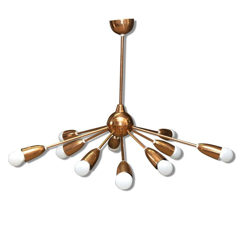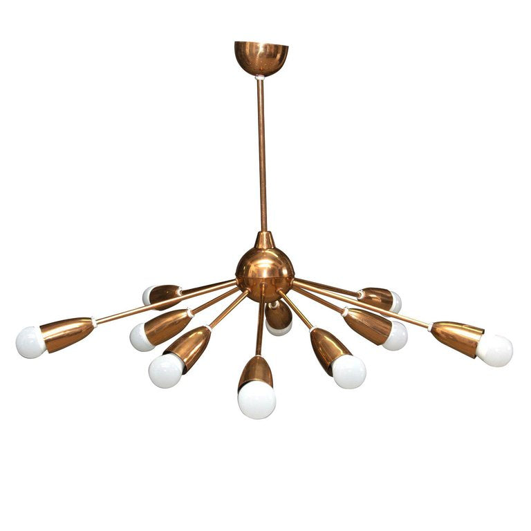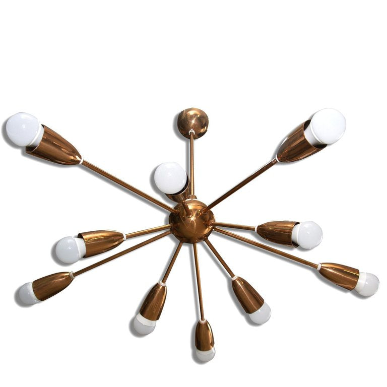 Italian Space Age Ten Arms Copper Sputnik Chandelier, 1960s