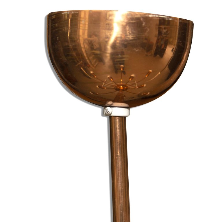 This Space Age copper Sputnik chandelier was made in Italy in the 1960s. It features 10 copper arms. The chandelier is in very good vintage condition, new wiring.