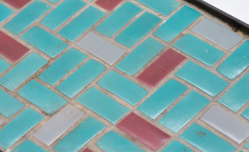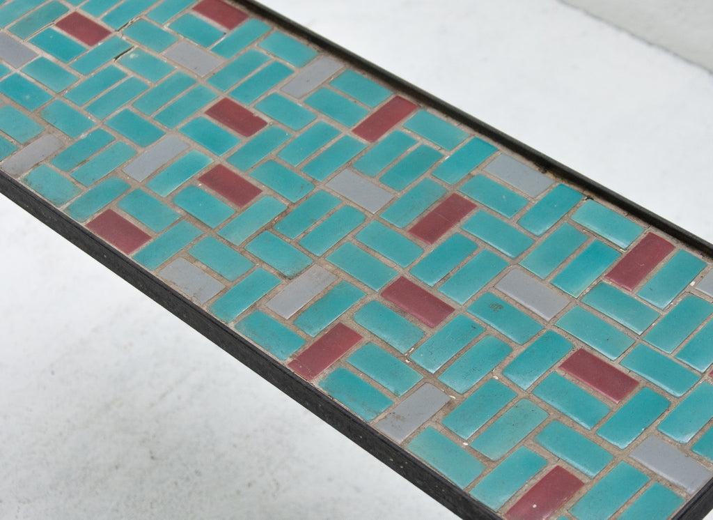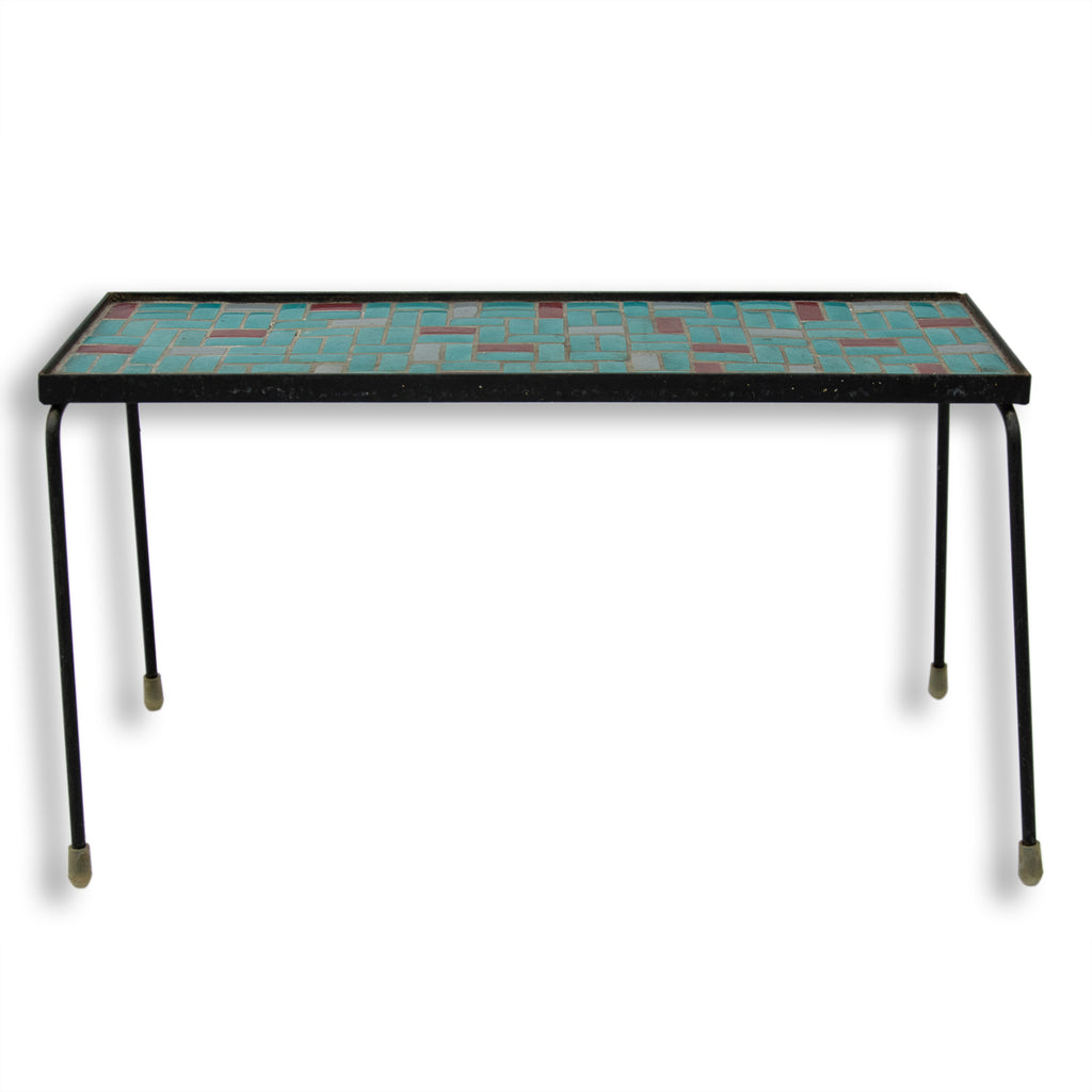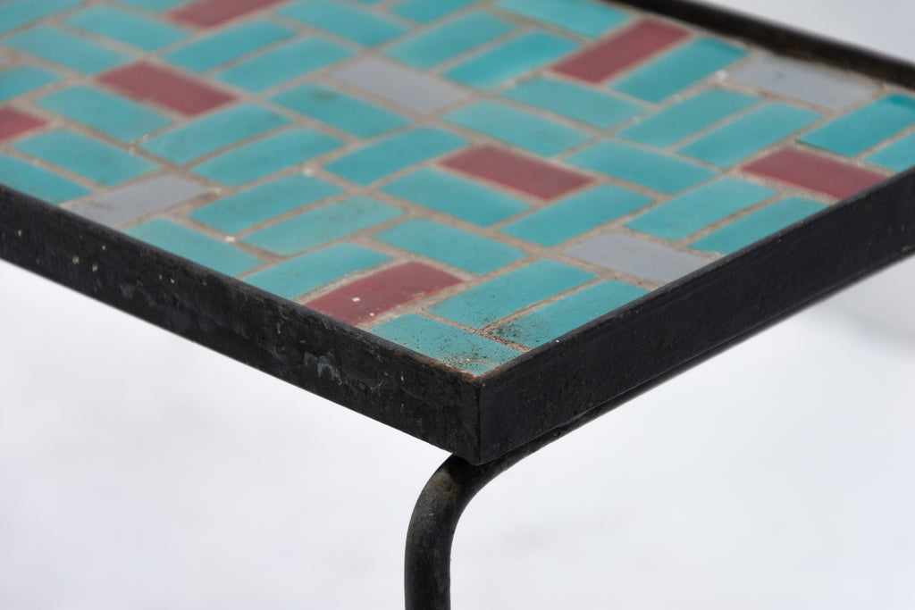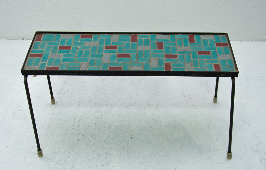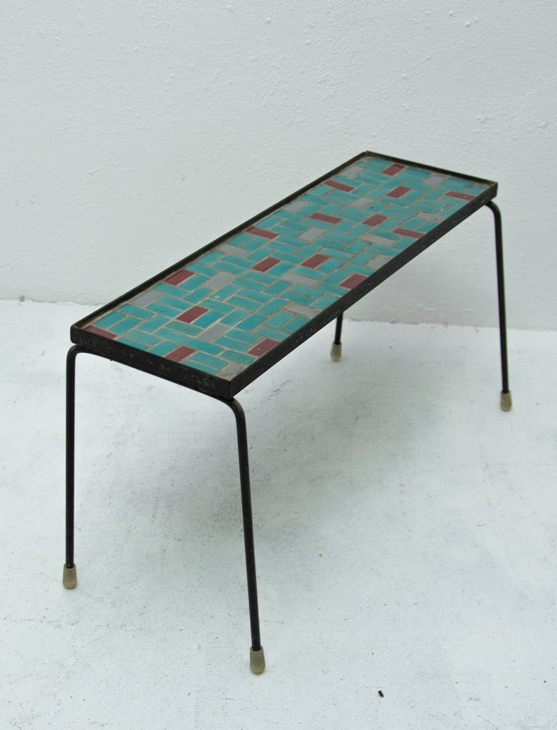 Mid-century very small flower table from the 1960´s. It´s associated with the world-famous EXPO 58 exhibition in Brussels. It was made in the former Czechoslovakia. It features an iron black lacquered structure and ceramic table top. The table is in good Vintage condition without any damage, bears signs of age and using.