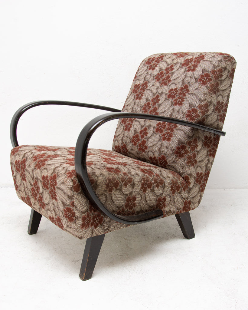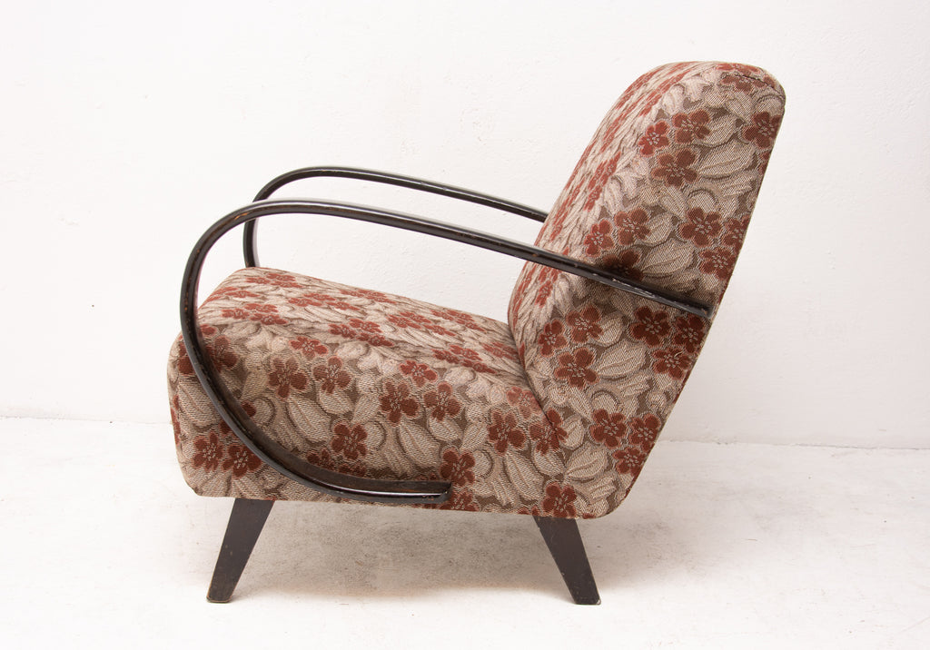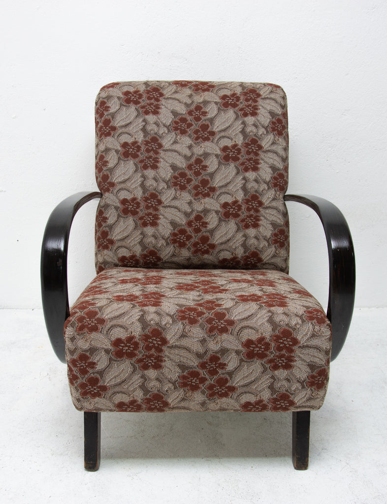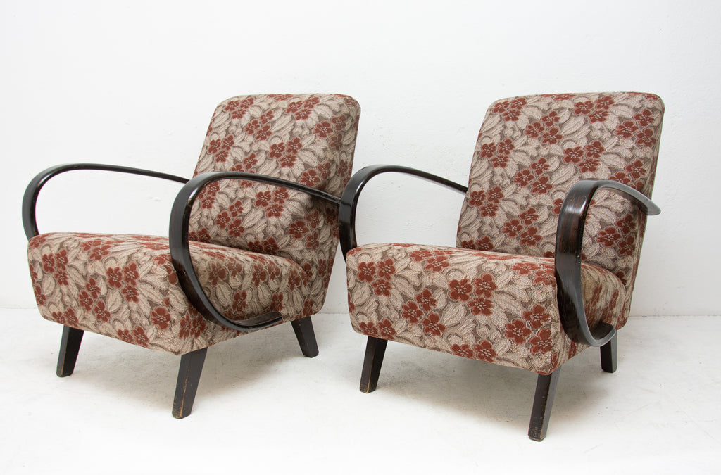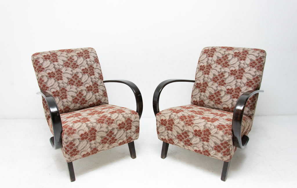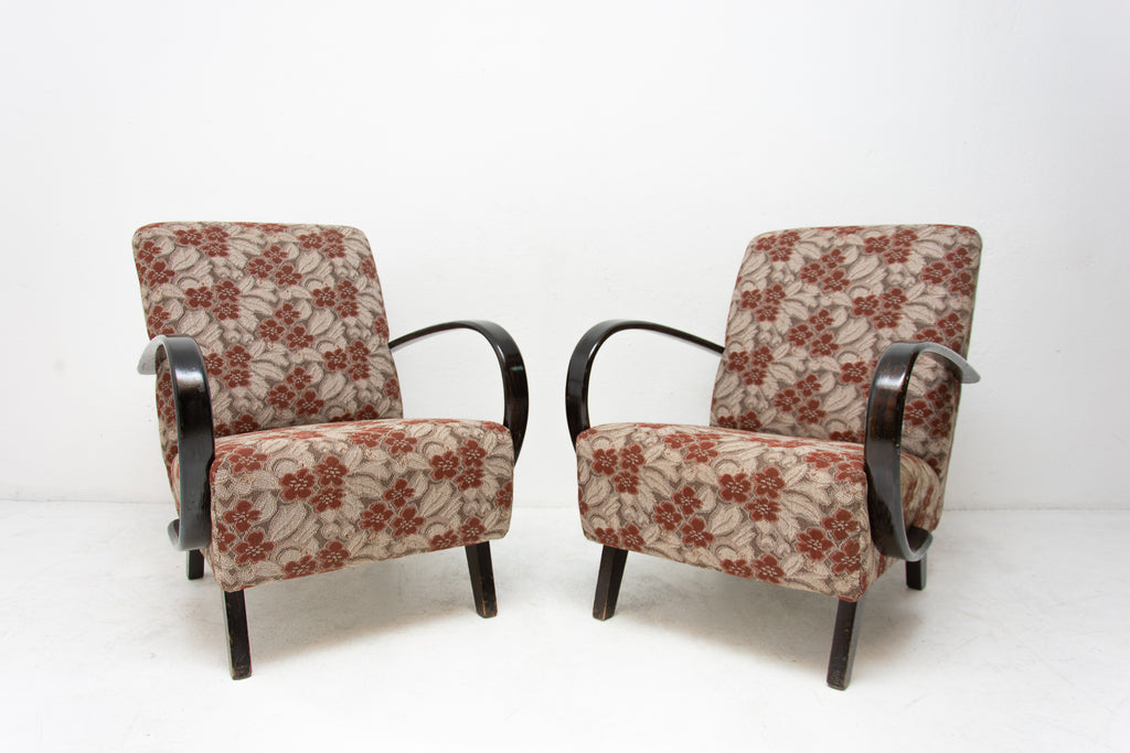 This pair of bentwood armchairs "C" was designed by Jindřich Halabala and produced by Thonet in the 1950´s. The chairs are in very good condition, they were reupholstered in the recent past. Price is for the pair.