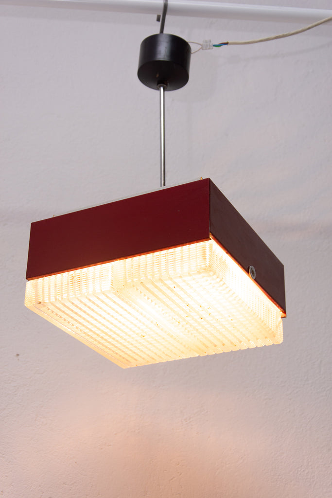 Pair of sheet metal and glass Napako pendants, 1970's, Czechoslovakia