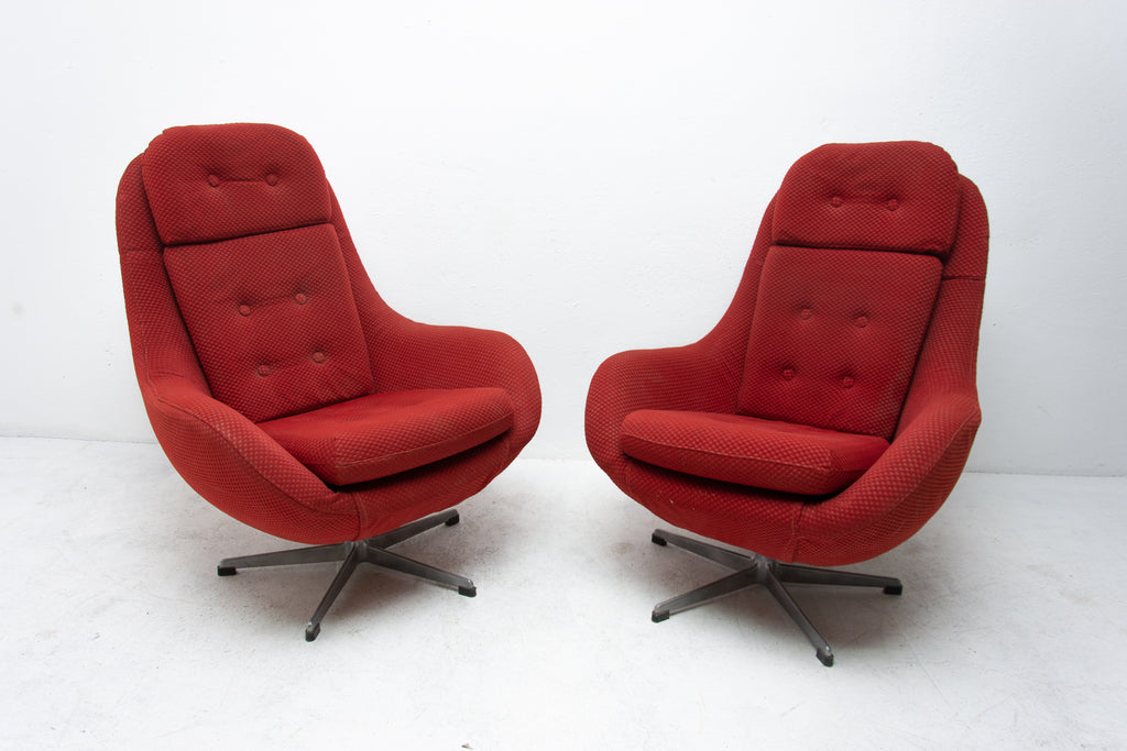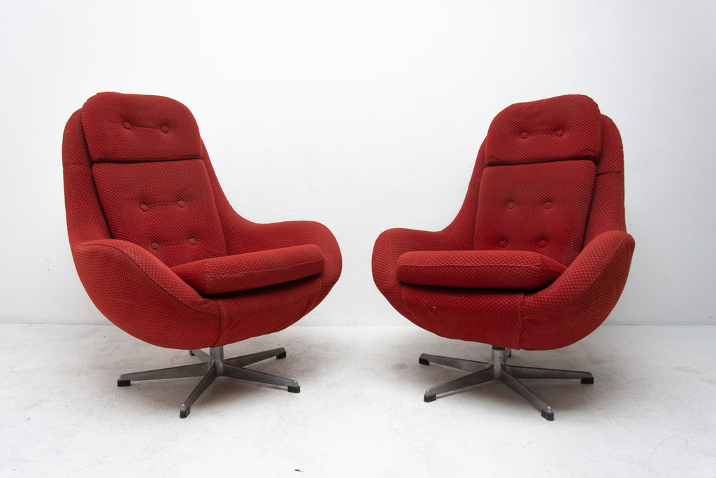 Pair of Eggs swivel armchairs, Czechoslovakia, 1970s