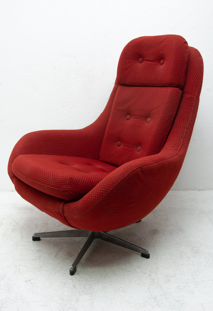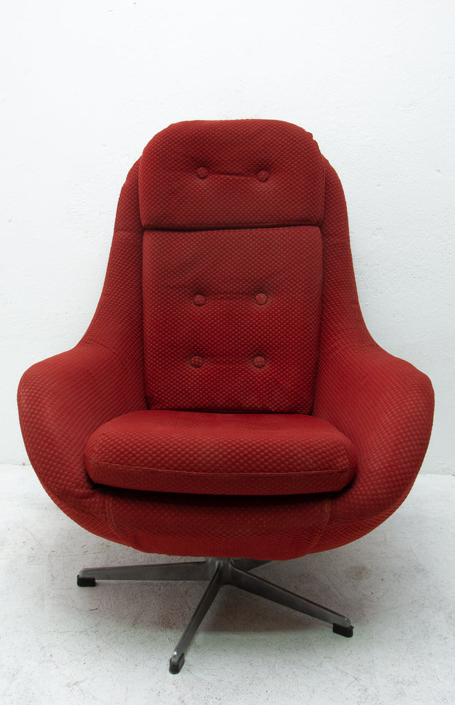 A pair of very comfortable "Eggs" swivel armchairs, made in the former Czechoslovakia in the 1970´s. Upholstery is in Very good original condition, bears slights signs of age and using.