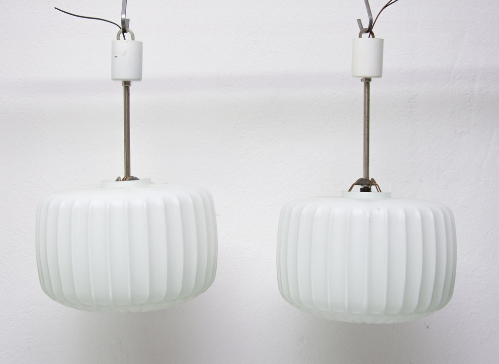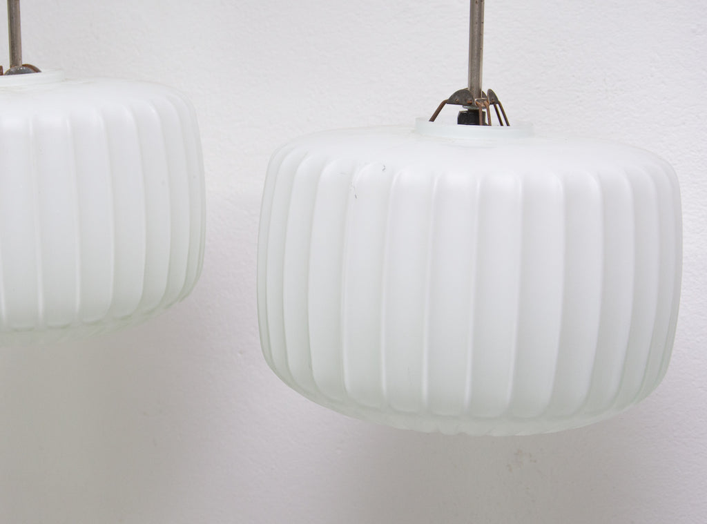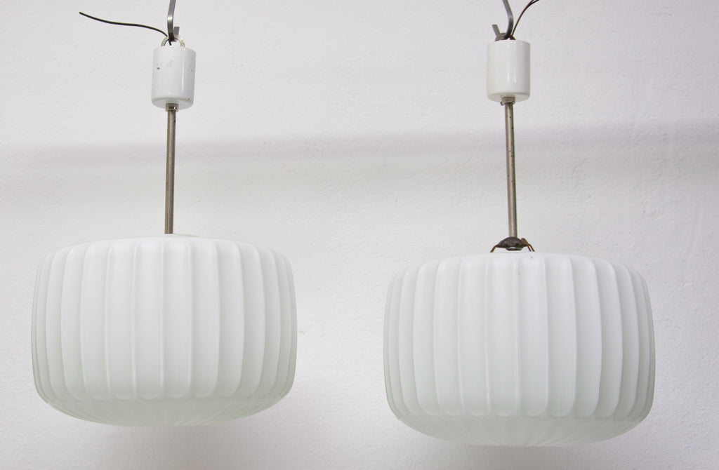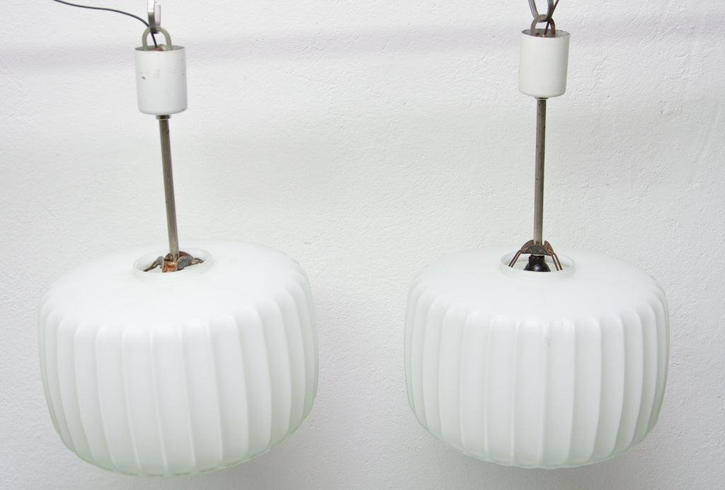 Pair of Vintage opaline glass pendant chandeliers, Eastern bloc 1970s