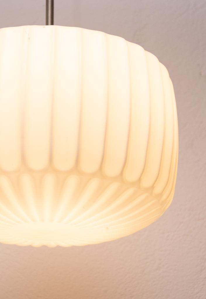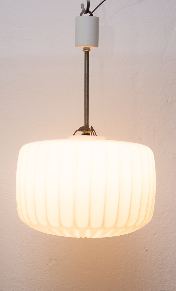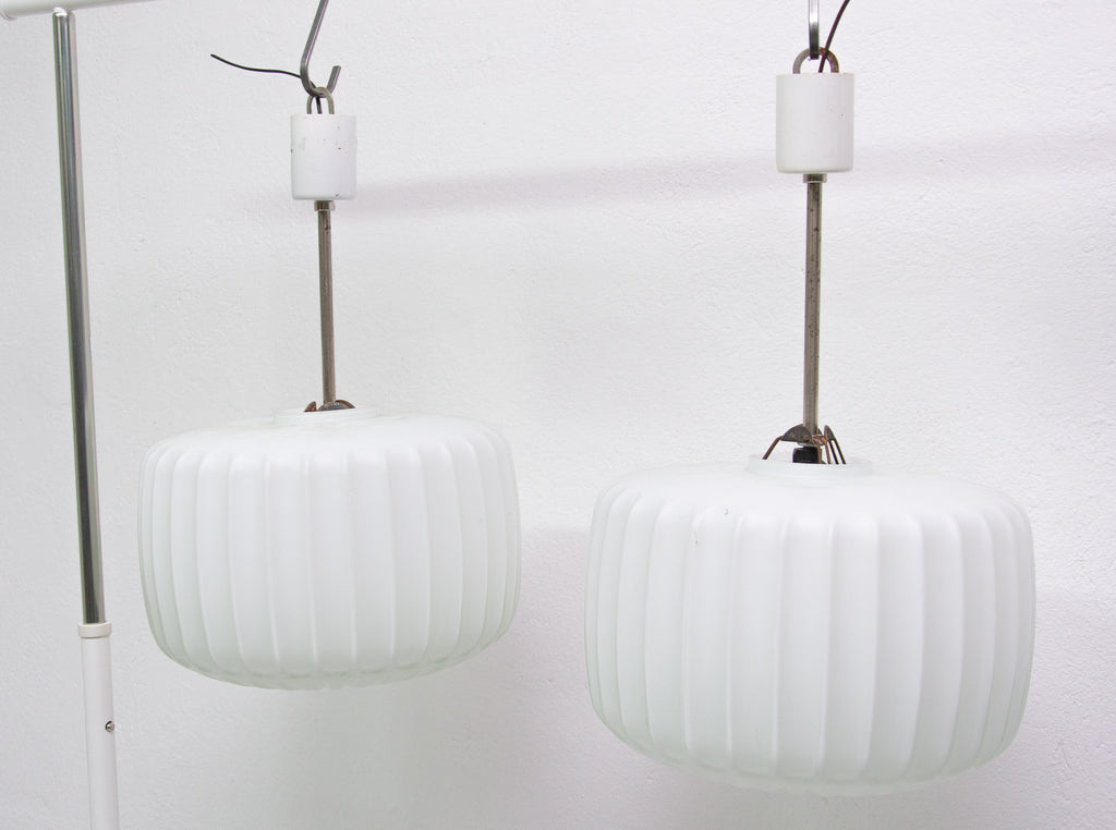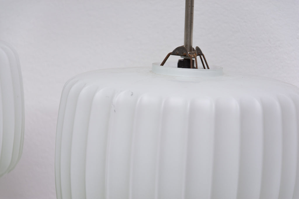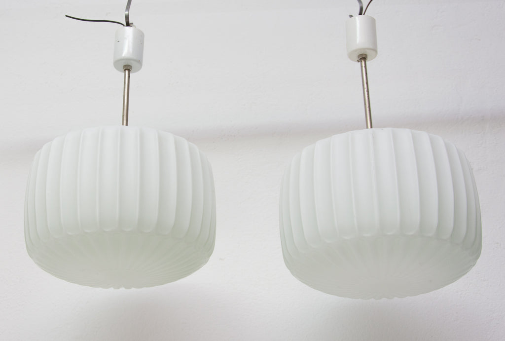 Pair of Vintage opaline glass pendant chandeliers, Eastern bloc 1970s