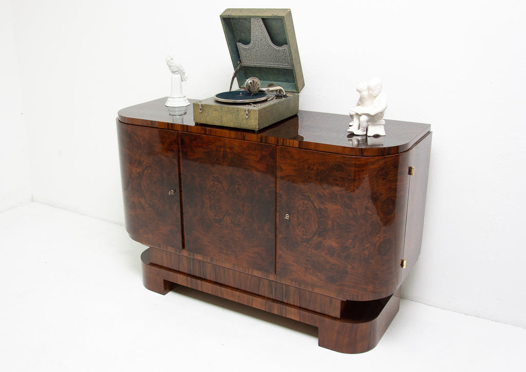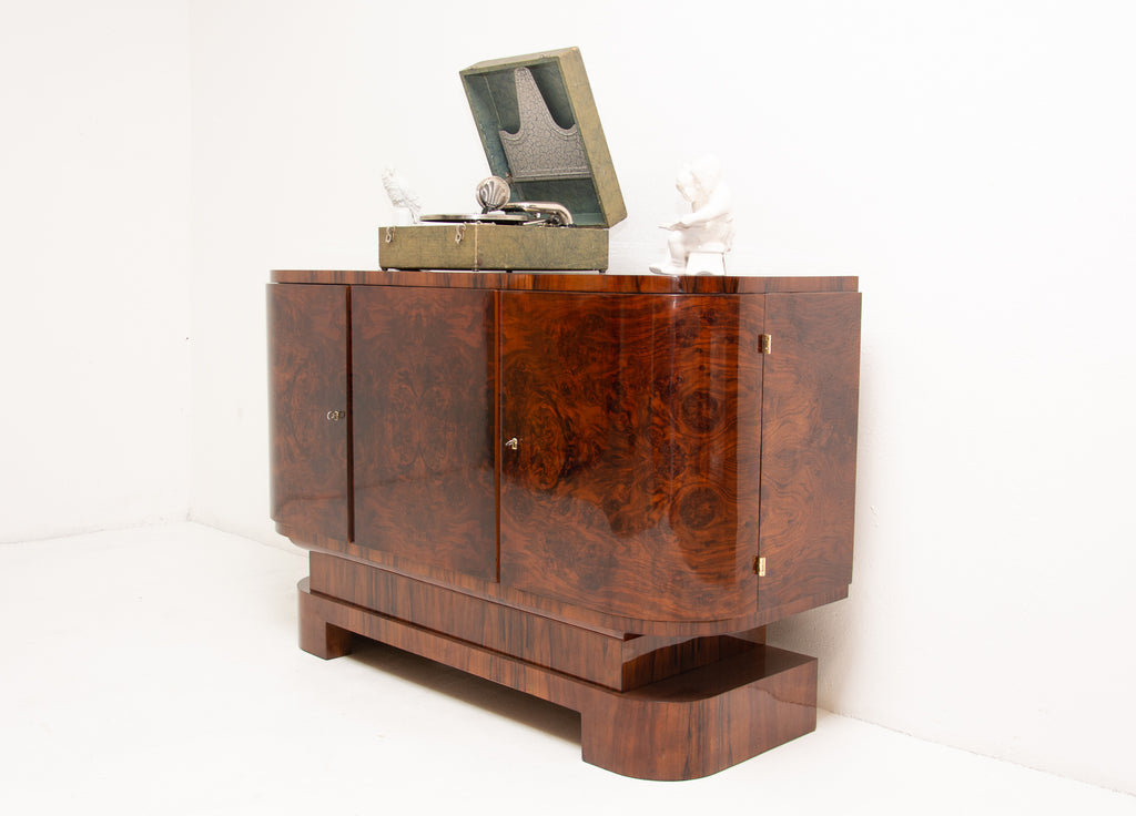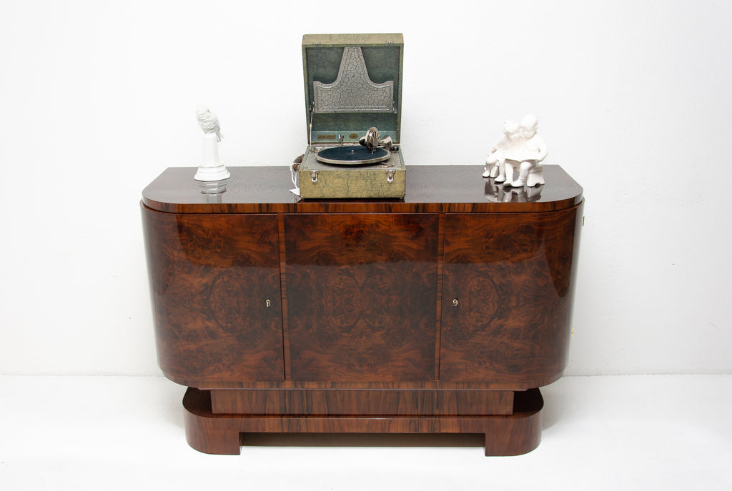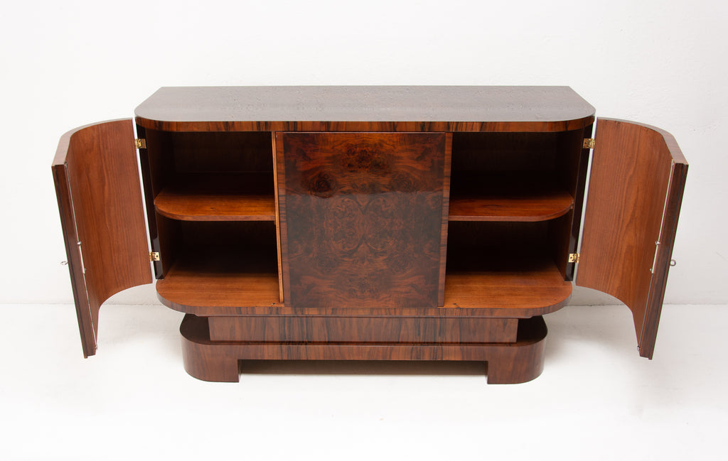 Art Deco Walnut Oval bar or Sideboard, 1930s, Bohemia
