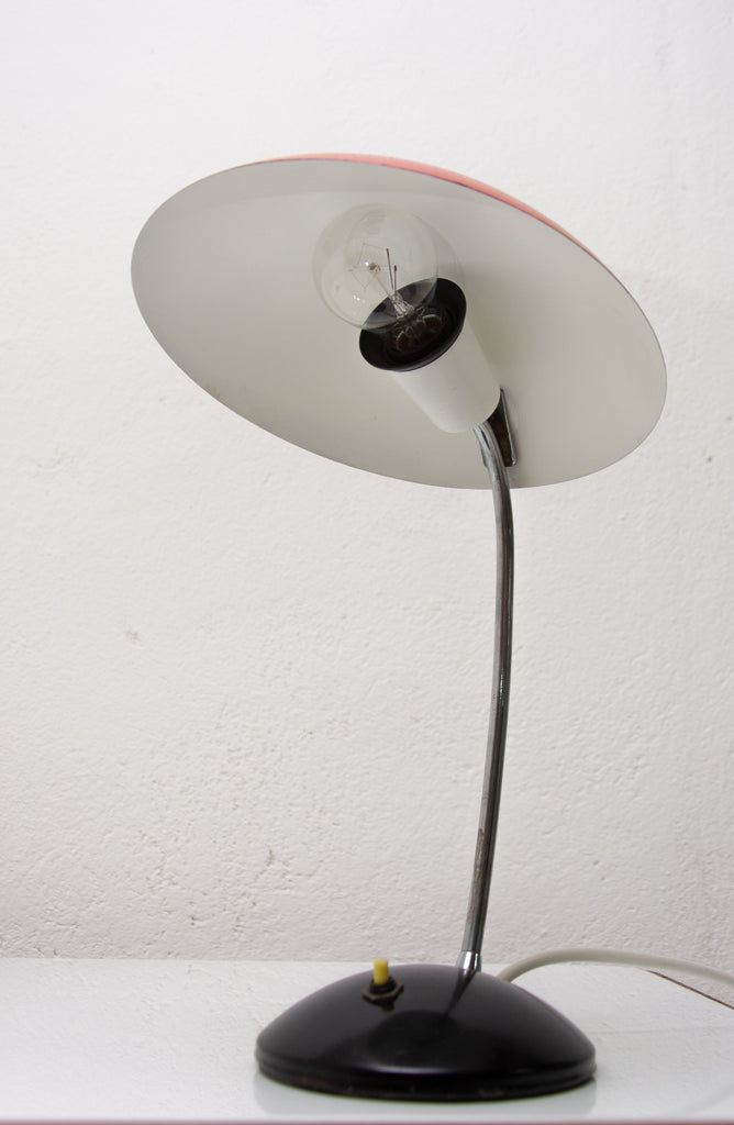 Chrome and plastic desk lamp, made in the former Czechoslovakia in the 1960´s. In very good Vintage condition, chrome structure has been cleaned and the lamp has a new wiring.