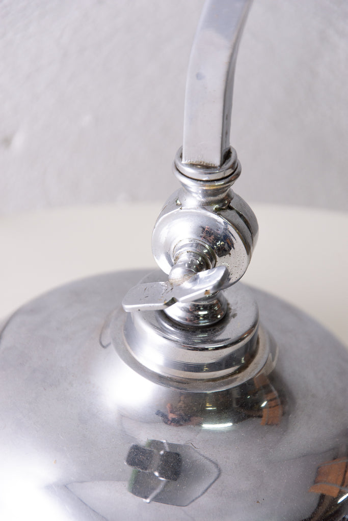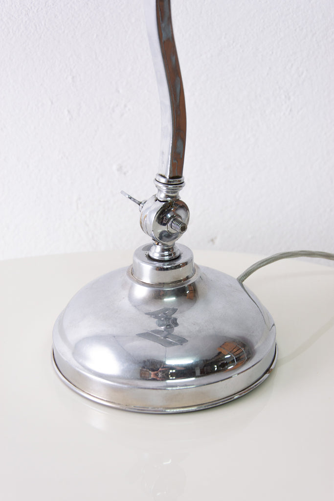 Characteristic desk lamp, Bauhaus style, designed in 1930. The lamp has a chromium plated base and an enameled metal cap. The arm and cap are adjustable. Fully adjustable and a fantastic look that fits in many interiors.In excellent condition. New wiring.