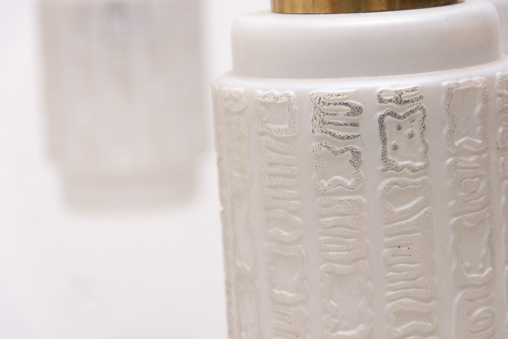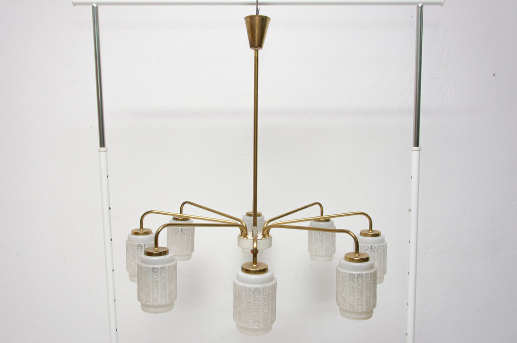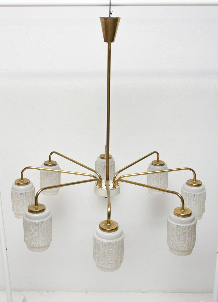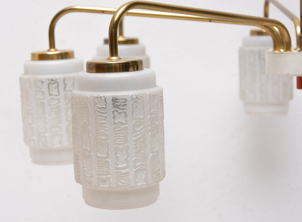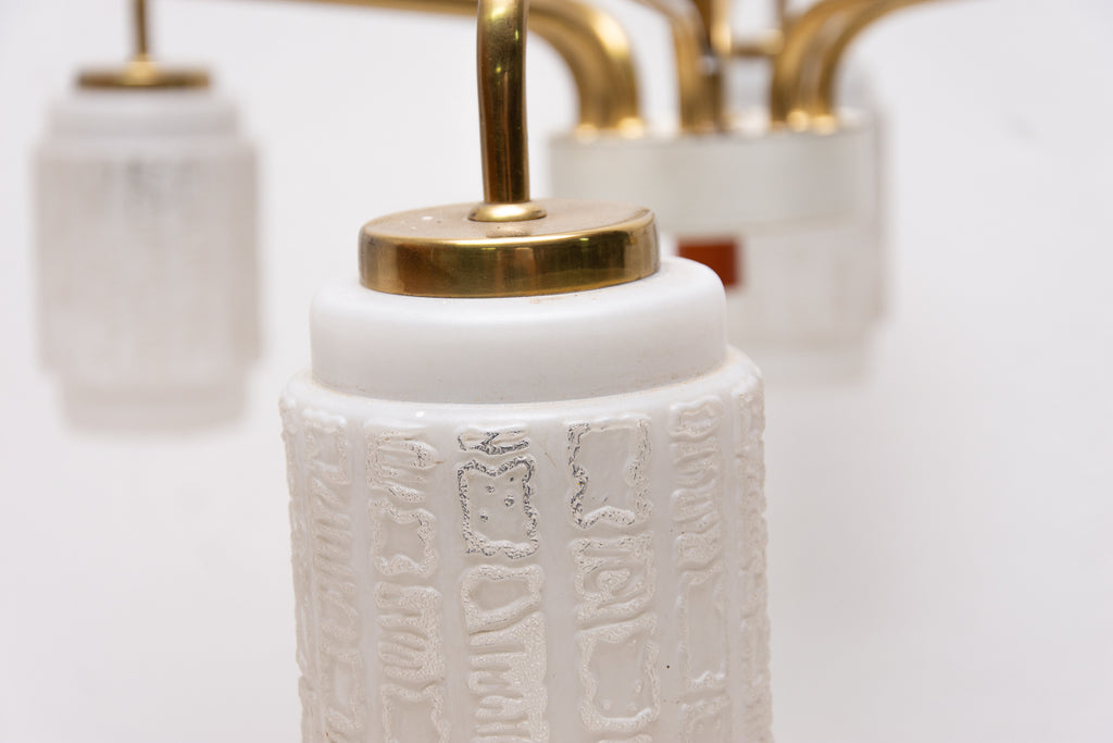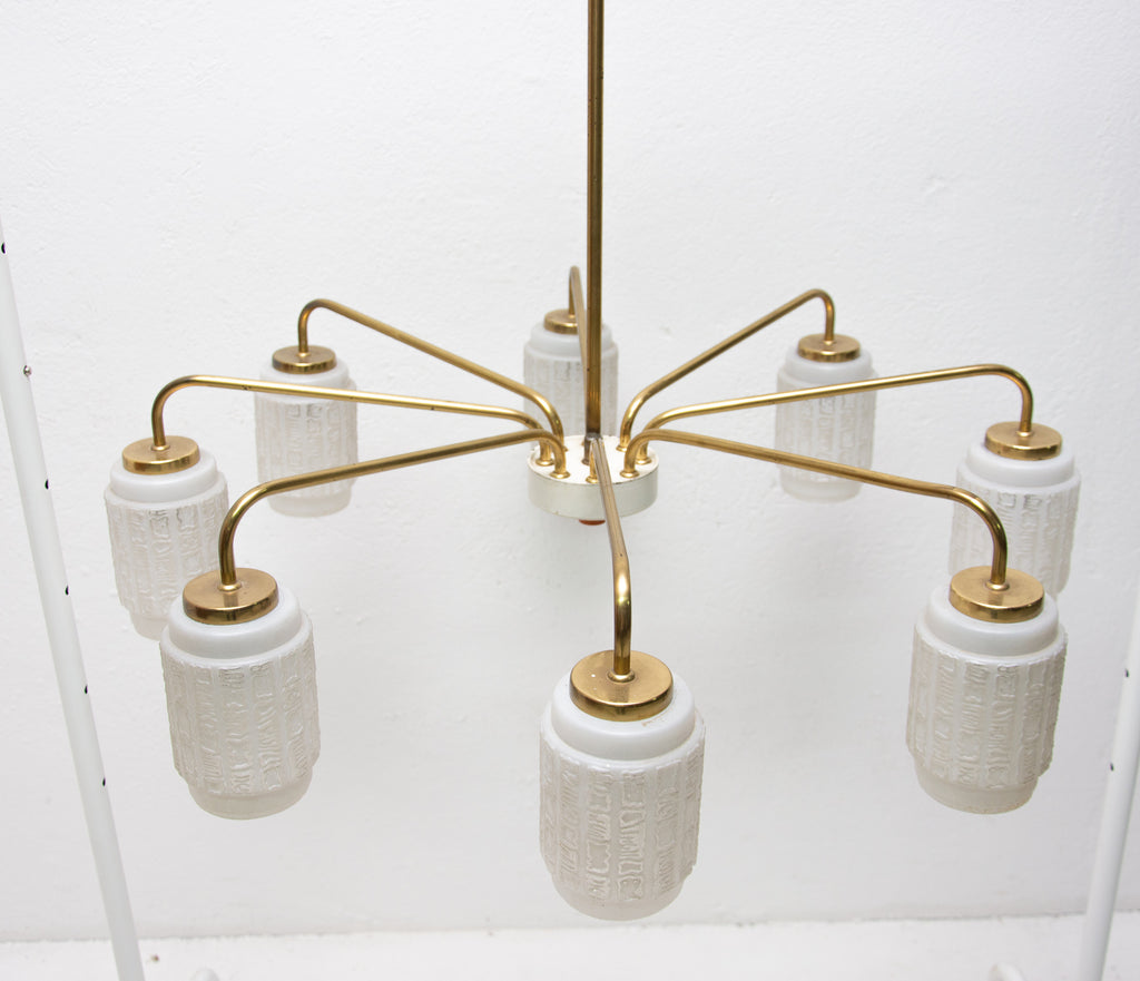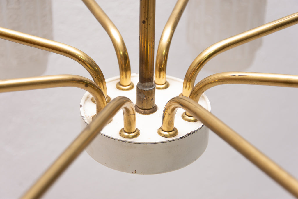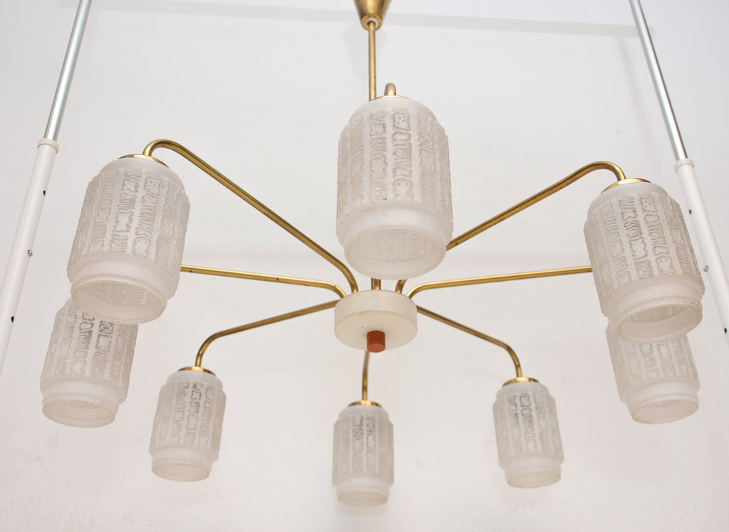 Midcentury spider eight arms chandelier with opaline glass lampshades, 1960s