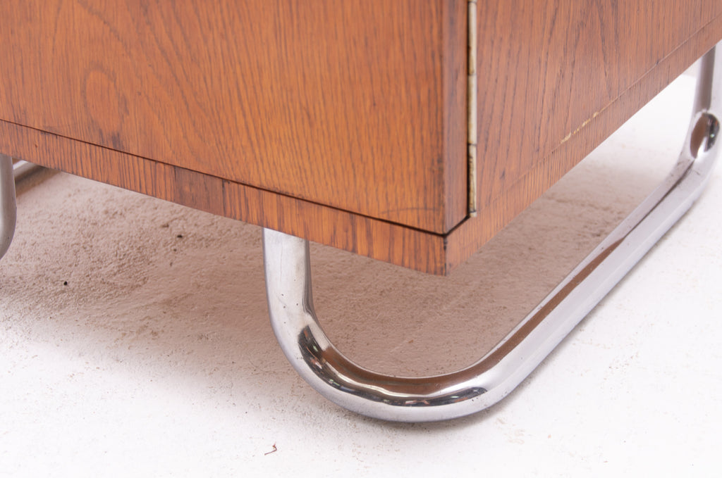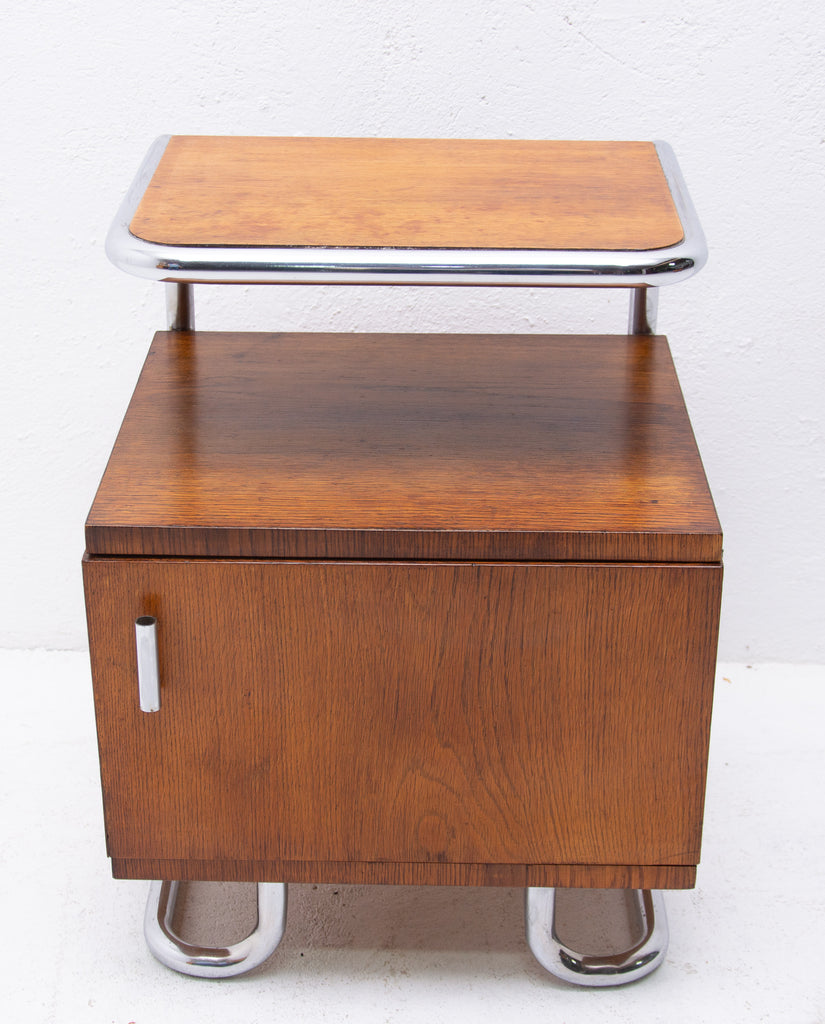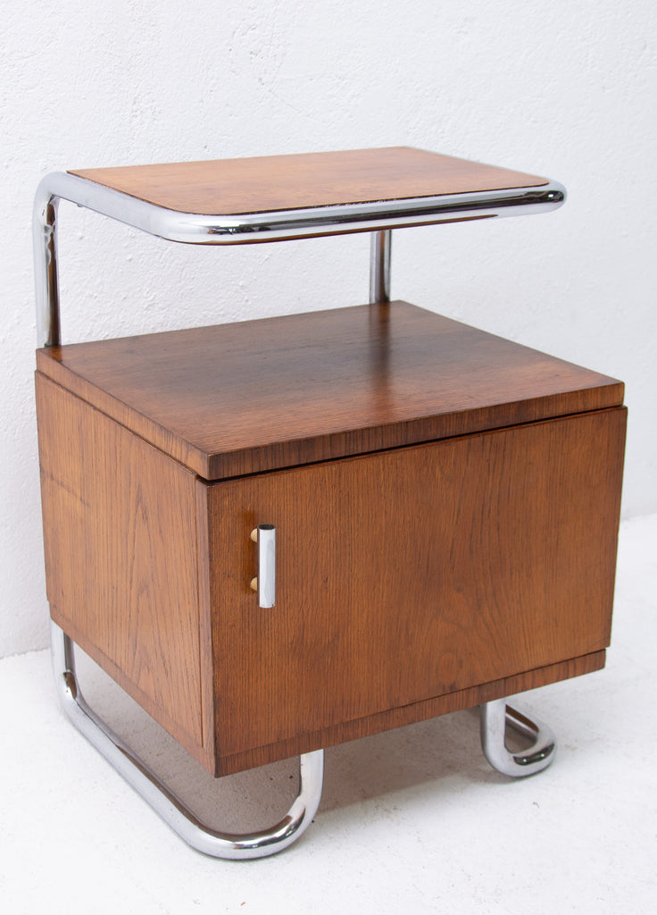 A typical example of the Bauhaus period in Central Europe. Chrome is in very good condition. Oak veneer. The stands are overall in very good Vintage condition, bears minor signs of age and using.