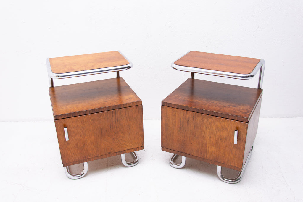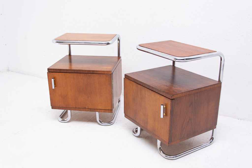 A pair of Modernist nightstands in the Bauhaus style. Outstanding timeless design. Made in the former Czechoslovakia. It was produced by Vichr & spol.