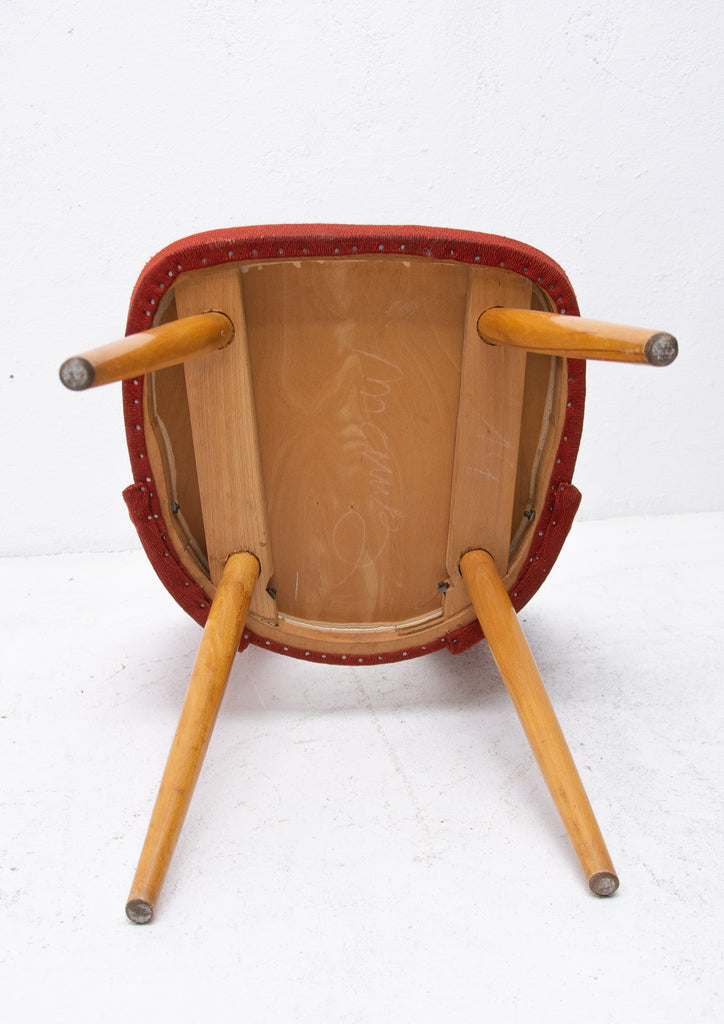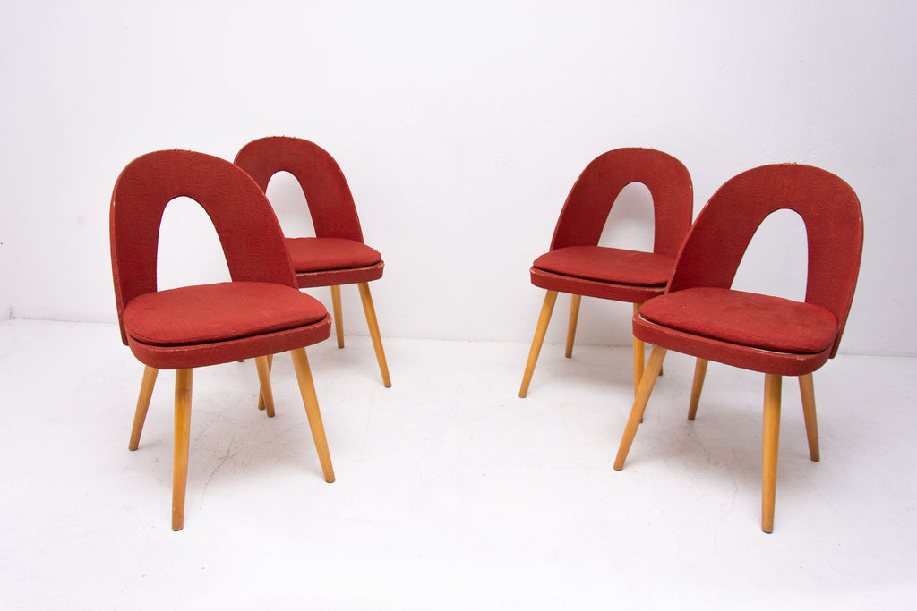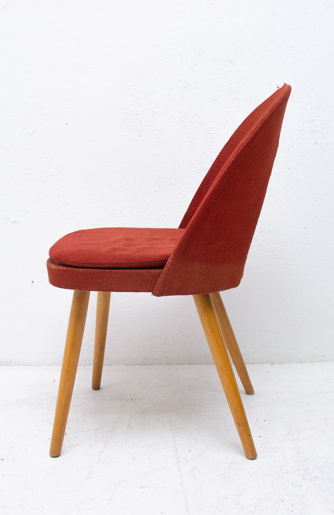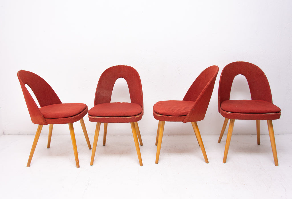 A set of mid century dining chairs by Antonín suman. Material: upholstery, bent plywood,beechwood. Made in Czechoslovakia in the 60´s. Manufactured in the period of world famous exhibition EXPO 58 in Brussels. Structurally are in very good condition,