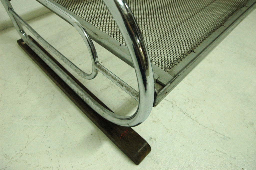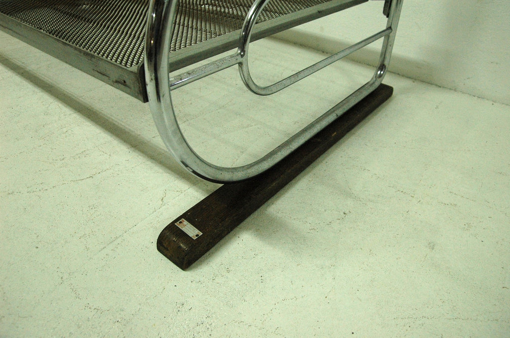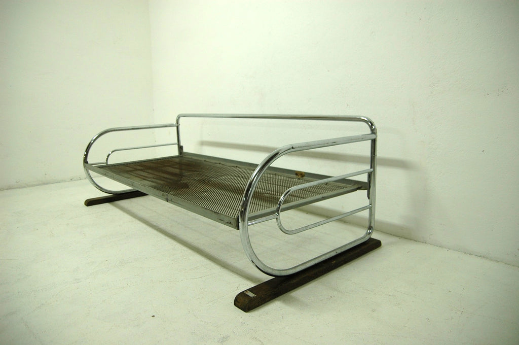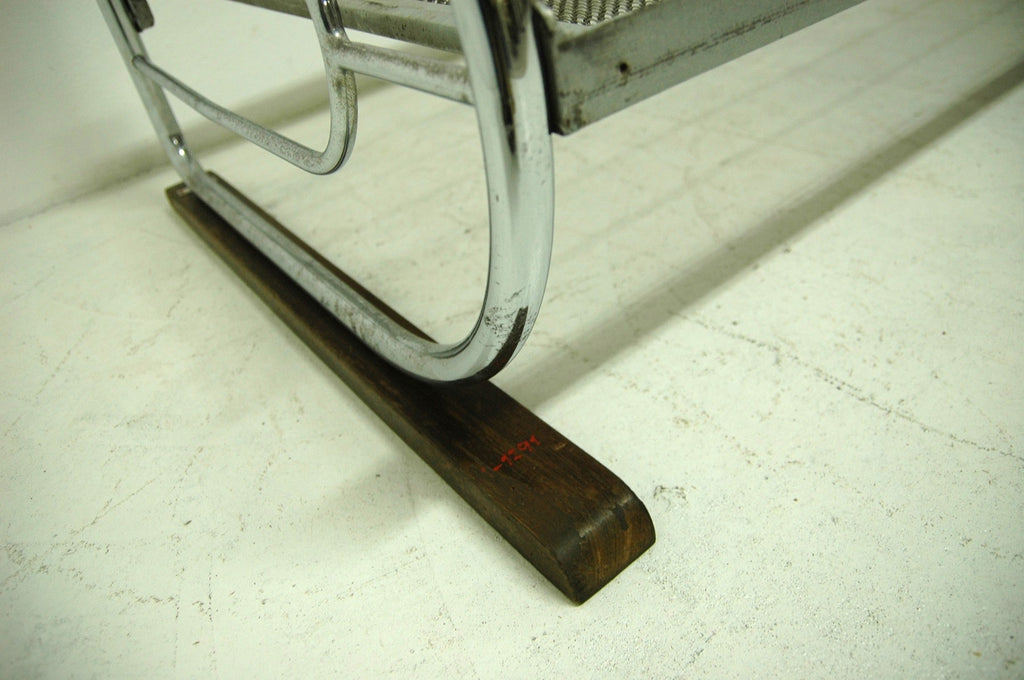 Chromed, tubular steel sofa from the Bauhaus period, 1930s, Bohemia. Made by Hynek Gottwald company. Chrome is in good Vintage condition, bears signs of aging and use, but overall in very good condition. It has two wooden legs in the shape of a ski.