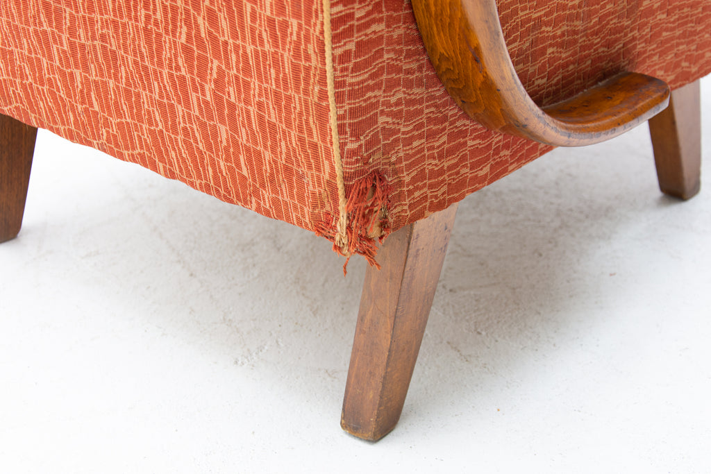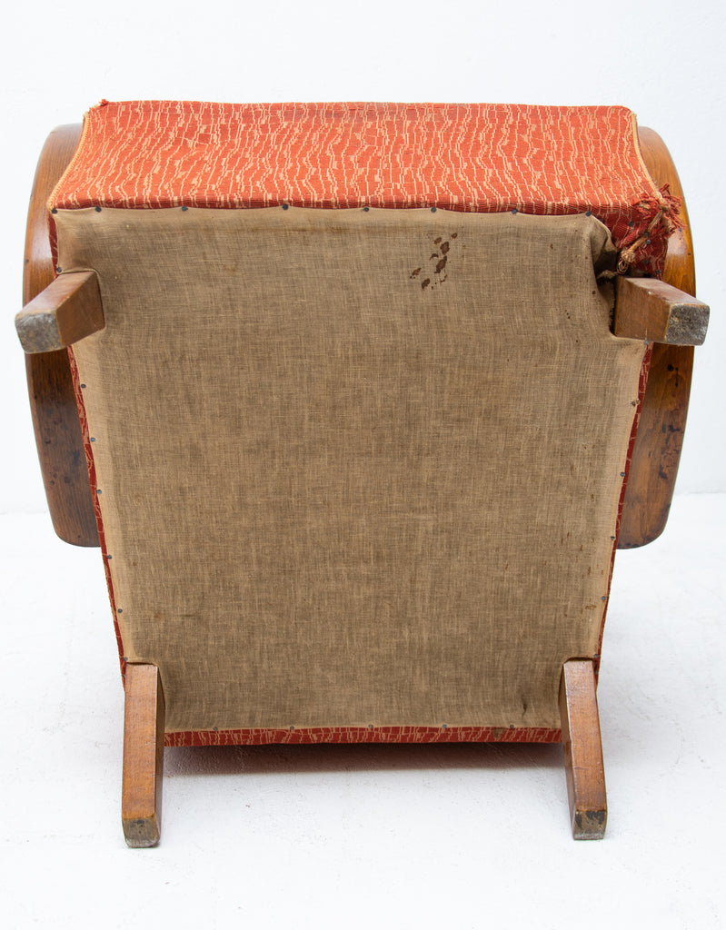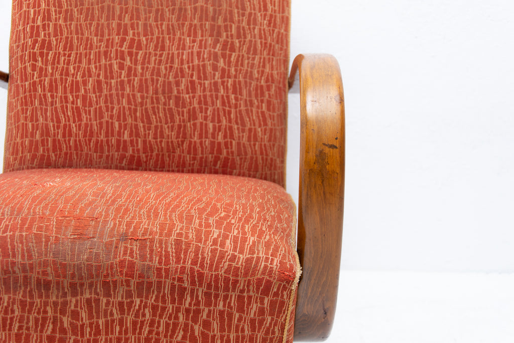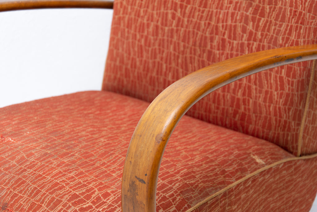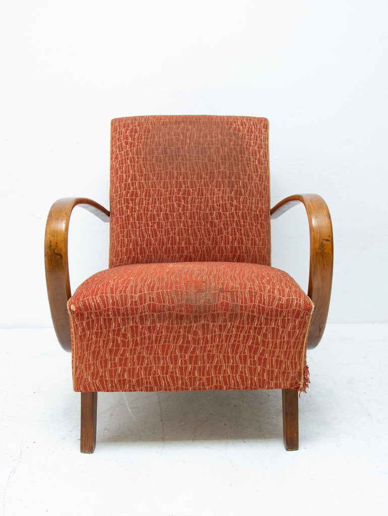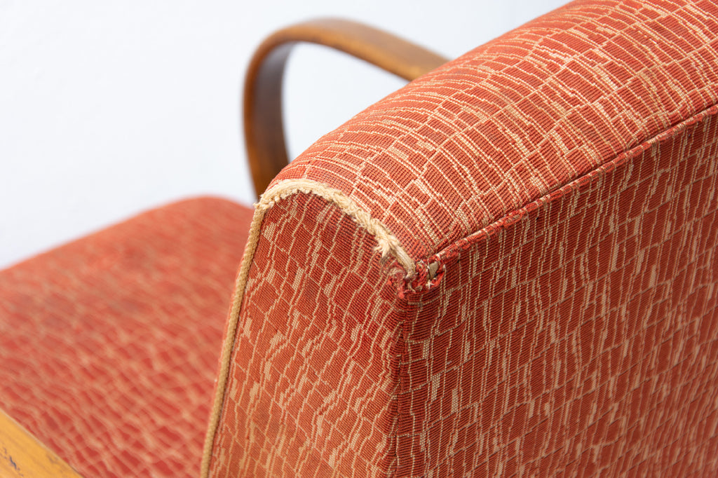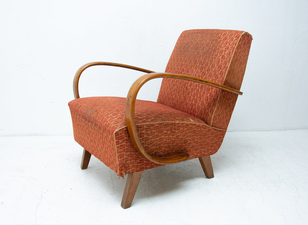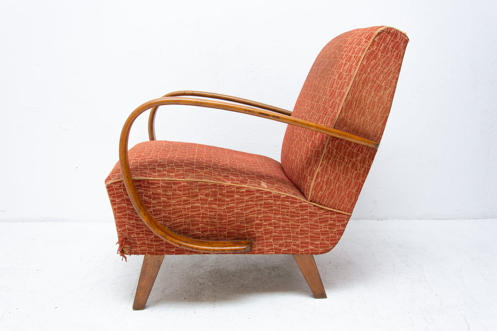 This pair of bentwood armchairs "C" was designed by Jindřich Halabala and were produced by UP Závody in the 1950´s. The chairs are structuraly in good Vintage condition, fabric bears signs of age and using and small damages in a few places. Price is for the pair.