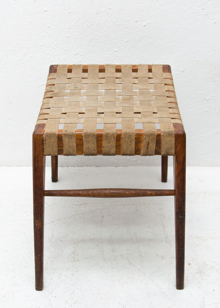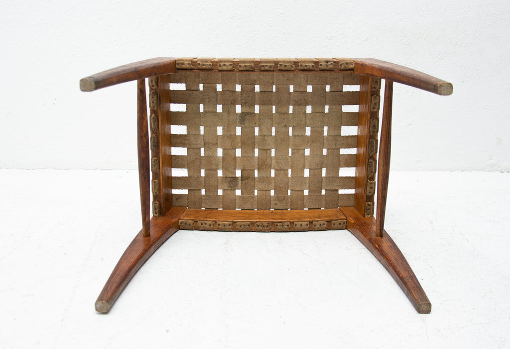 This Vintage stool/footrest was designed by the famous Czechoslovak architect Jan Vaněk for Krásná Jizba company. It was produced in the 1950´s. It features an unconventional design, irregular shaping. It was made of dark stained beech wood. Wood and strips are in good Vintage condition, bearing signs of age and wear.