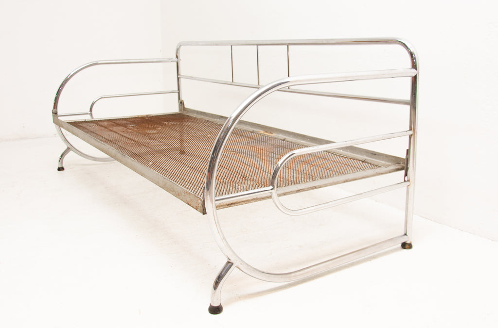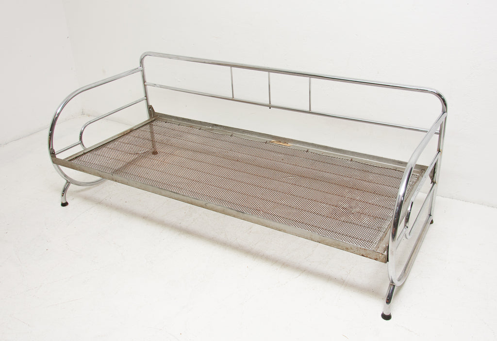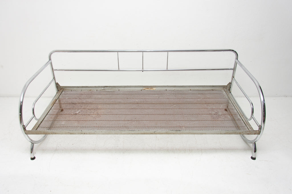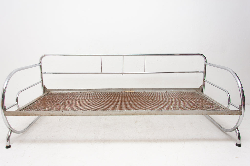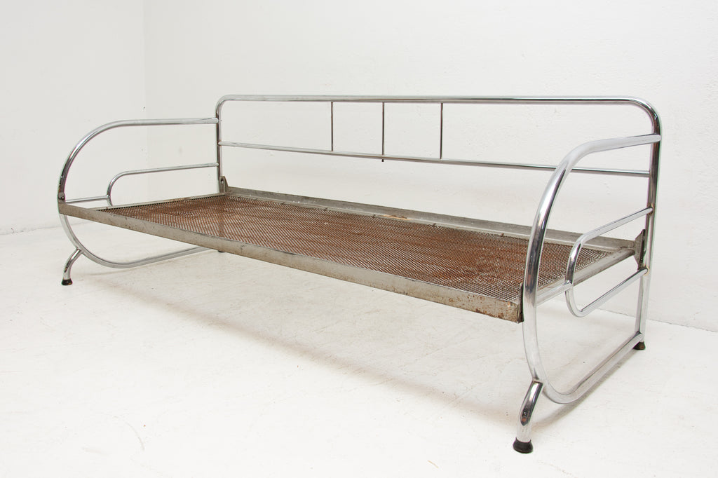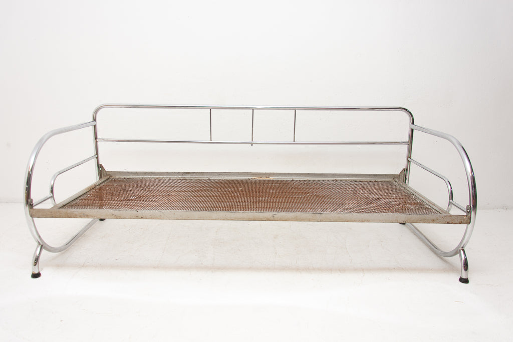 Chromed, tubular steel sofa from the Bauhaus period, 1930s, Bohemia. It was made by Robert Slezák company. Chrome is in very good Vintage condition without damage and rust. Wear consistent with age and use
