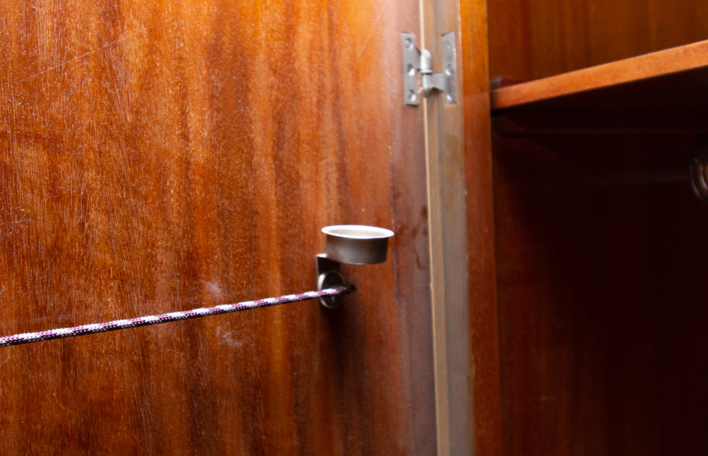 The furniture has a nice patina. It is in good original condition, showing signs of use and age. The cabinets are fully functional.