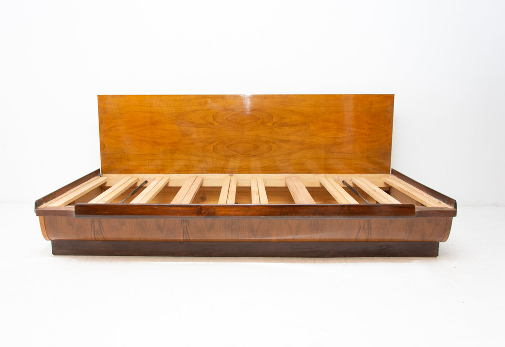 Mid century sofabed in walnut by Jindrich Halabala for UP Zavody, 1950s