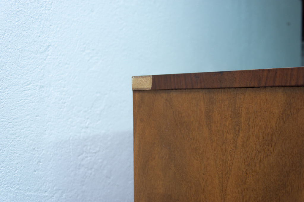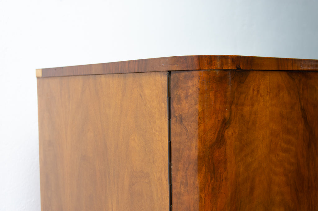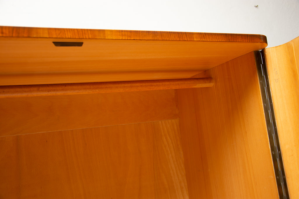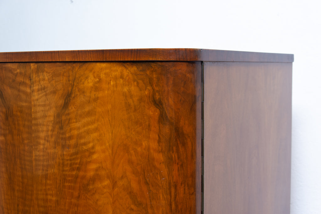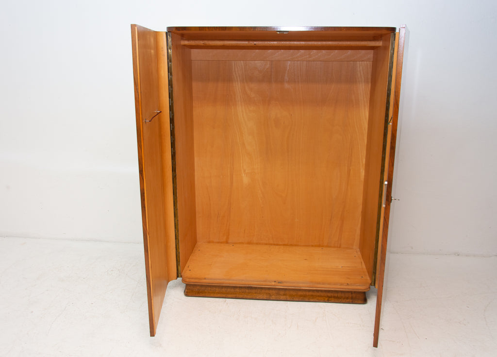 Vintage Czechoslovak modernist Wardrobe, made in Czechoslovakia in the 1950´s. It is made of walnut wood and plywood. This item is in very good Vintage condition, with only slight signs of age and using, a small chip of veneer on the back of the cabinet, you can see in the photos.