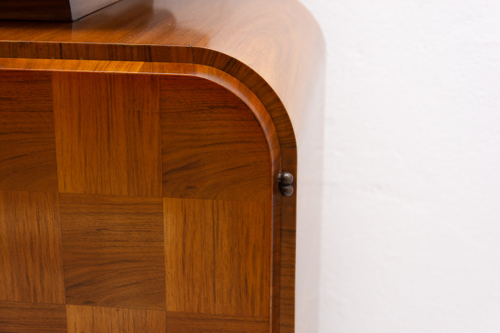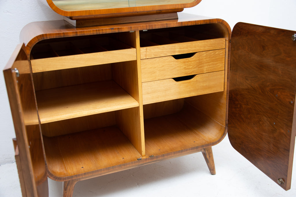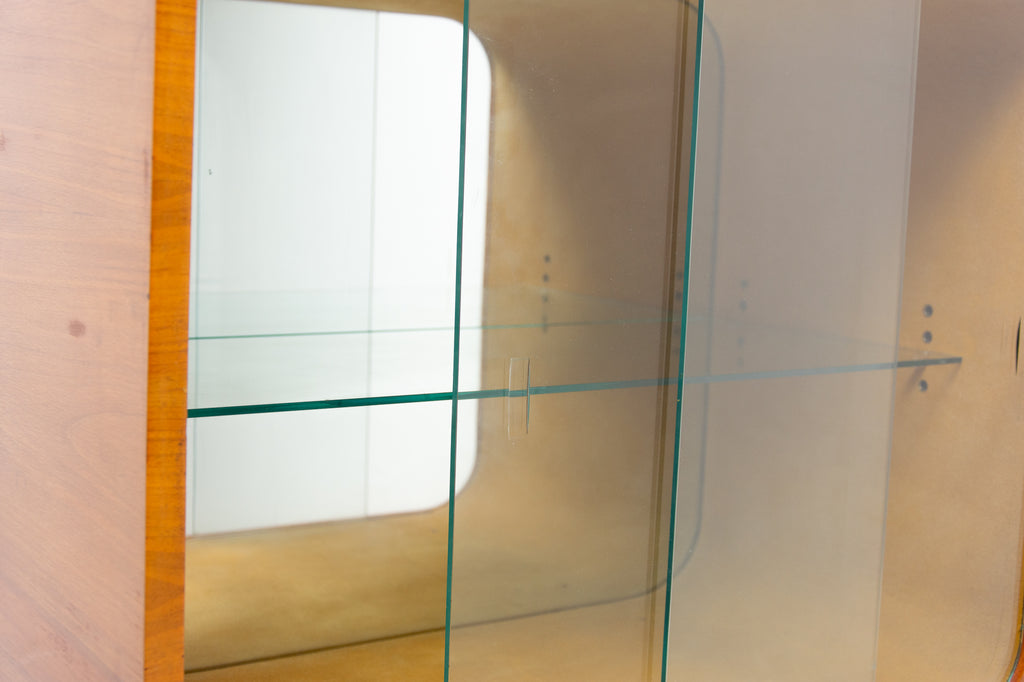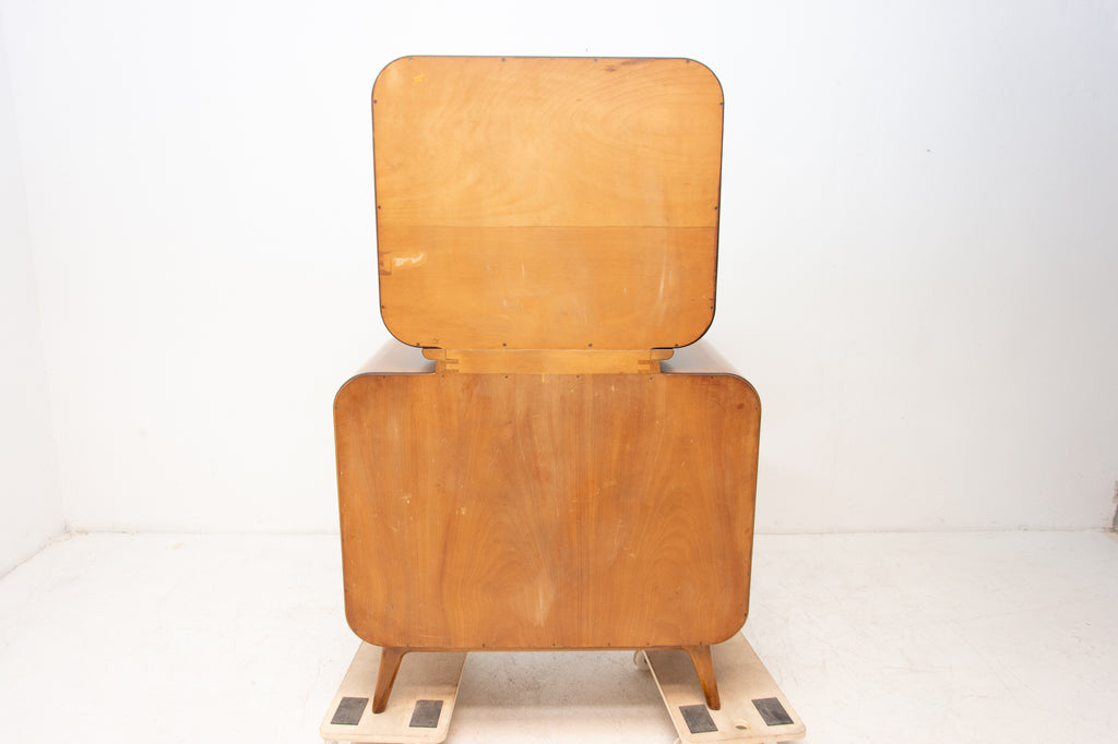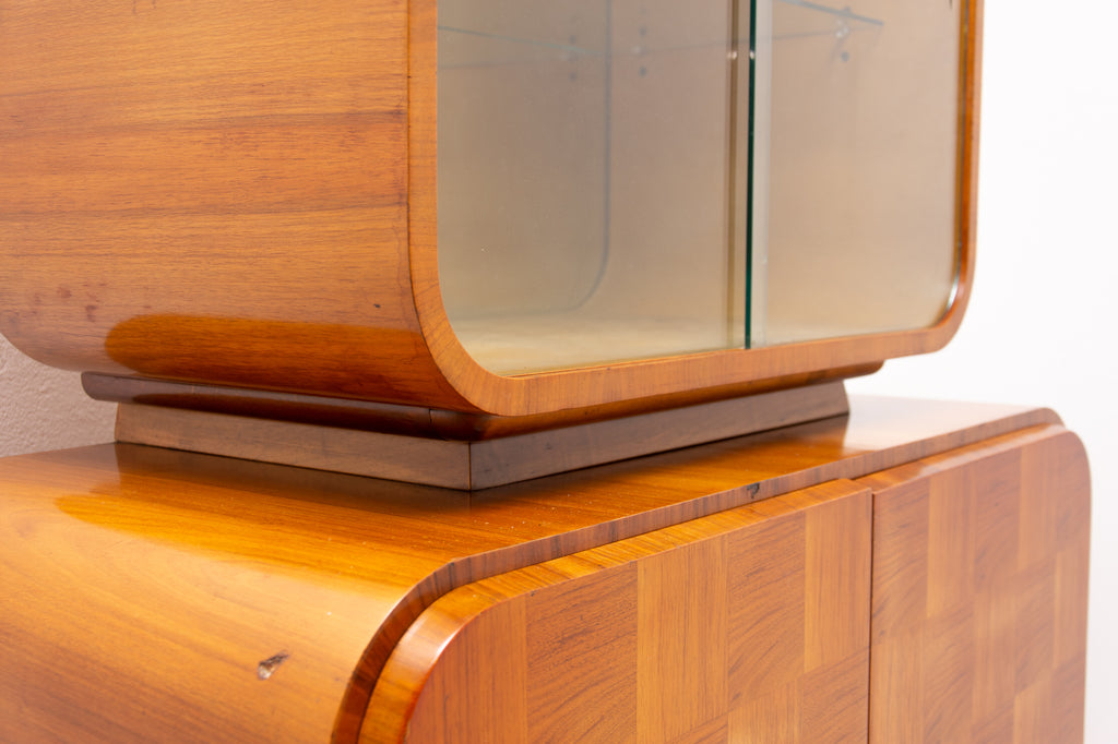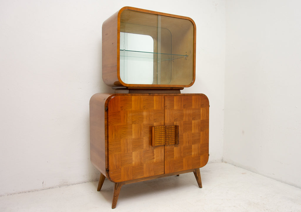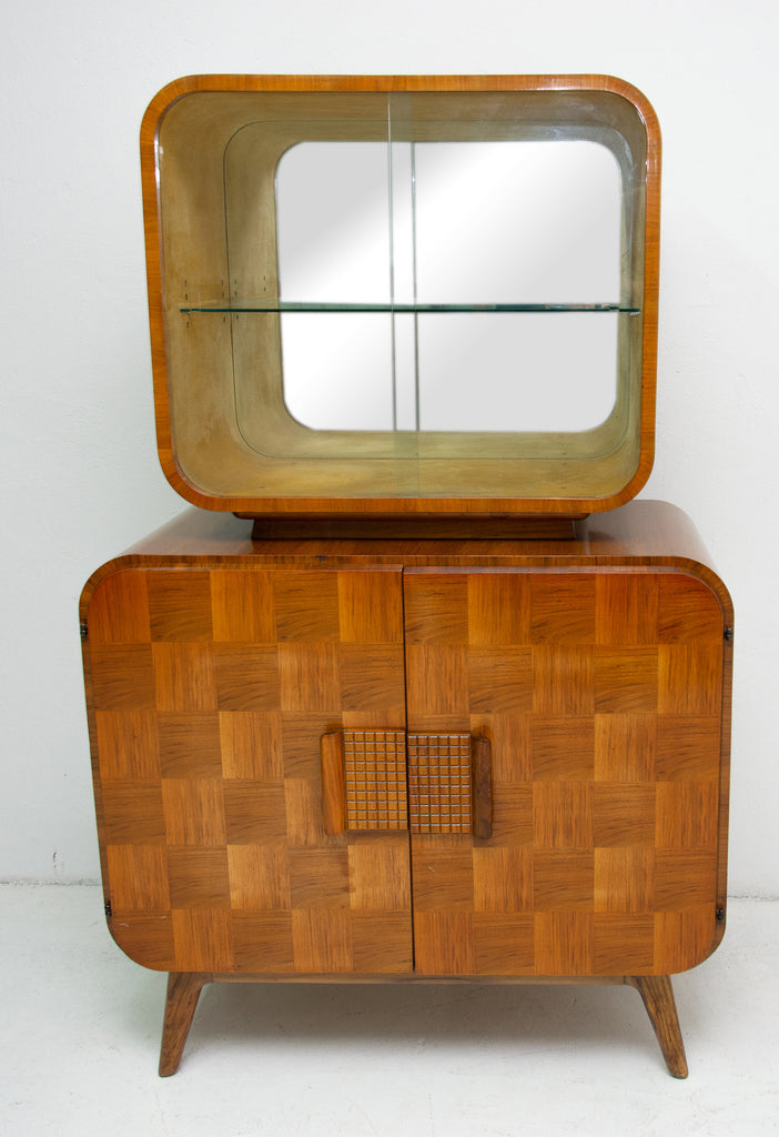 This mid-century display case called "Television" was designed by world-renowned Czechoslovak architect Jindřich Halabala in 1947 and it was manufactured in UP závody Brno in a limited edition for only two years since 1946.