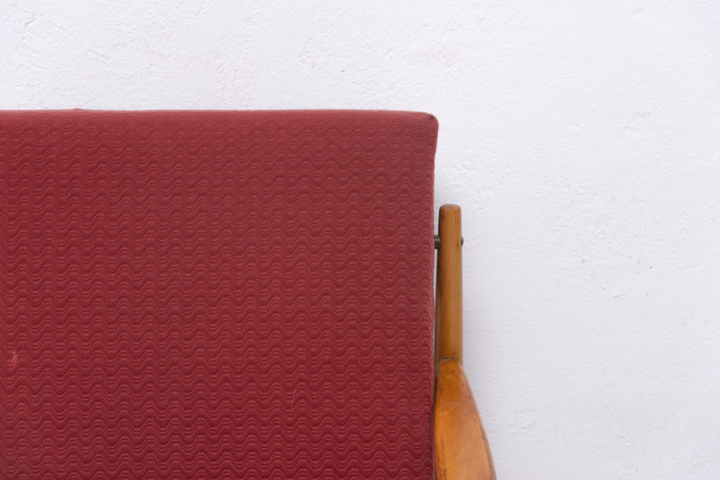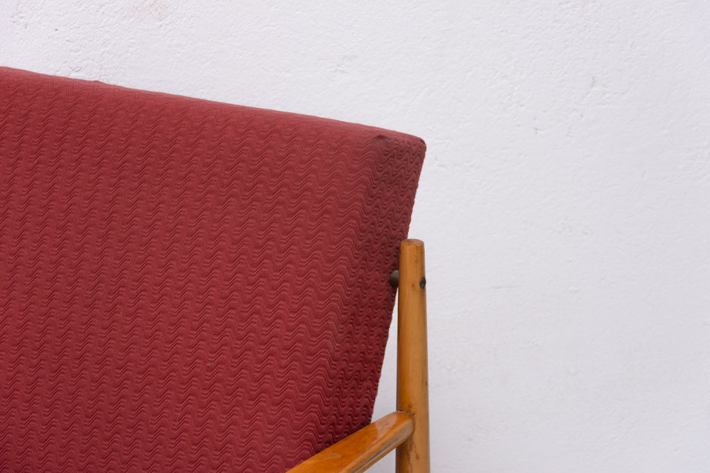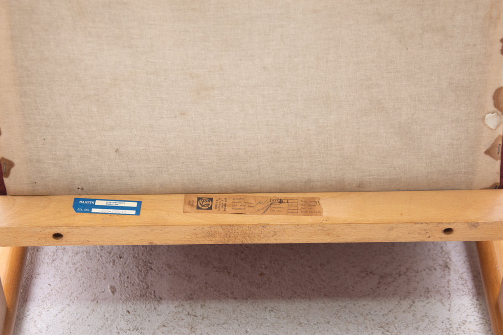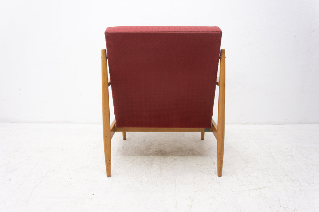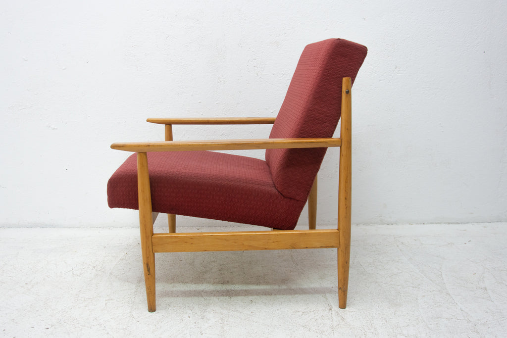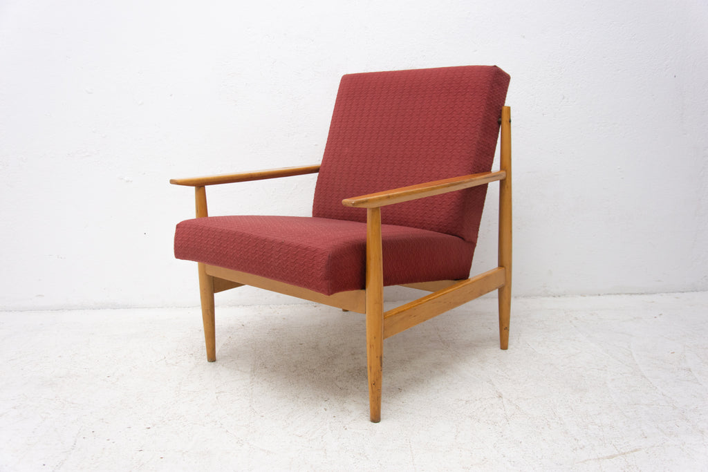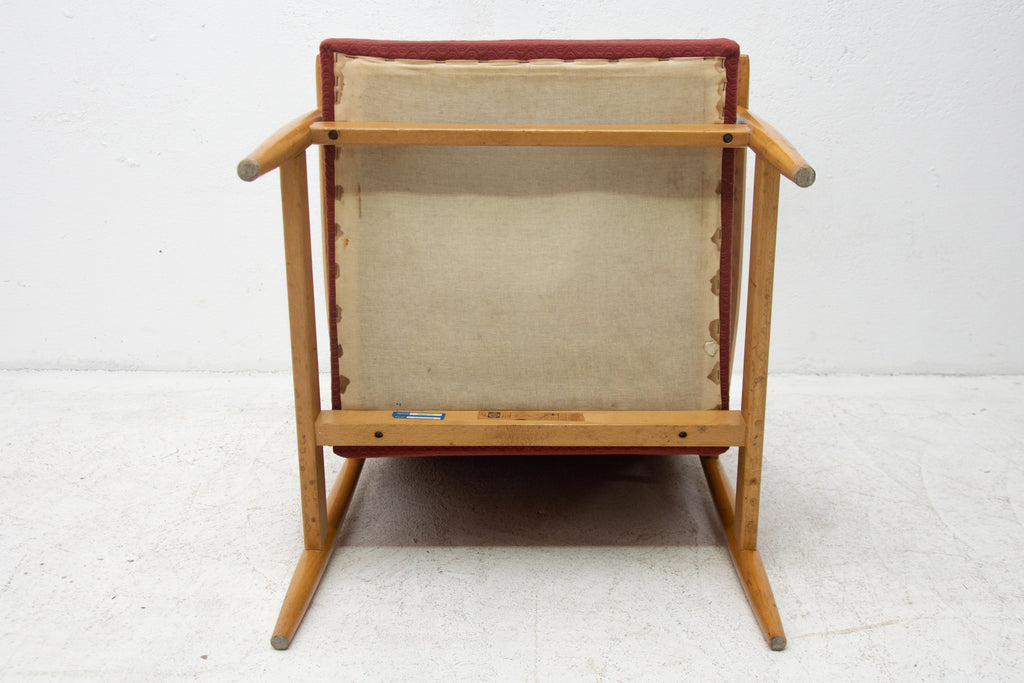 A pair of mid century armchairs in Scandinavian style, made in the former Czechoslovakia by TON company in the 1970´s. It has a beechwood structure and original upholstery in good Vintage condition. The chairs are fully functional, showing signs of age and using. Overall in very good condition. Price is for the pair