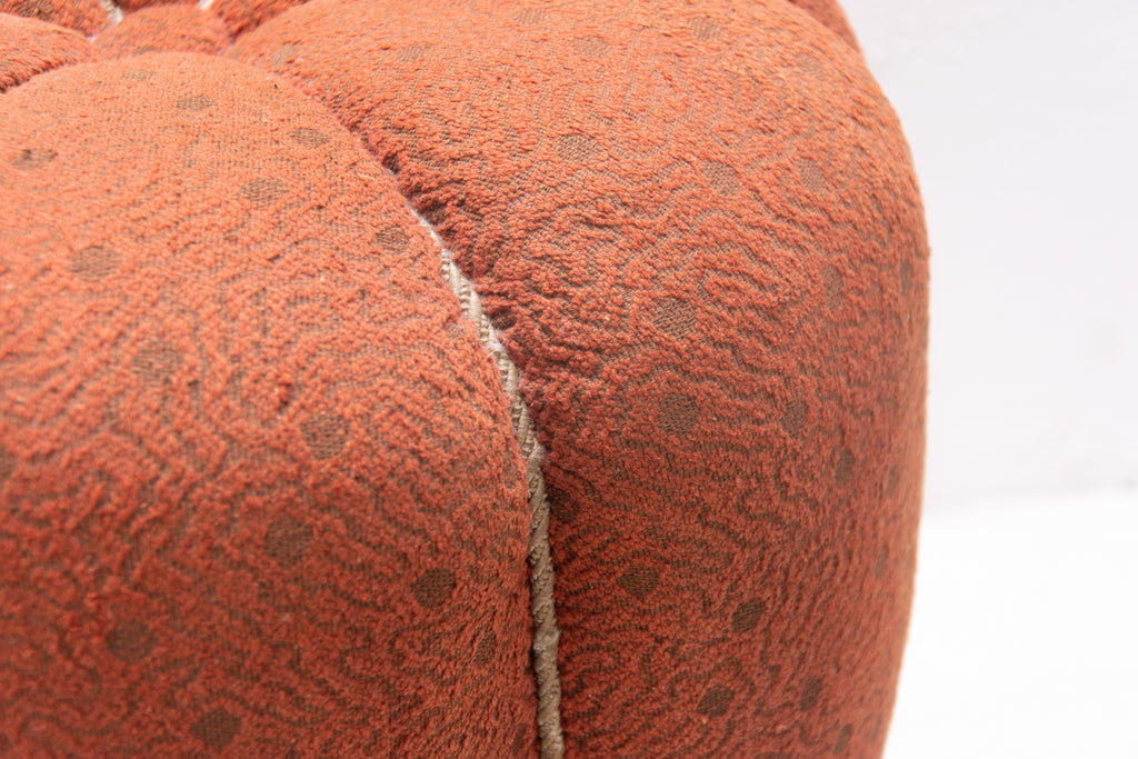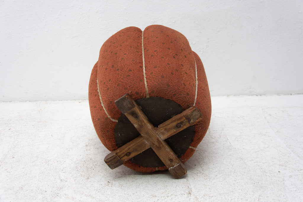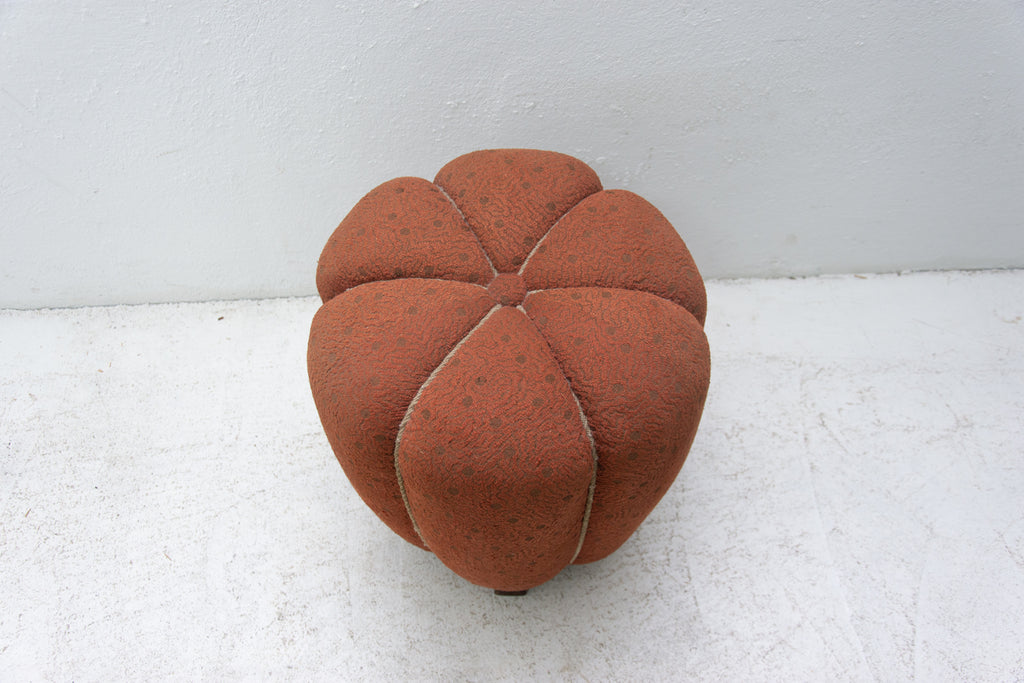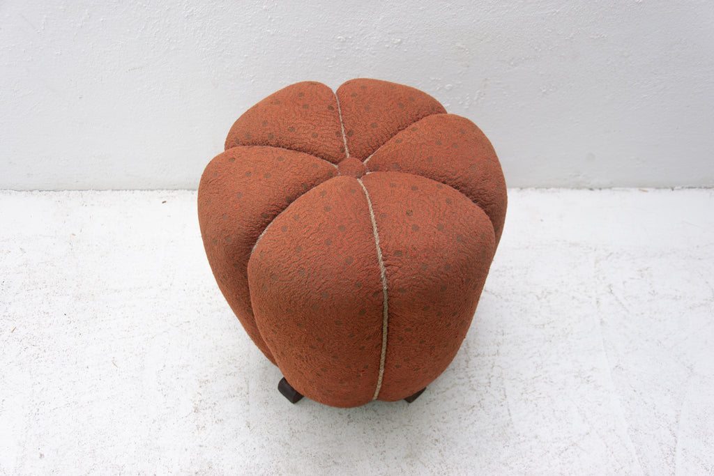 This pouffe(footstool) was designed by Jindřich Halabala and produced by UP Závody in the 1950´s. Very comfortable retro chic in the shape of a raspberry. The upholstery is in good condition, shows signs of age and using.