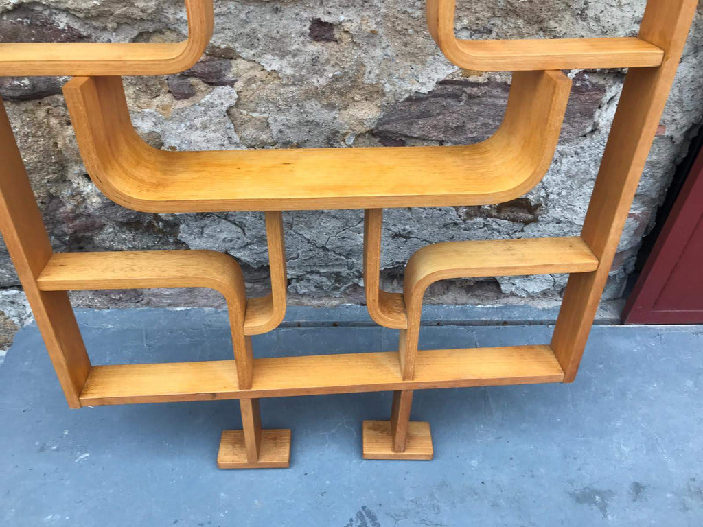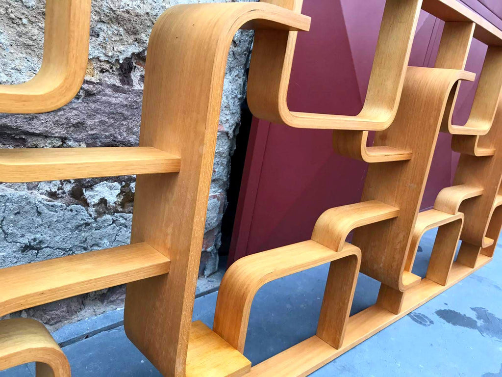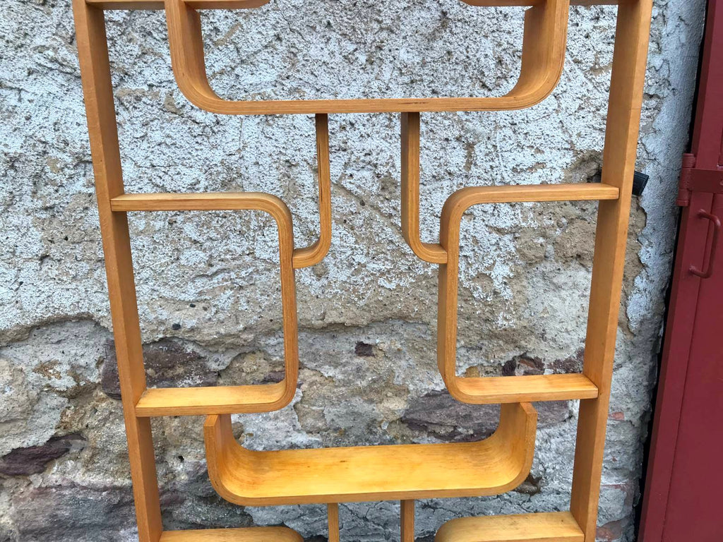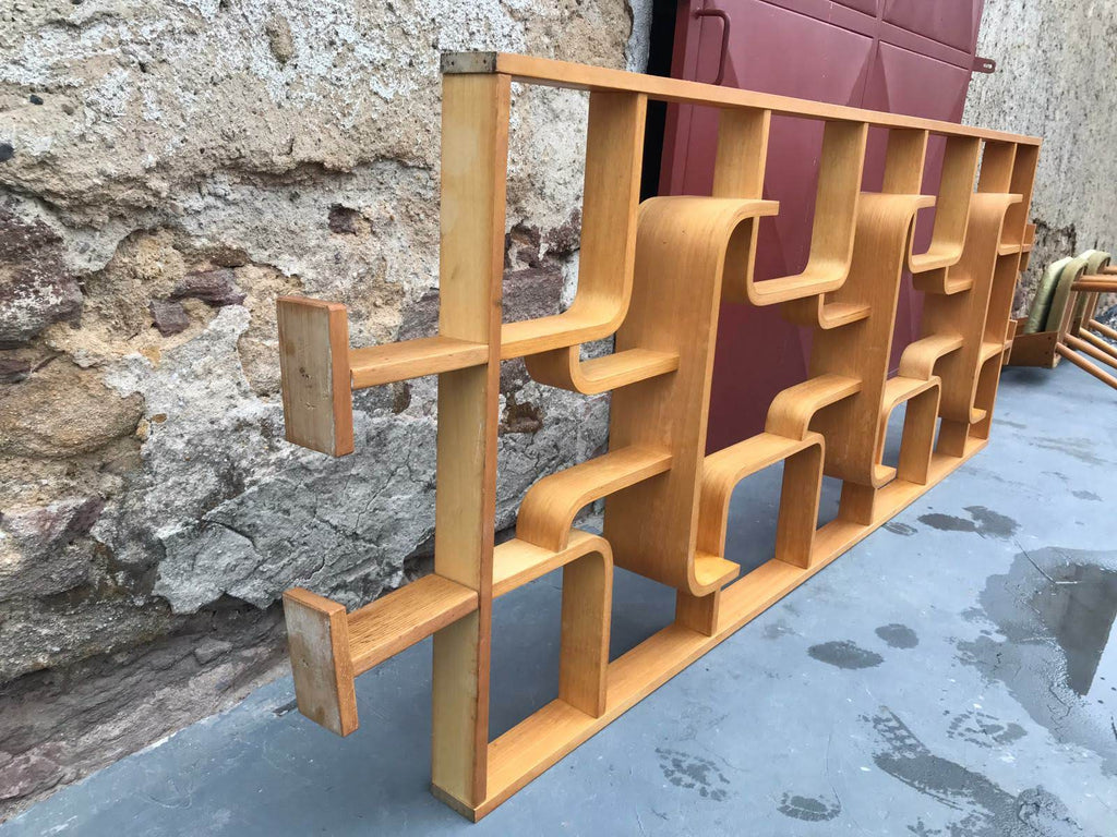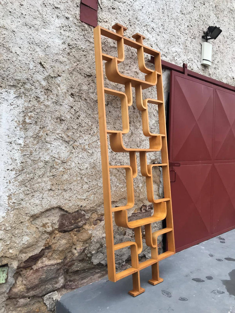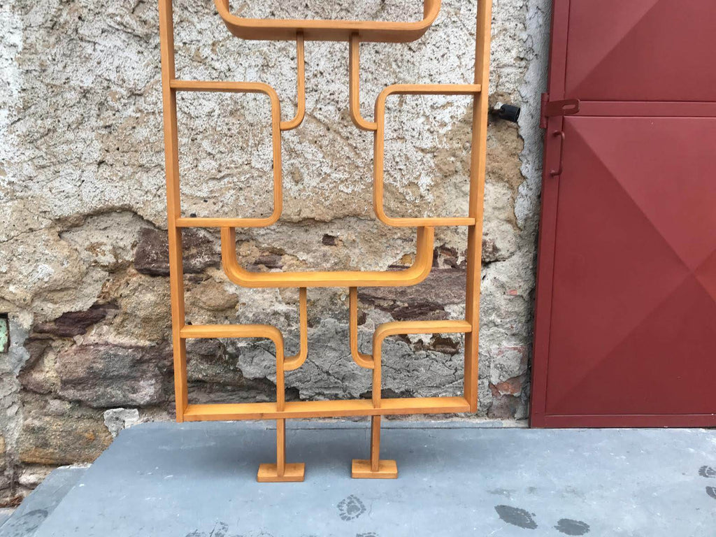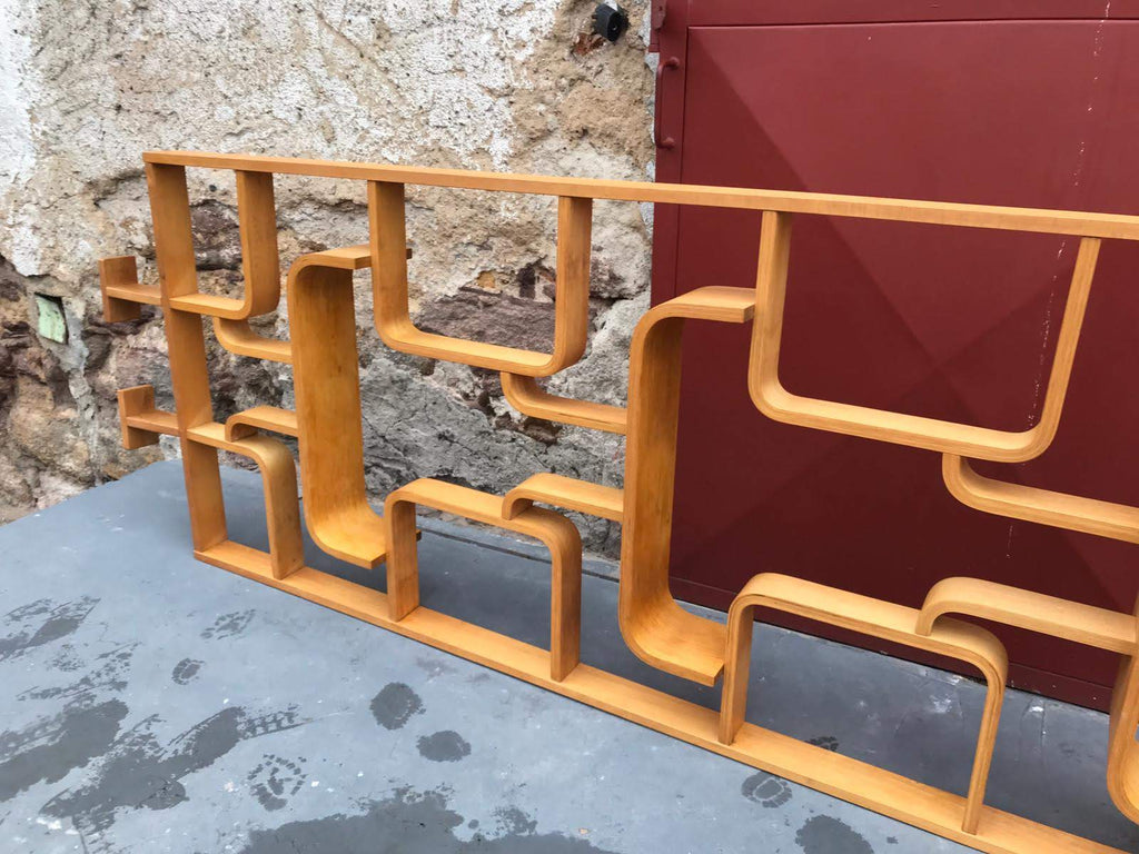 This room/wall divider was designed by the Czech architect Ludvik Volak and produced by Drevopodnik Holesov in the former Czechoslovakia in the 1960s. It features an ash veneered bent plywood structure with removable legs. The height without legs measures 225 cm and 255 cm with legs. It is in very good original condition.
