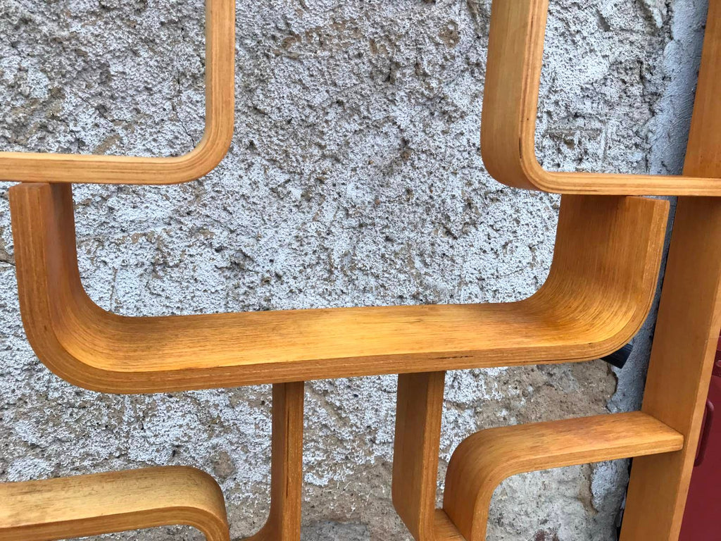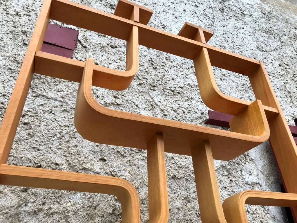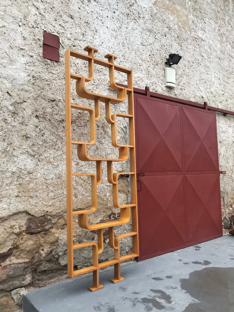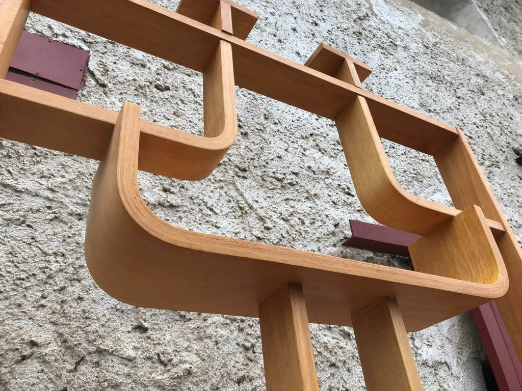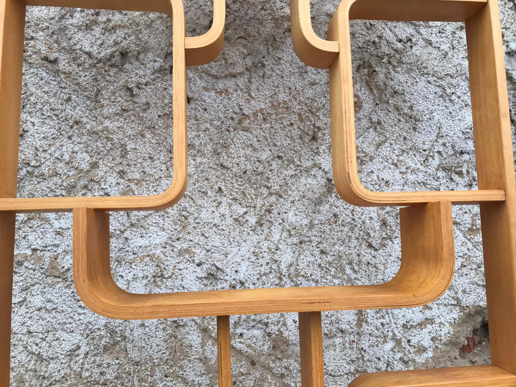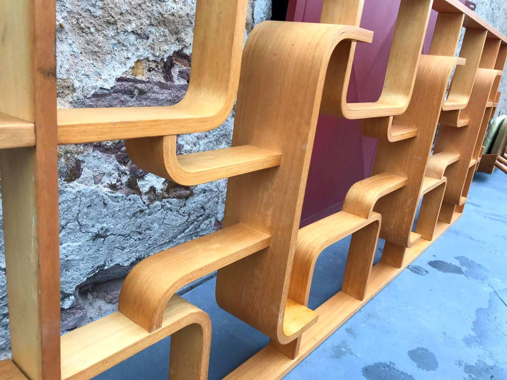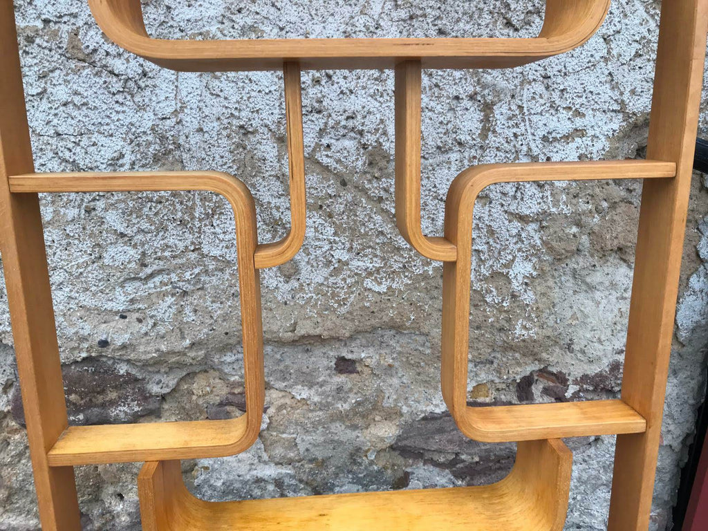 This room/wall divider was designed by the Czech architect Ludvik Volak and produced by Drevopodnik Holesov in the former Czechoslovakia in the 1960s. It features an ash veneered bent plywood structure with removable legs. The height without legs measures 225 cm and 255 cm with legs. It is in very good original condition.