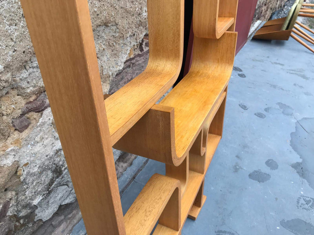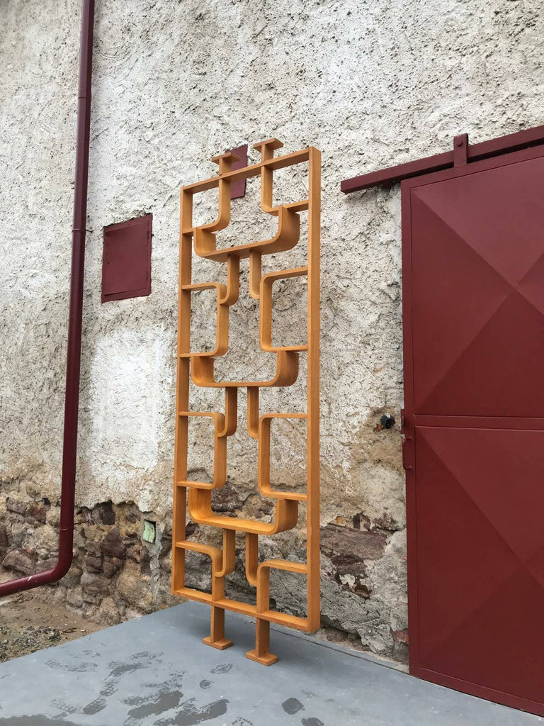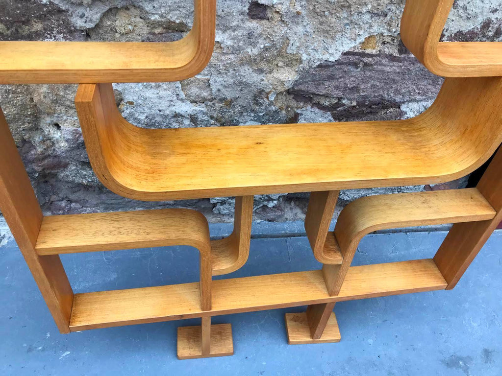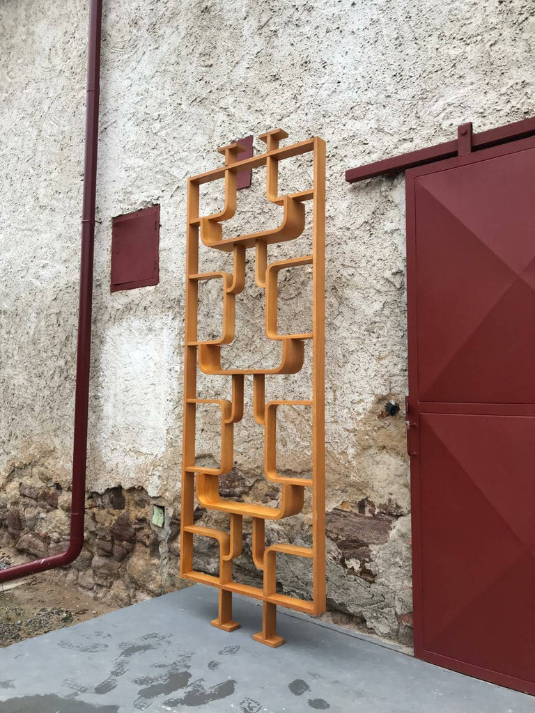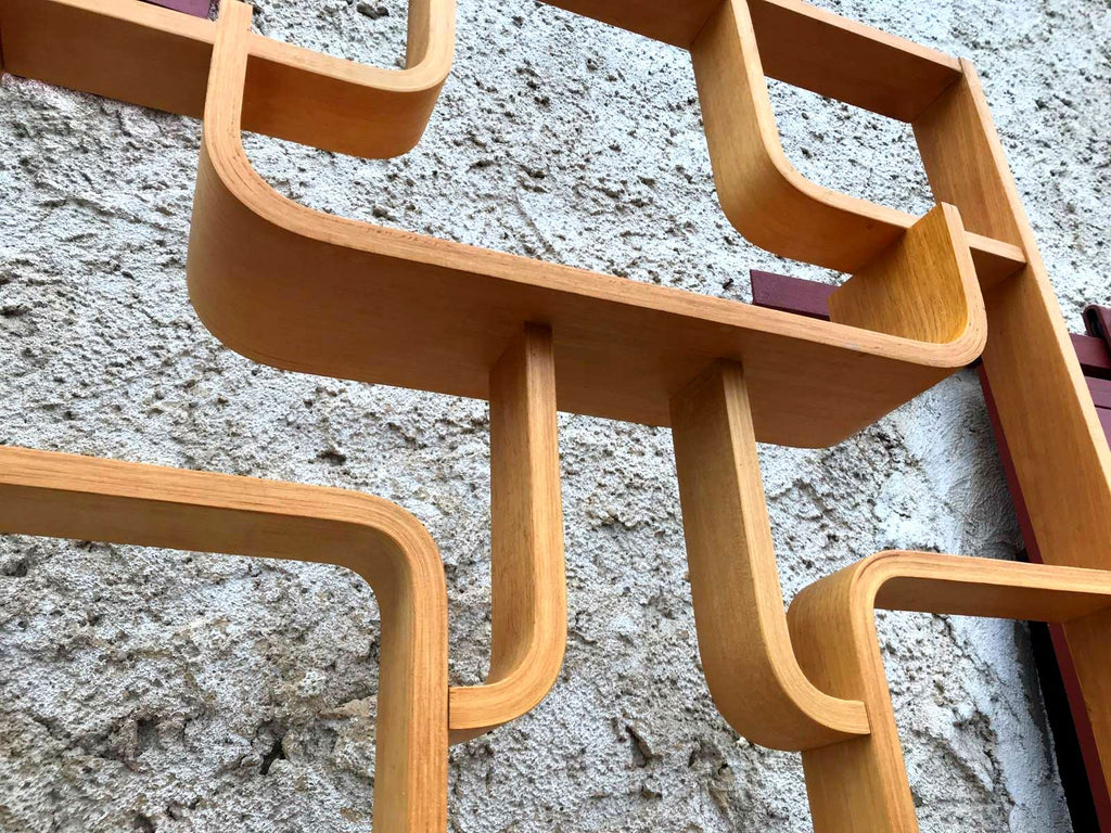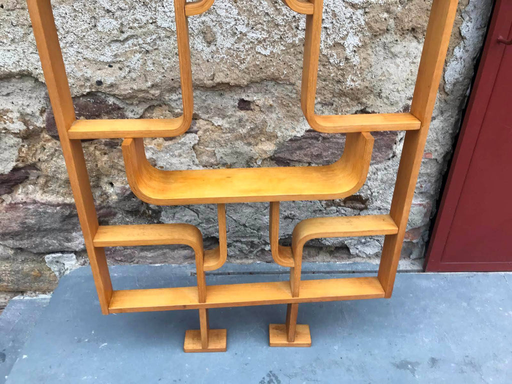This room/wall divider was designed by the Czech architect Ludvik Volak and produced by Drevopodnik Holesov in the former Czechoslovakia in the 1960s. It features an ash veneered bent plywood structure with removable legs. The height without legs measures 225 cm and 255 cm with legs. It is in very good original condition.