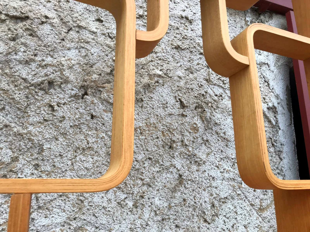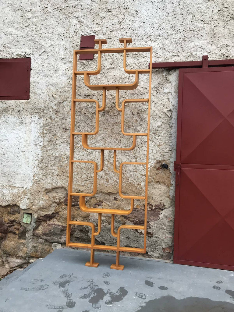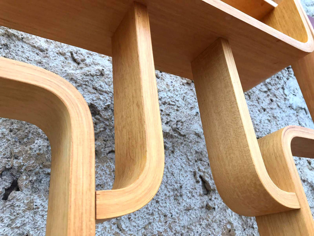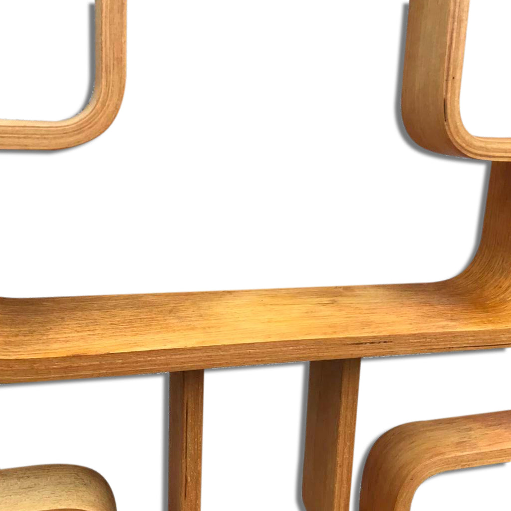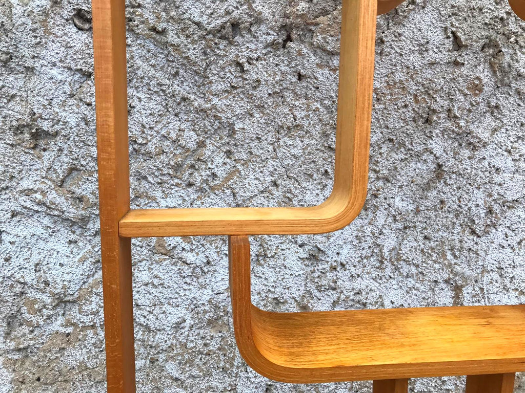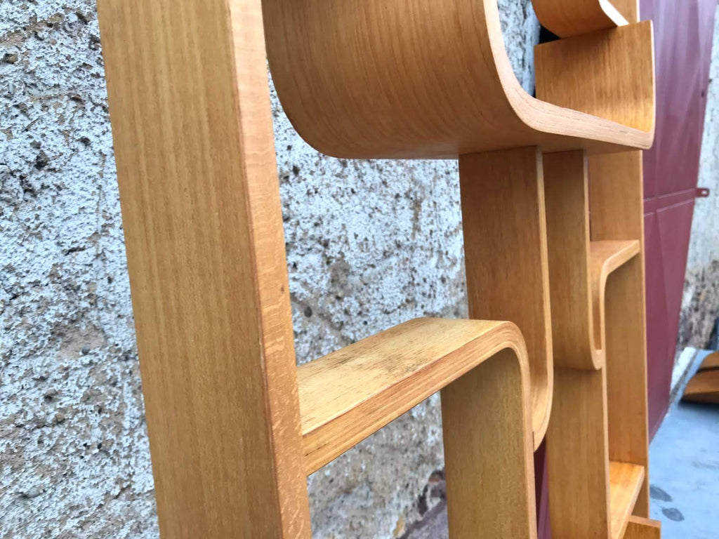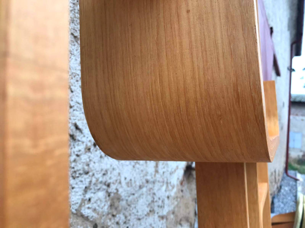 This room/wall divider was designed by the Czech architect Ludvik Volak and produced by Drevopodnik Holesov in the former Czechoslovakia in the 1960s. It features an ash veneered bent plywood structure with removable legs. The height without legs measures 225 cm and 255 cm with legs. It is in very good original condition.