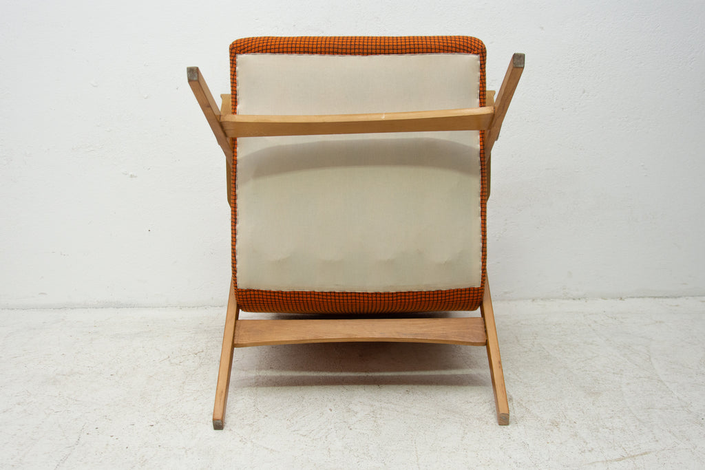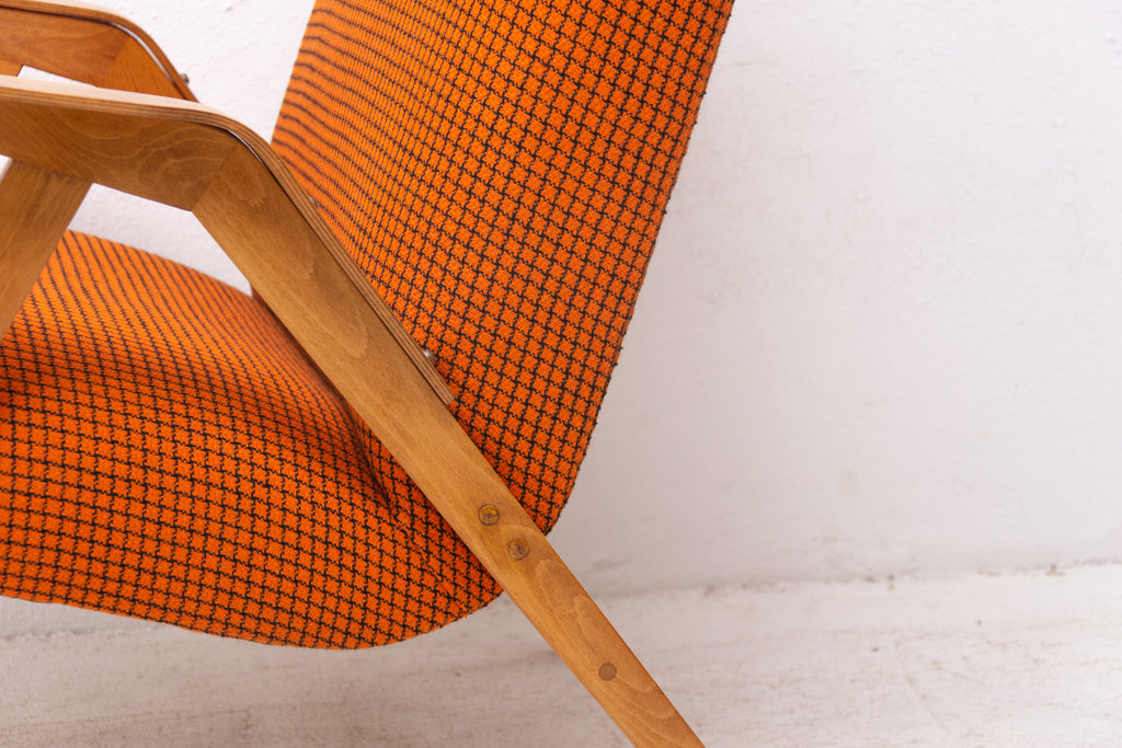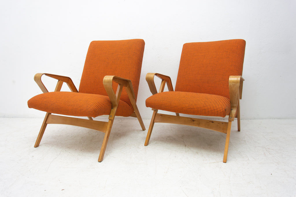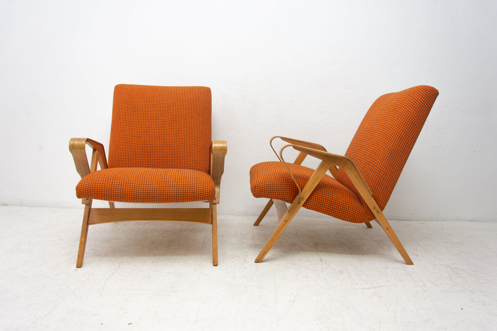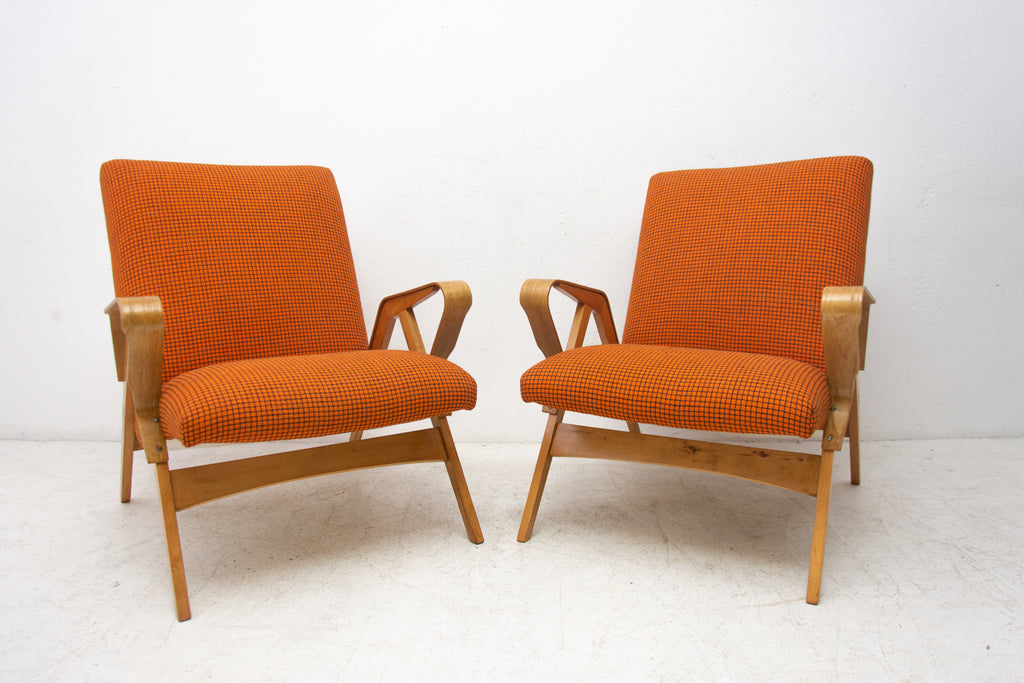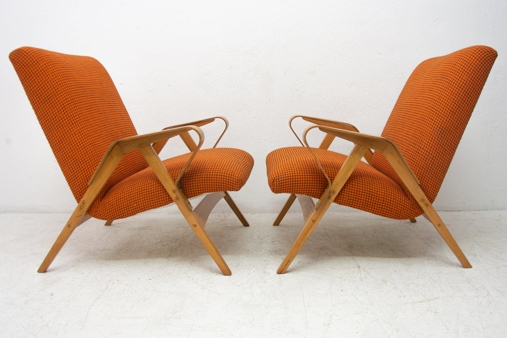These Czechoslovak lounge armchairs No.24-23 were designed by Frantisek Jirák for Tatra Nabytok in the former Czechoslovakia in the 1960´s. The design of these chairs followed the huge success of the Czechoslovak pavilion at the Brussels Expo 58.