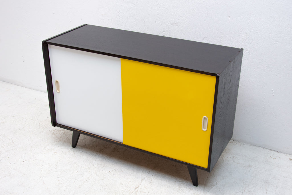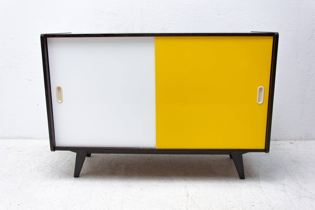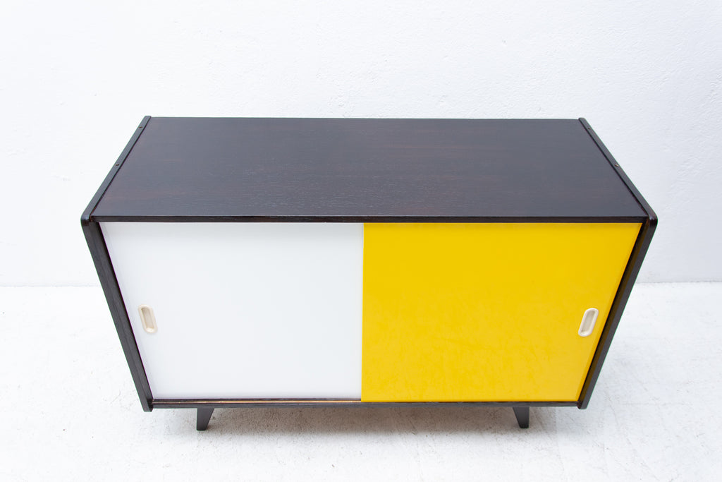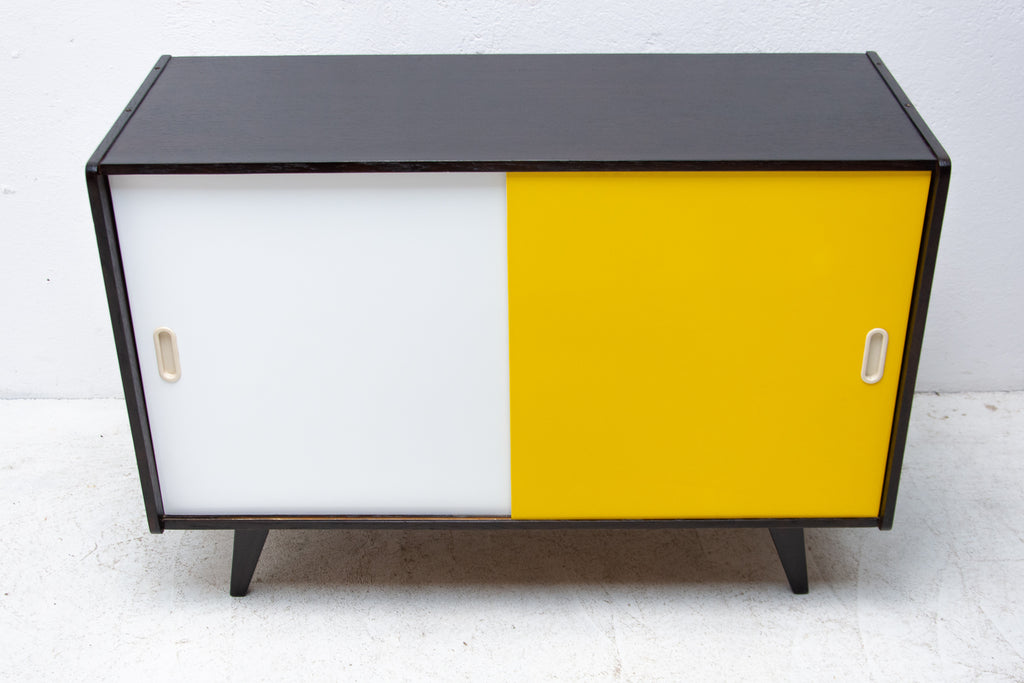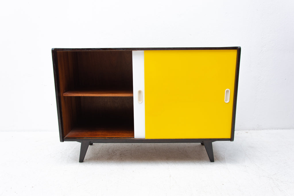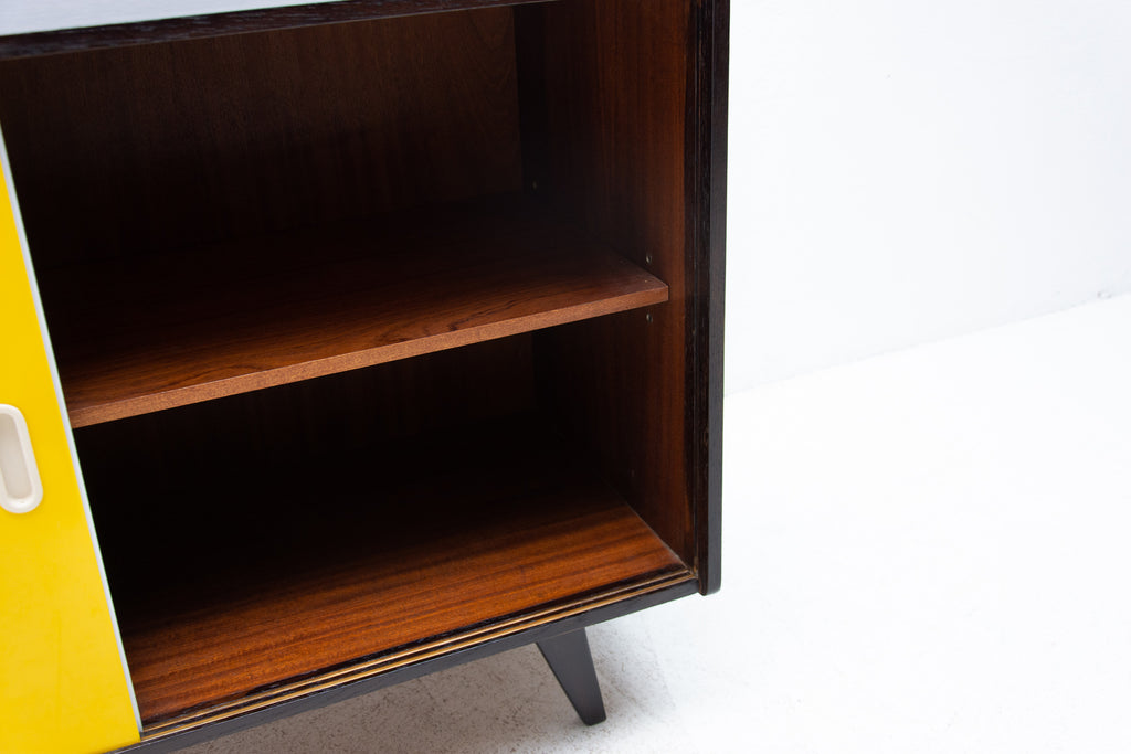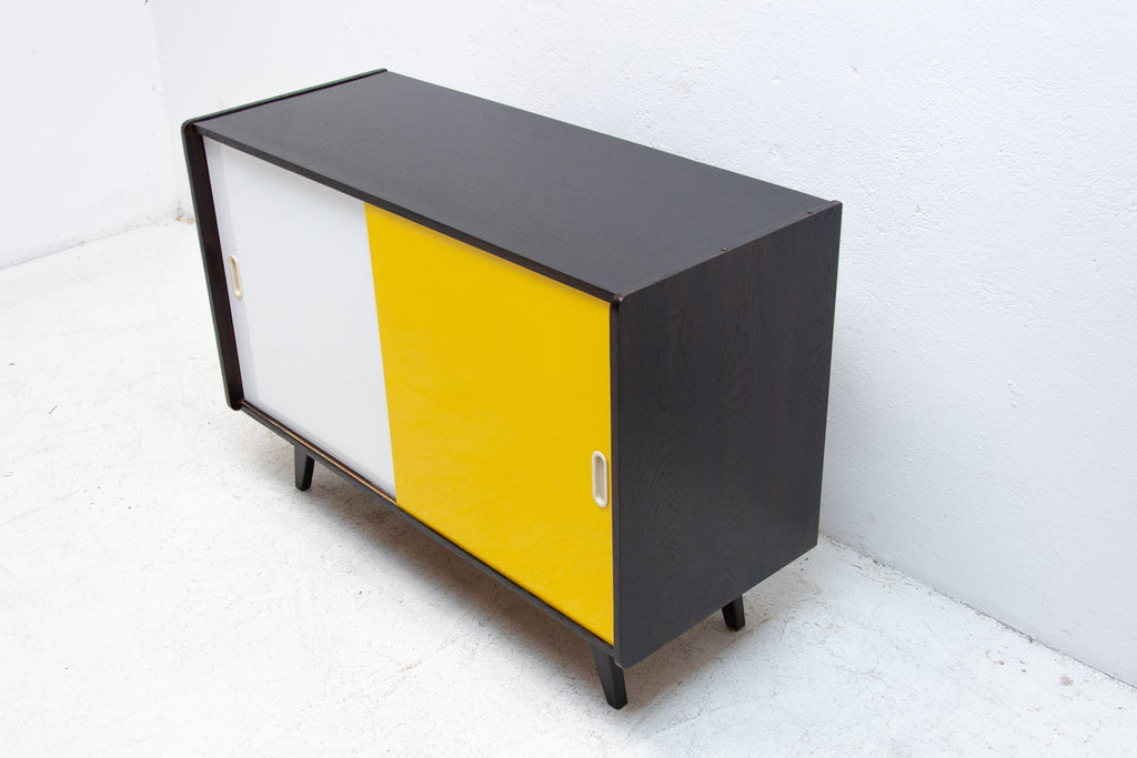 Mid century sideboard-cabinet with sliding doors, catalogue No. U-452, designed by Jiri Jiroutek. It´s made of beechwood, veneer, plywood and laminate. In excellent condition, fully refurbished.