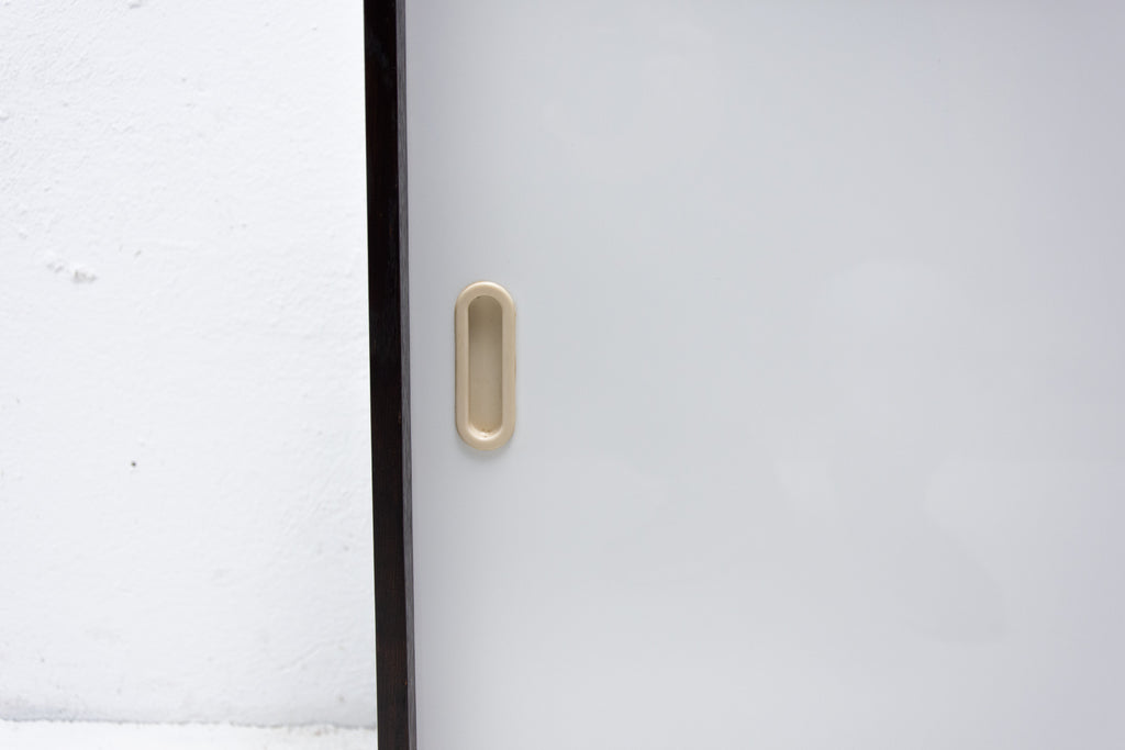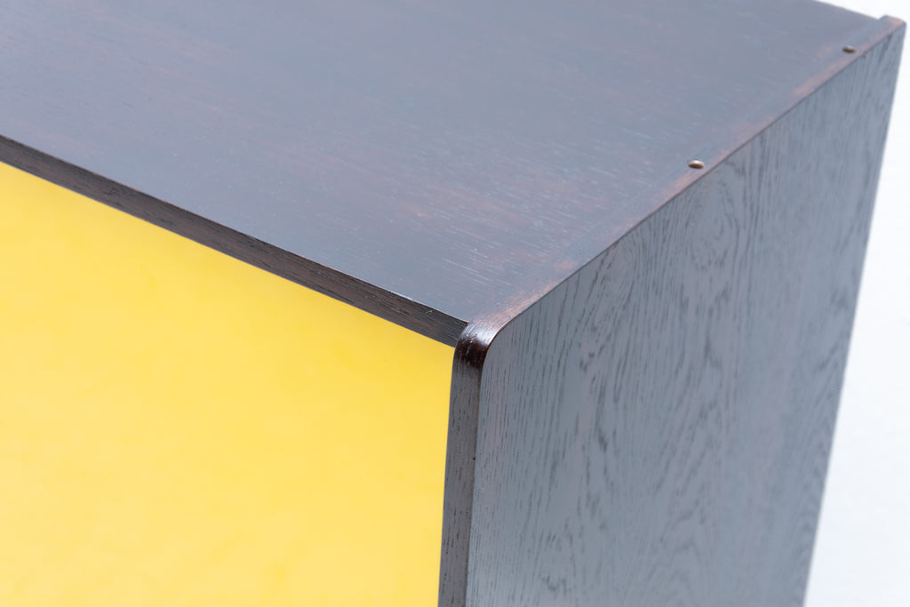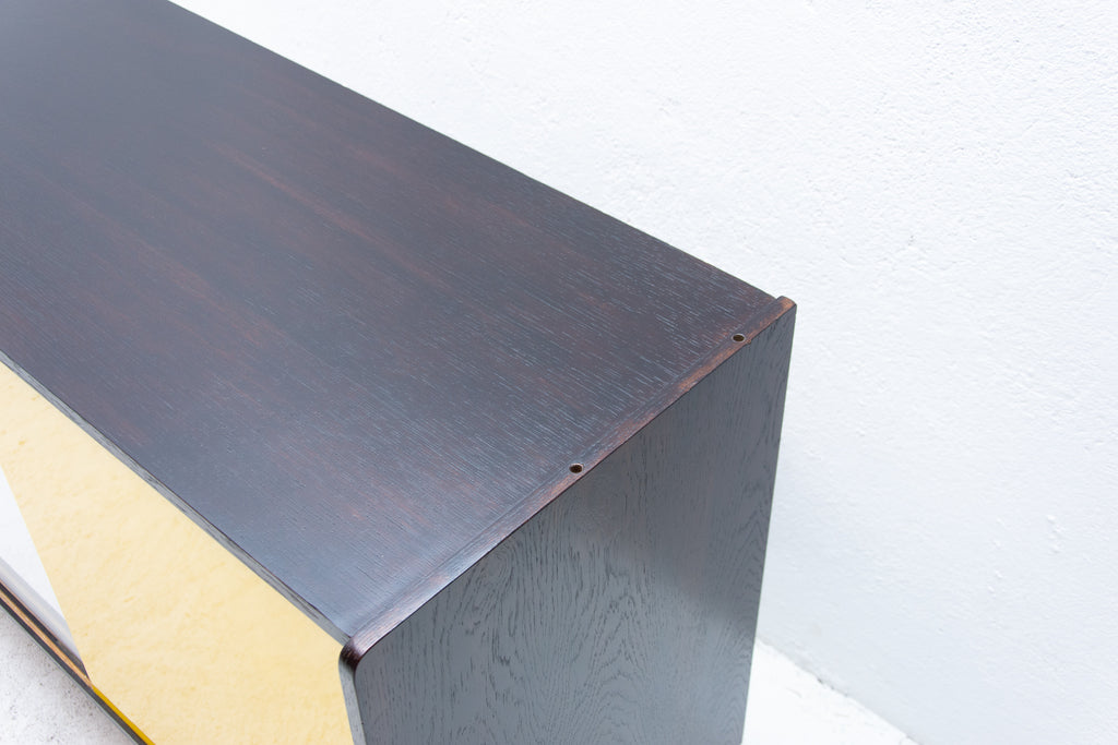 The cabinet comes from the famous Universal series (U-450), which was designed in 1958 for the Czechoslovak national company Interiér Praha by the Czech designer Jiří Jiroutek. The success of the Czech pavilion at the Brussels Ex-‘58 was followed by the rise of the modernist style (called "Brussels style" in Czechoslovakia).