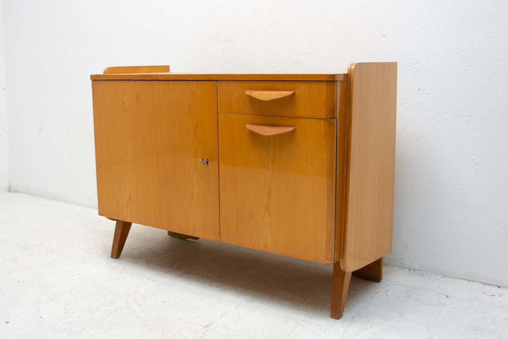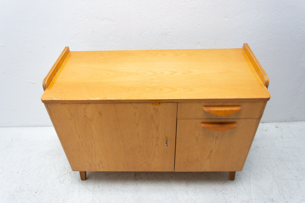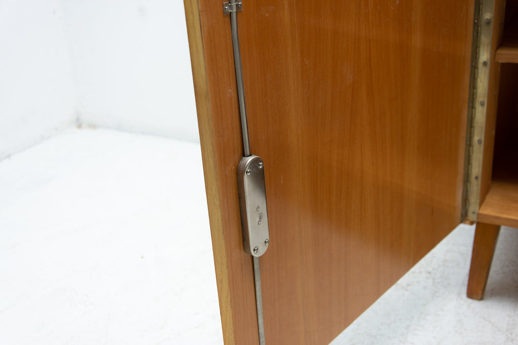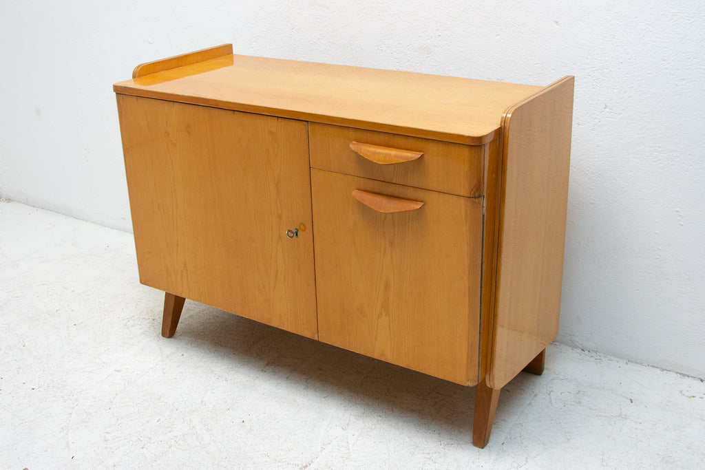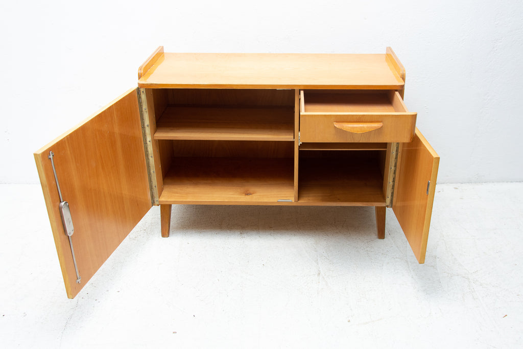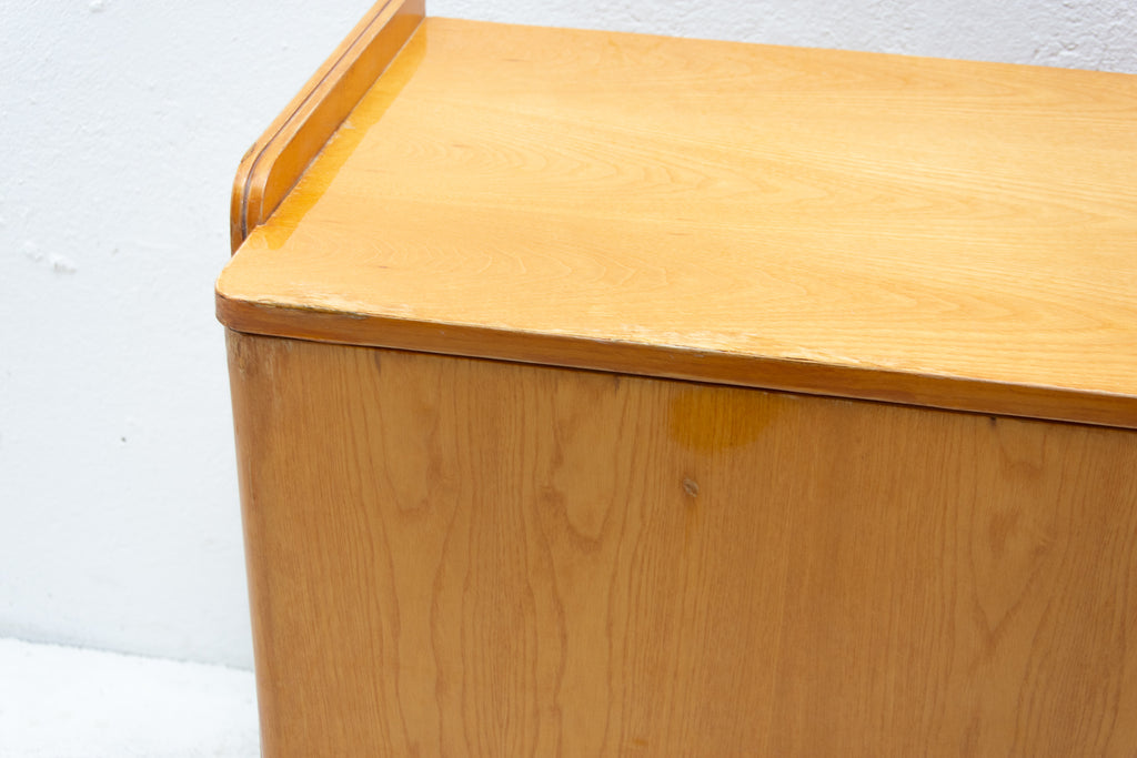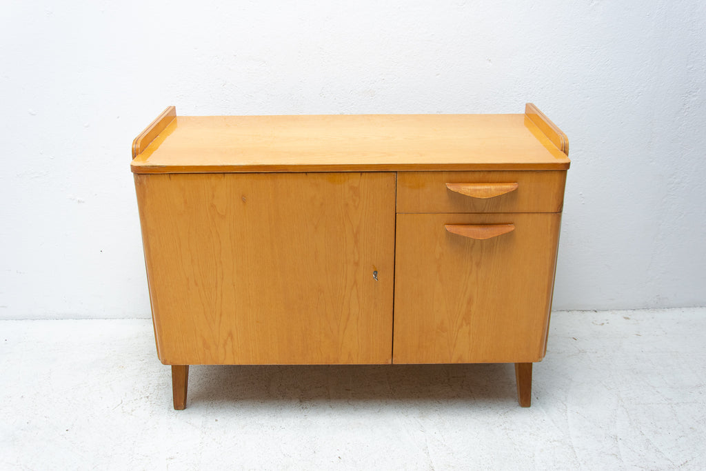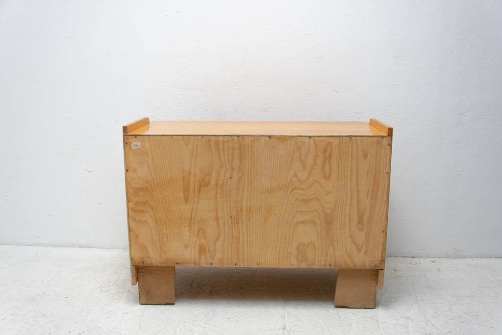 Mid century Vintage small cabinet or TV table from the 1960´s. It was designed by Frantisek Jirák and was manufactured by Tatra nábytok company in the former Czechoslovakia. Ash wood veneer, plywood. In good condition, only in three places traces of wear and age.(as you can see in the pictures)
