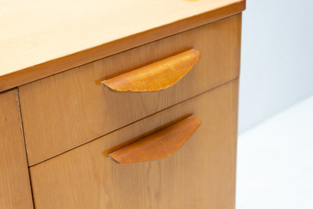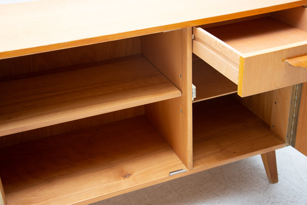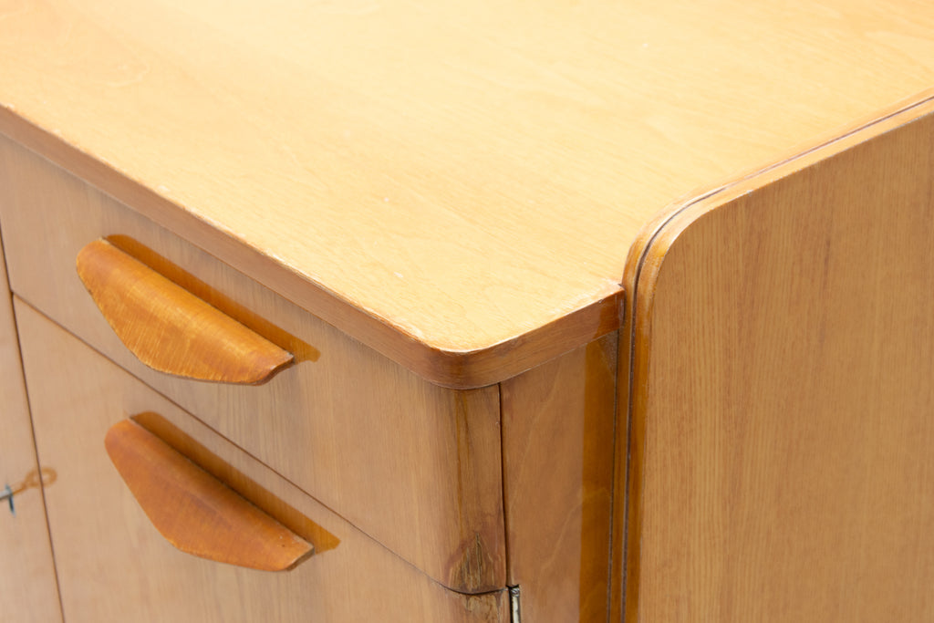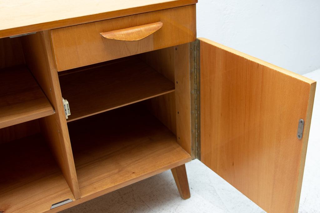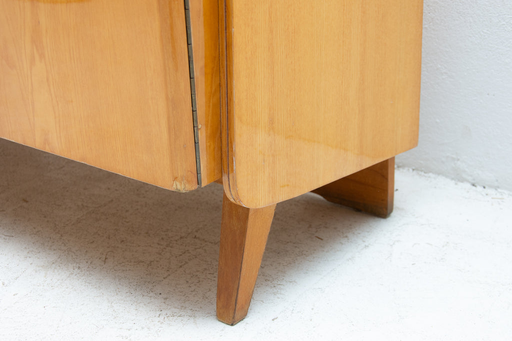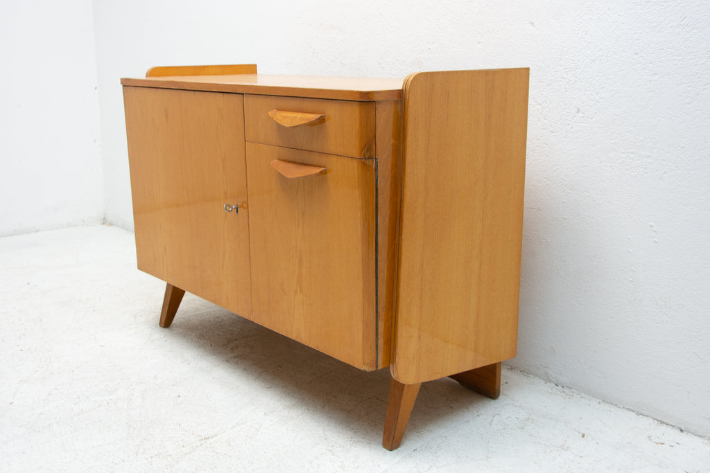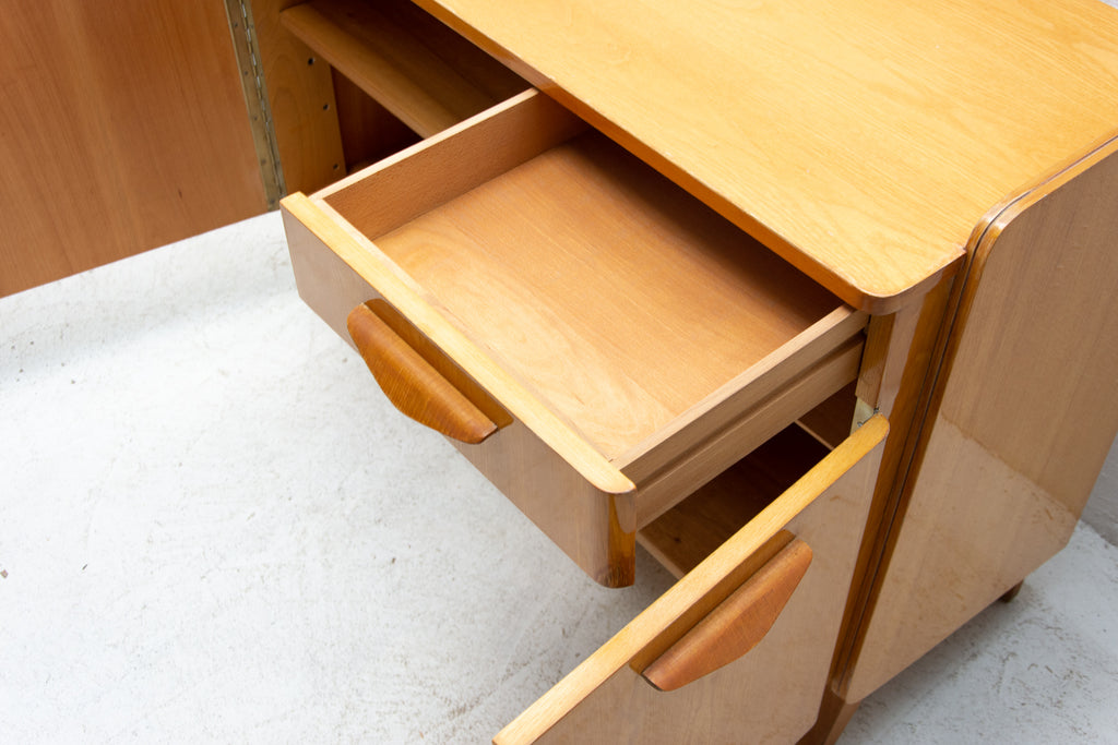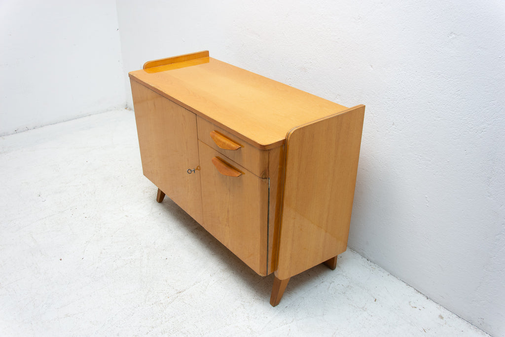 Mid century Vintage small cabinet or TV table from the 1960´s. It was designed by Frantisek Jirák and was manufactured by Tatra nábytok company in the former Czechoslovakia. Ash wood veneer, plywood. In good condition, only in three places traces of wear and age.(as you can see in the pictures)