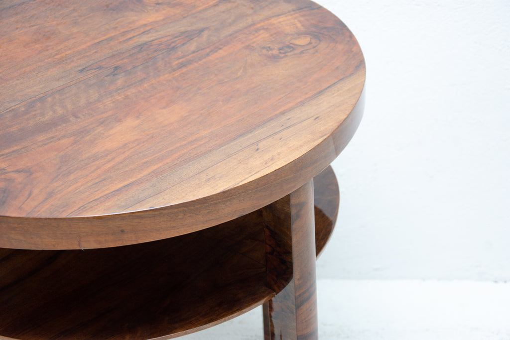 Round occasional table ART DECO, 1930´s. Walnut veneer. Fully restored. High gloss finish. In excellent condition.