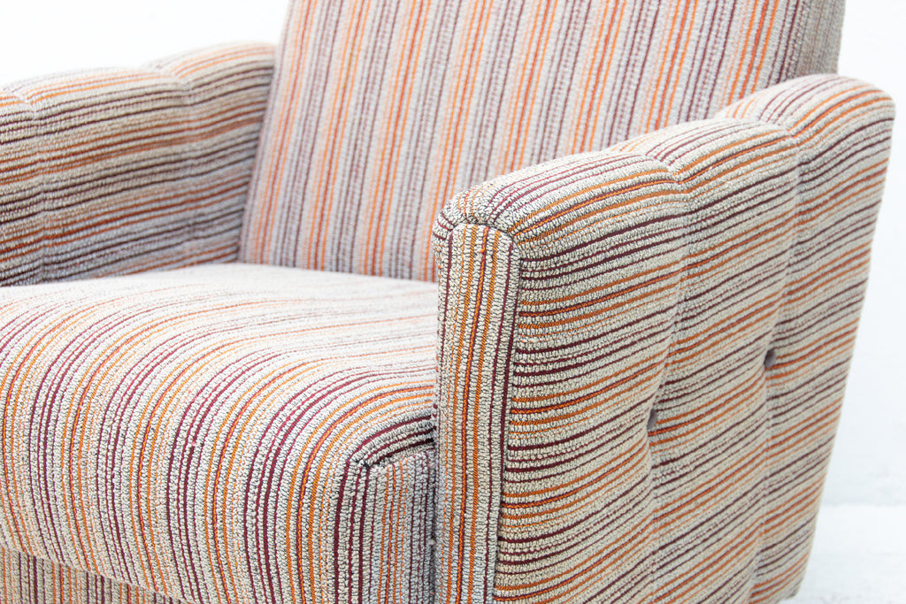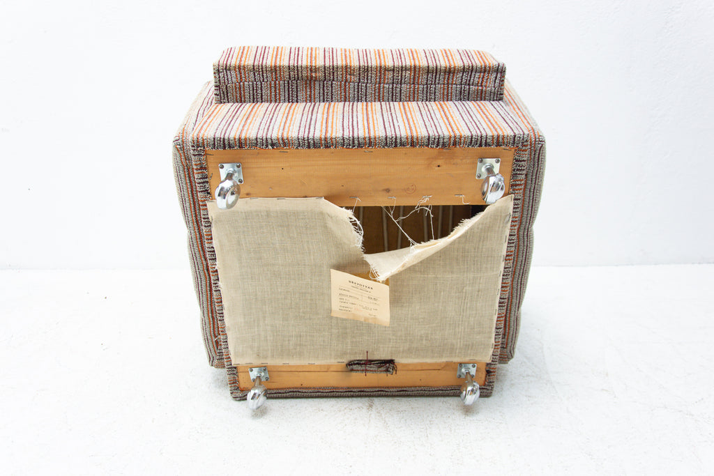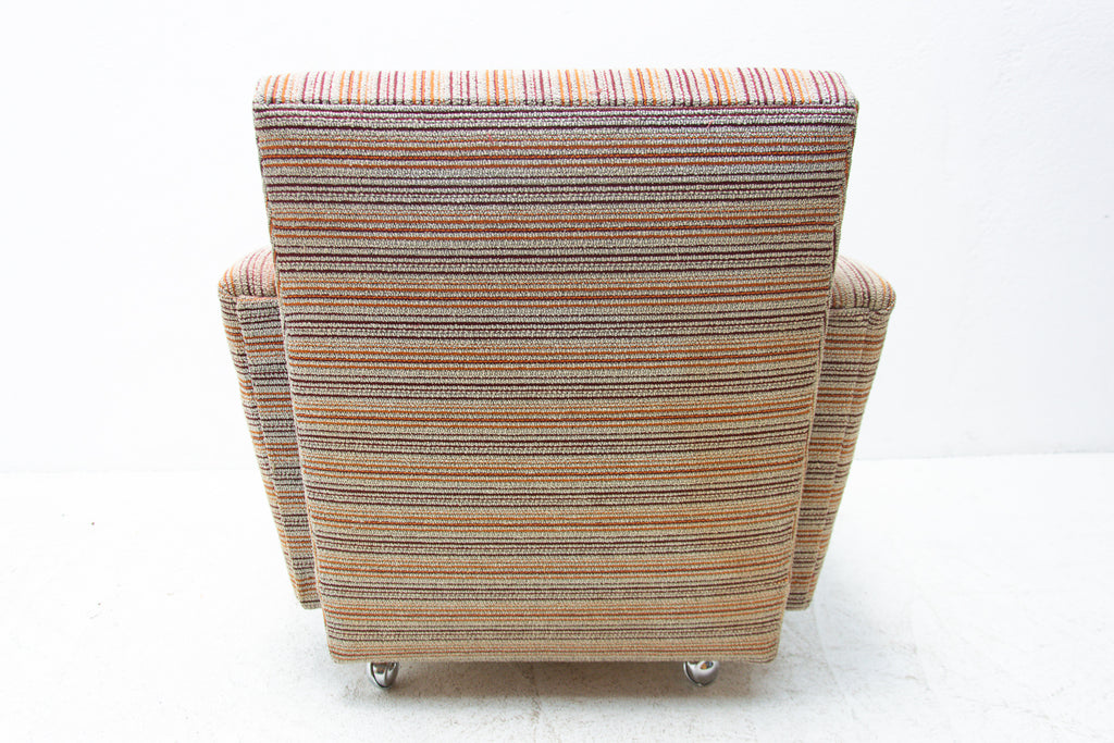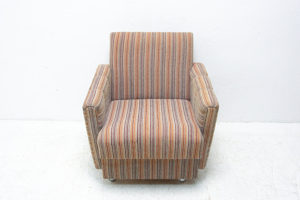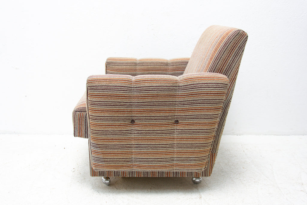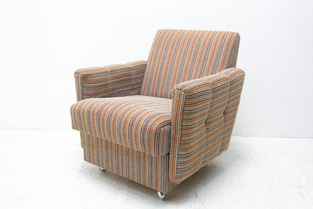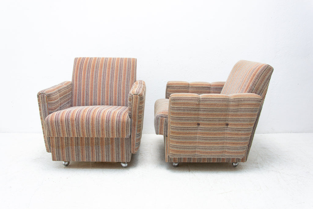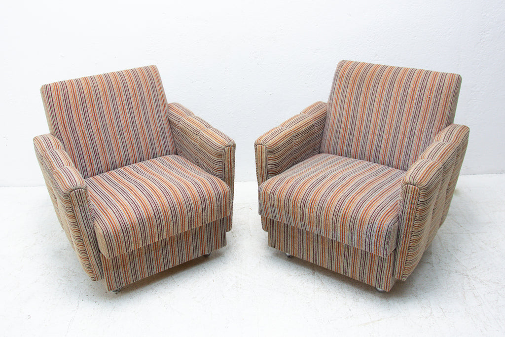 A pair of very comfortable Vintage upholstered armchairs on wheels, made by Dřevotvar company in the former Czechoslovakia in the 1980´s.