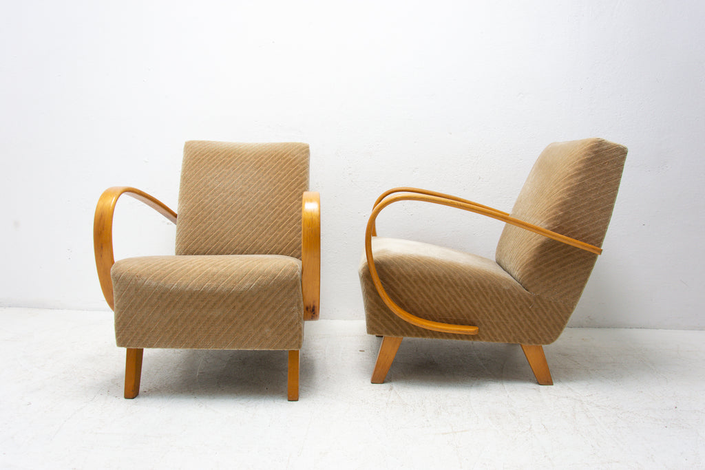 This pair of bentwood armchairs “C” was designed by Jindřich Halabala and were produced by UP Závody in the 1950´s. The chairs are stable and comfortable and in very good condition, they were be reupholstered in the past. Price is for the pair.